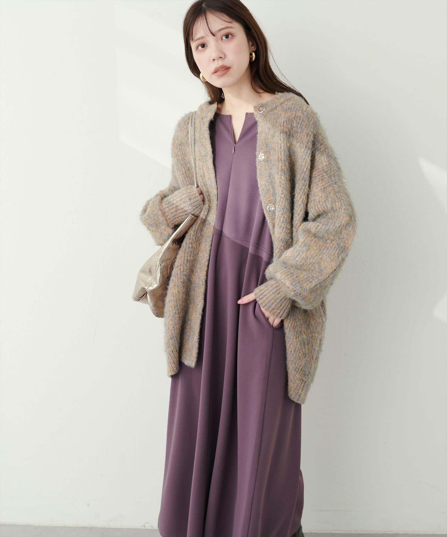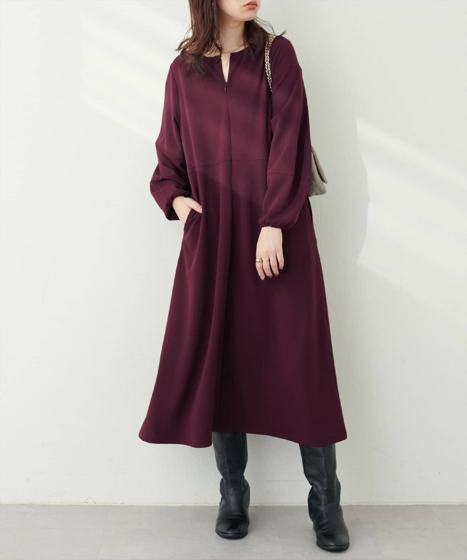 手元を華奢に見せてくれるランタンスリーブが目を惹く、mamamoシリーズの新作ワンピース。