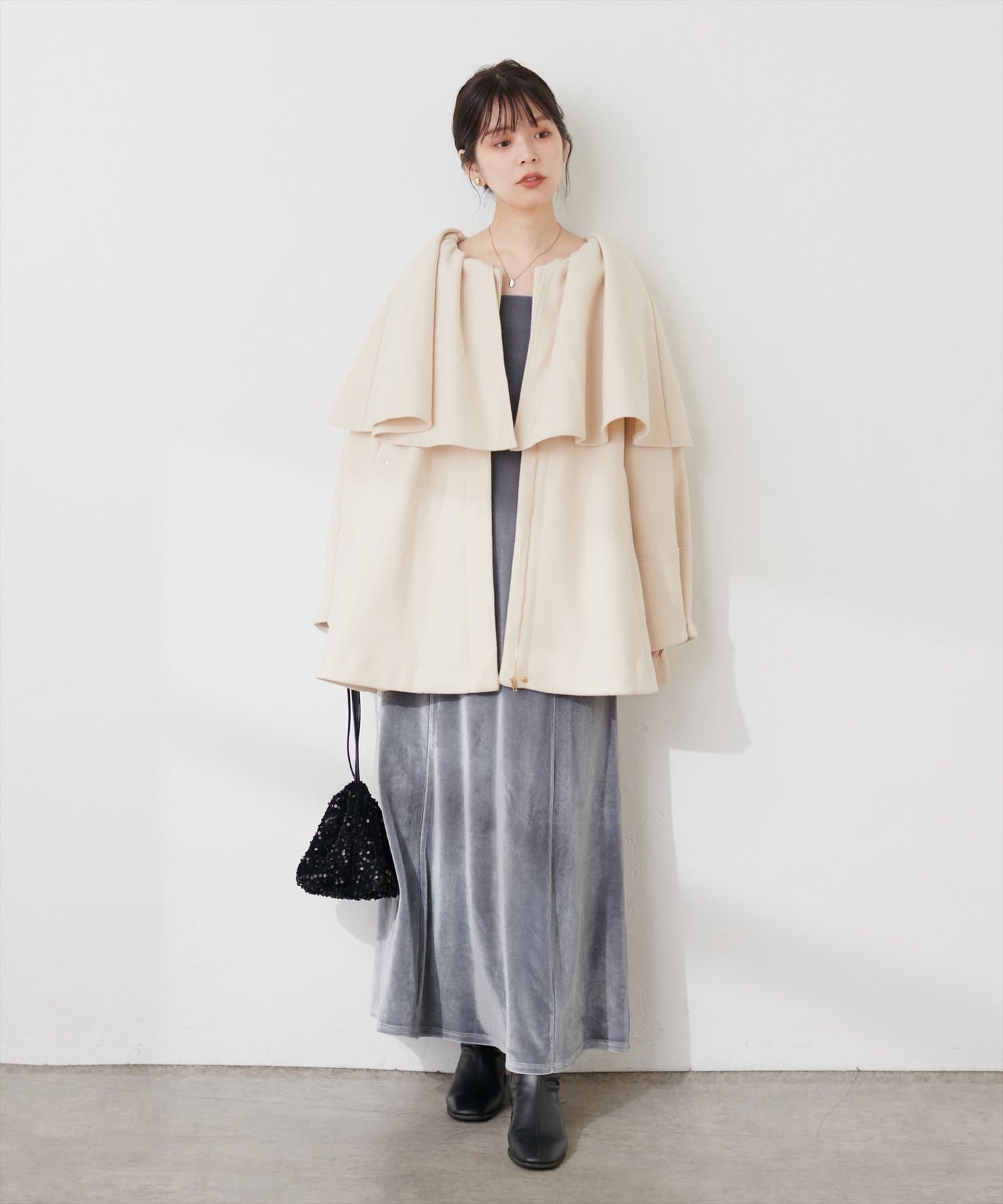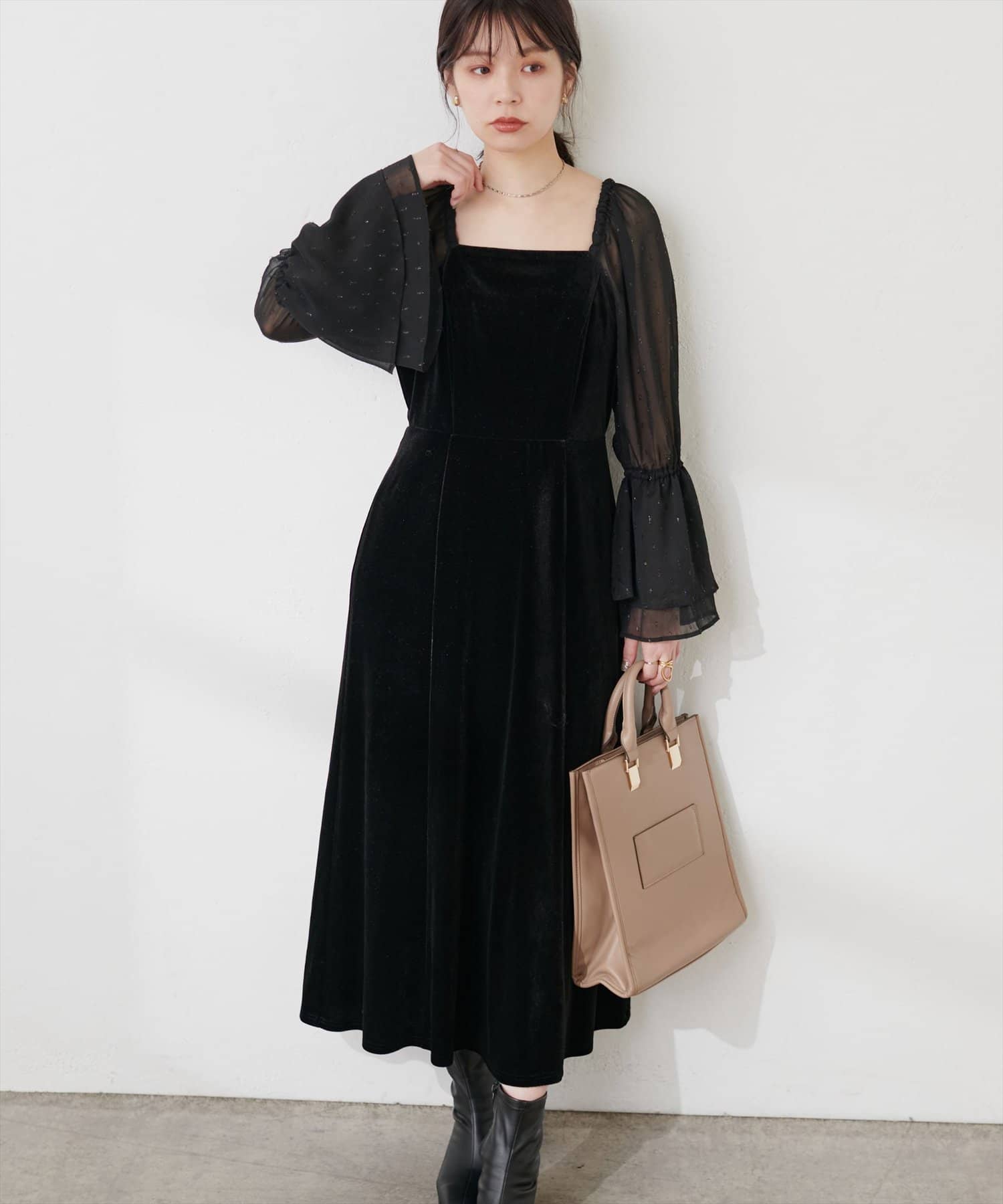 オケージョンにも、観劇などのキレイめを着たい日にも対応できる上品な印象のワンピース。