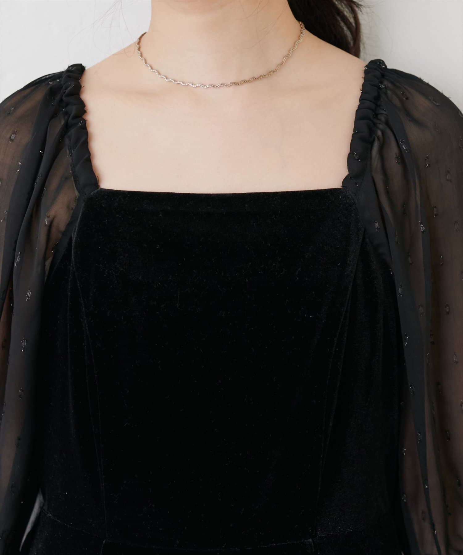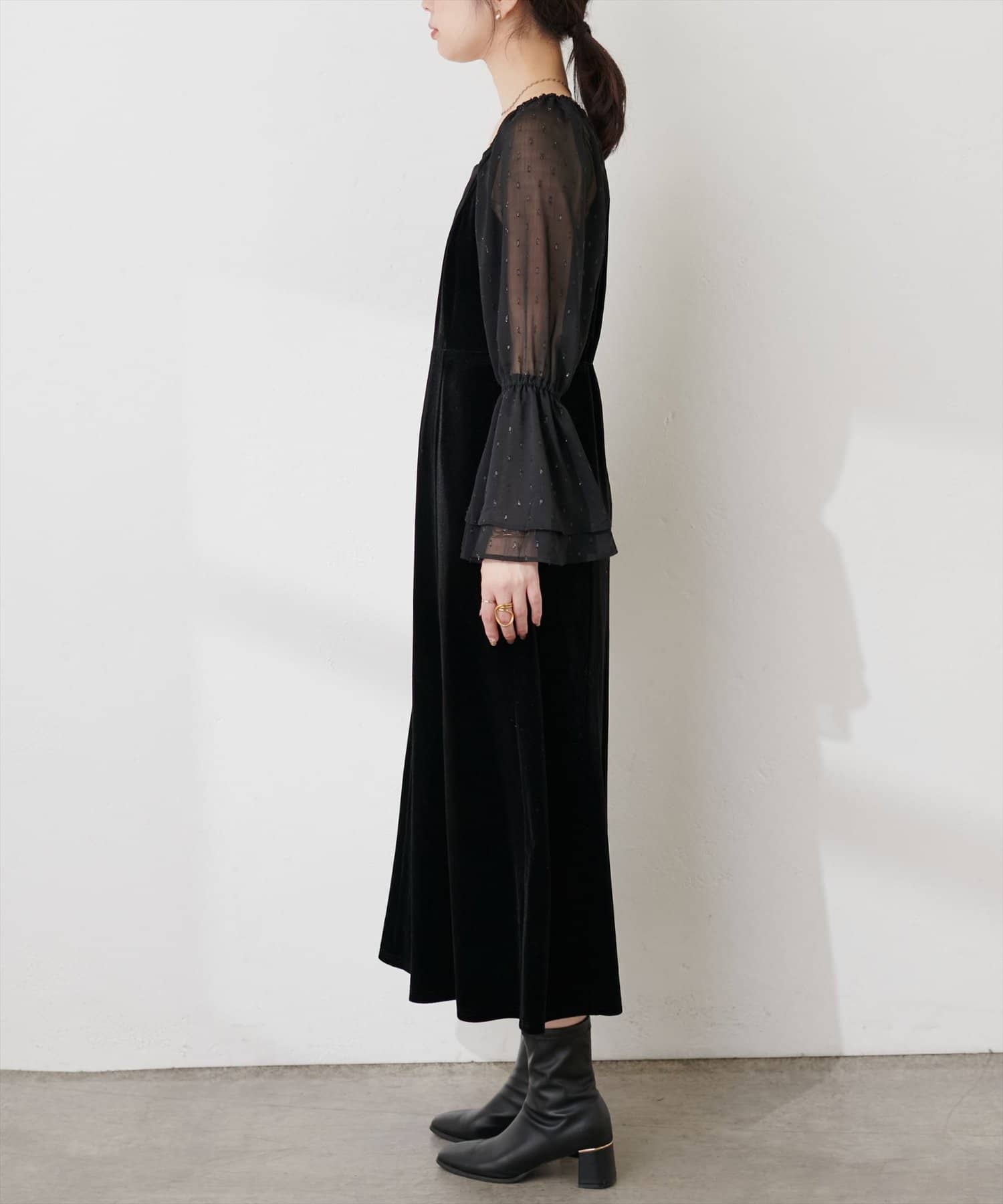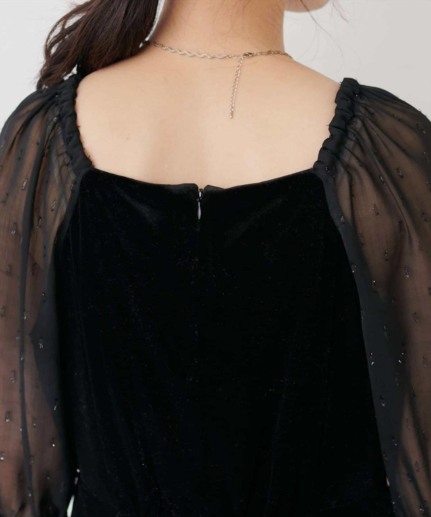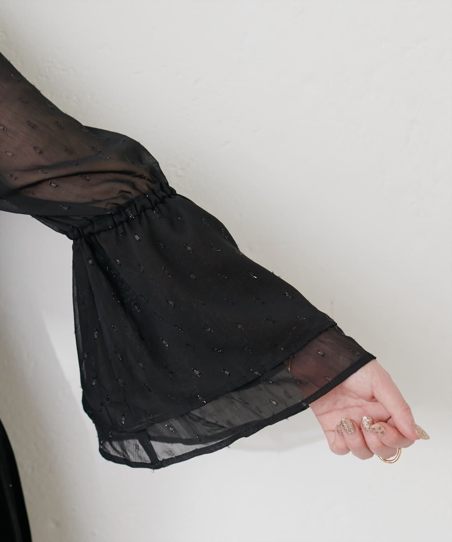 袖の生地のほんのりとした透け感とキラリトしたドットが、大人らしい雰囲気にみせてくれます。