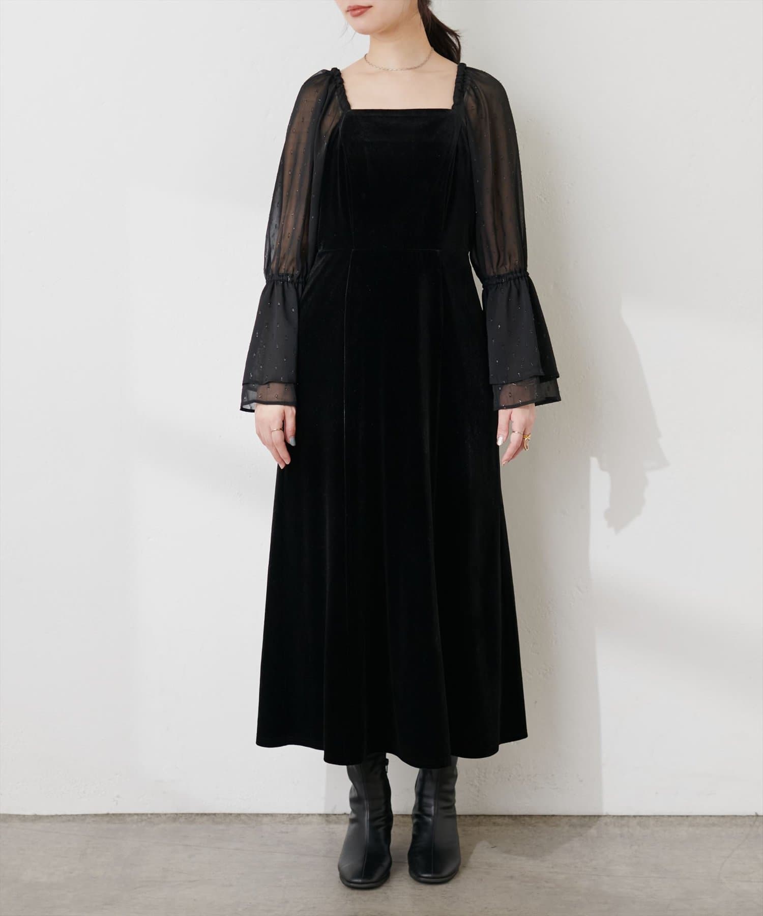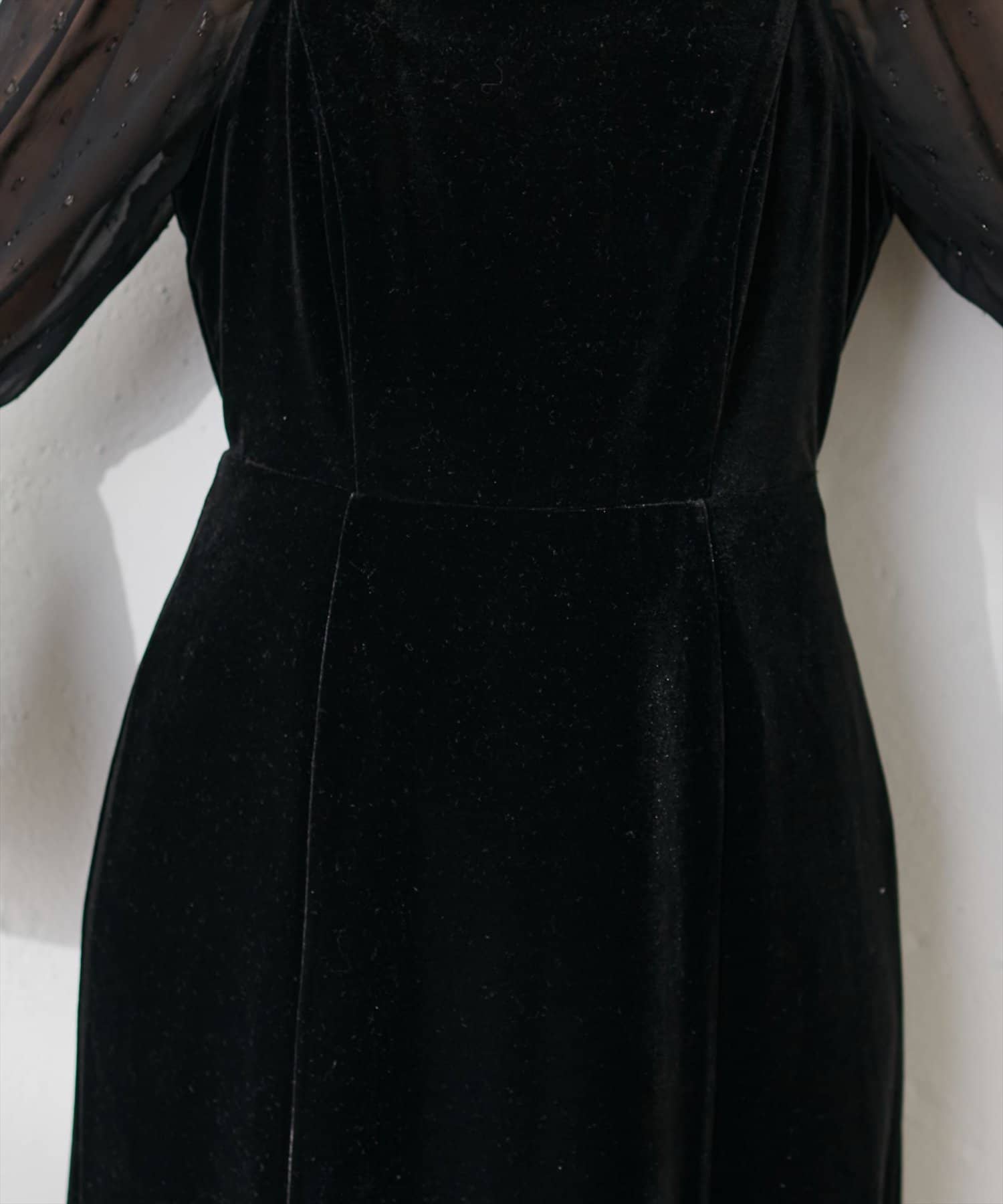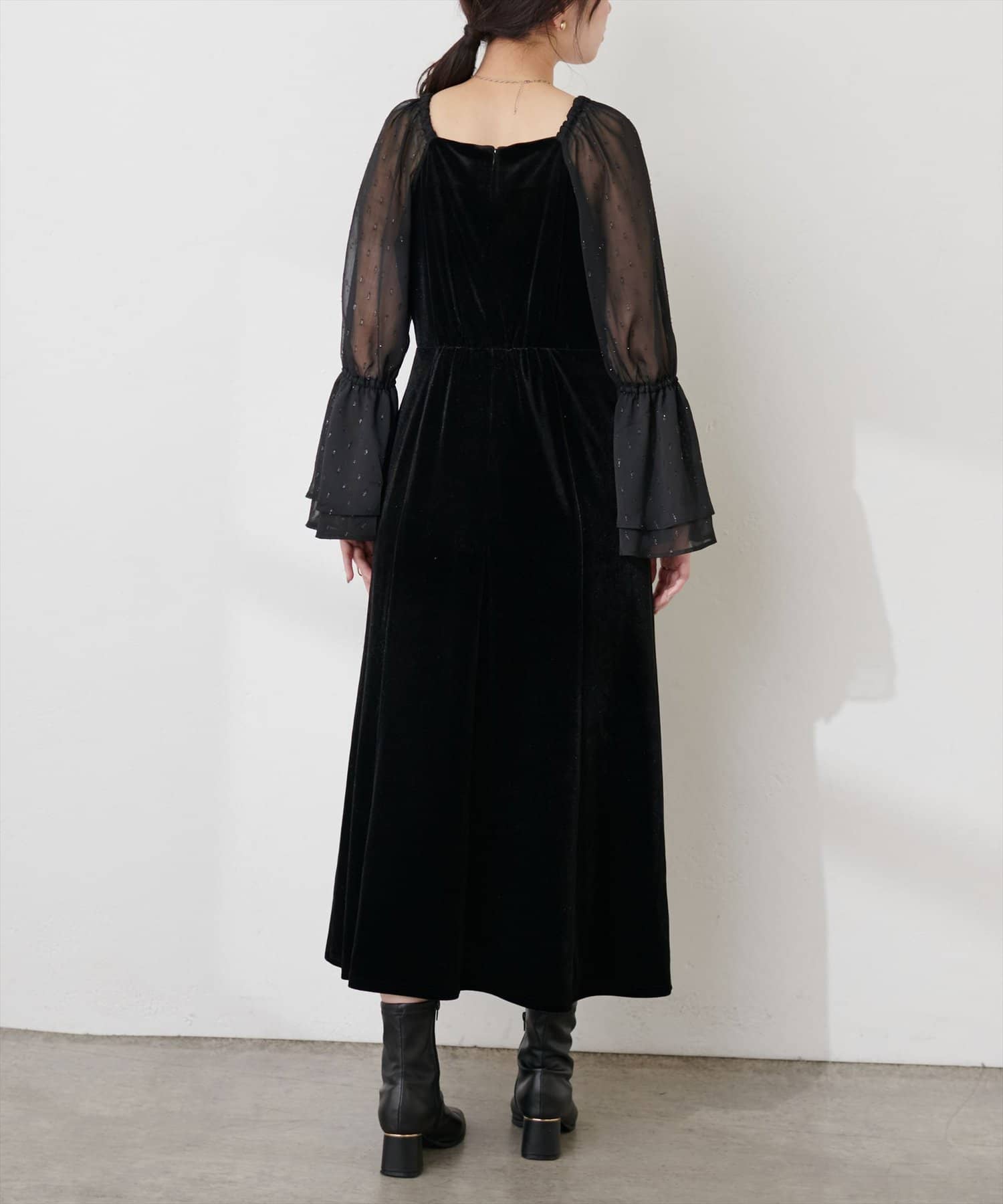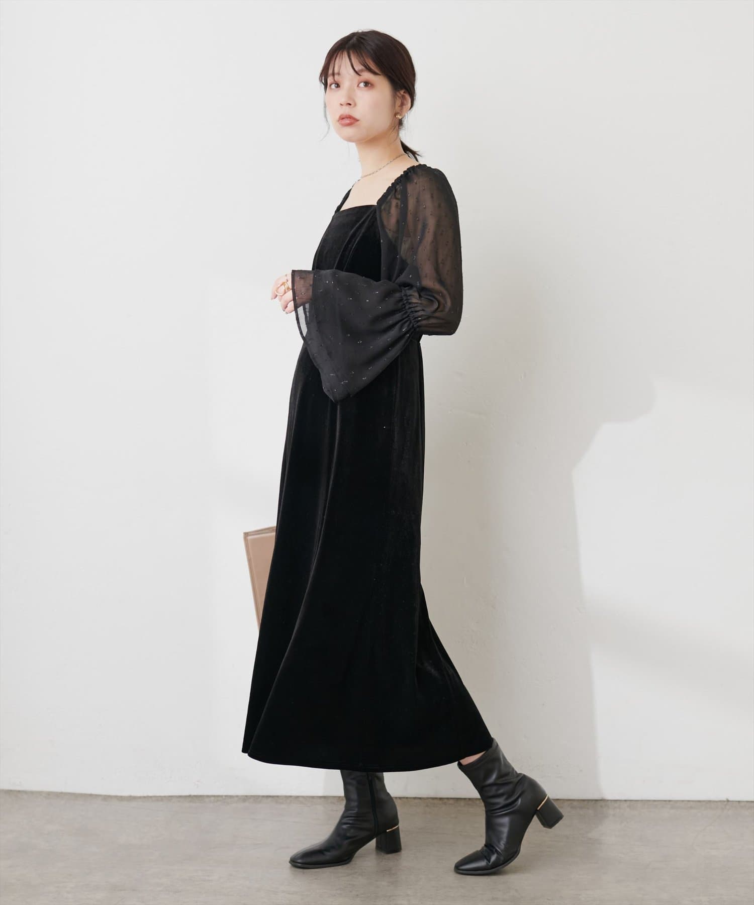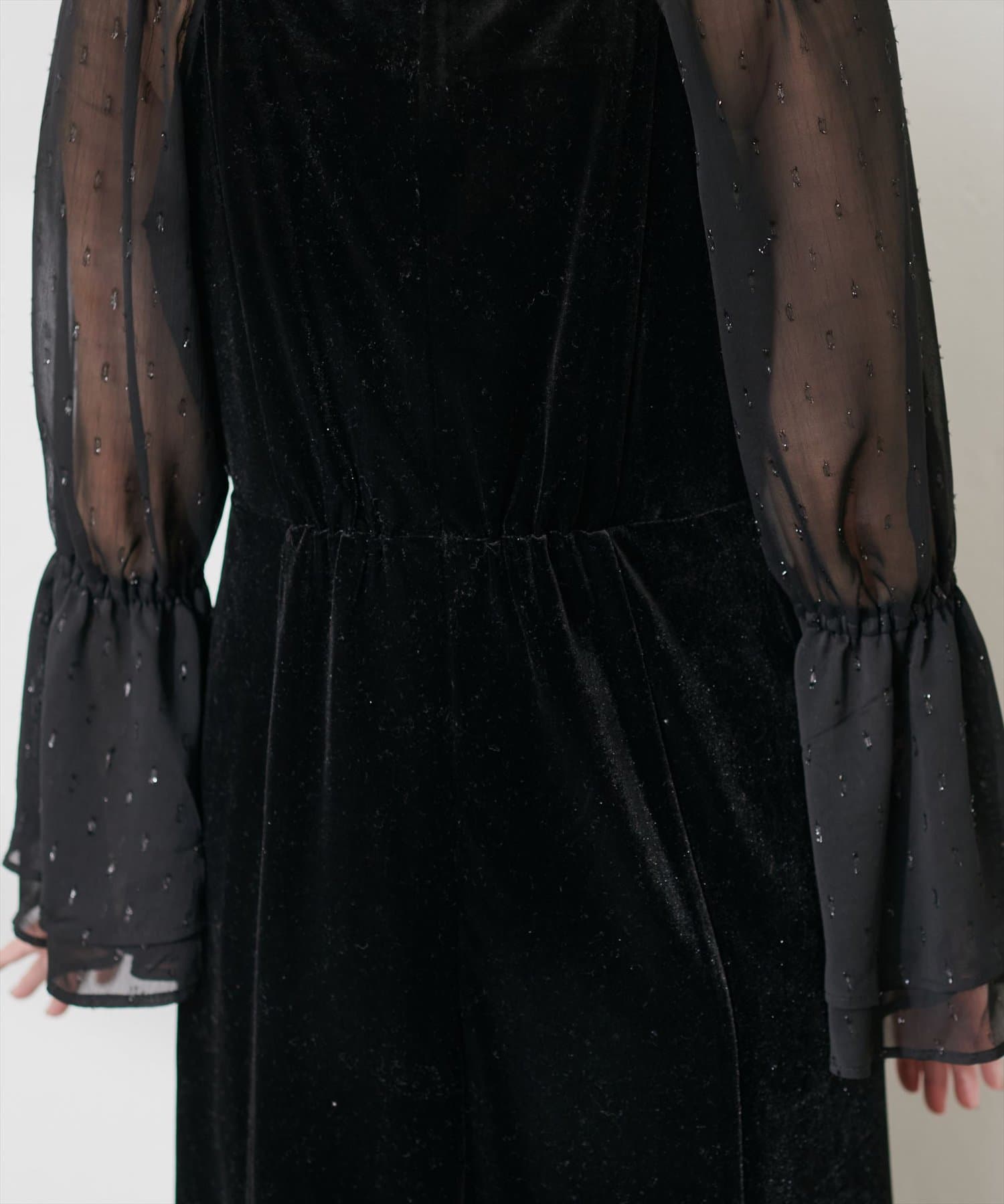 袖の生地のほんのりとした透け感とキラリトしたドットが、大人らしい雰囲気にみせてくれます。
