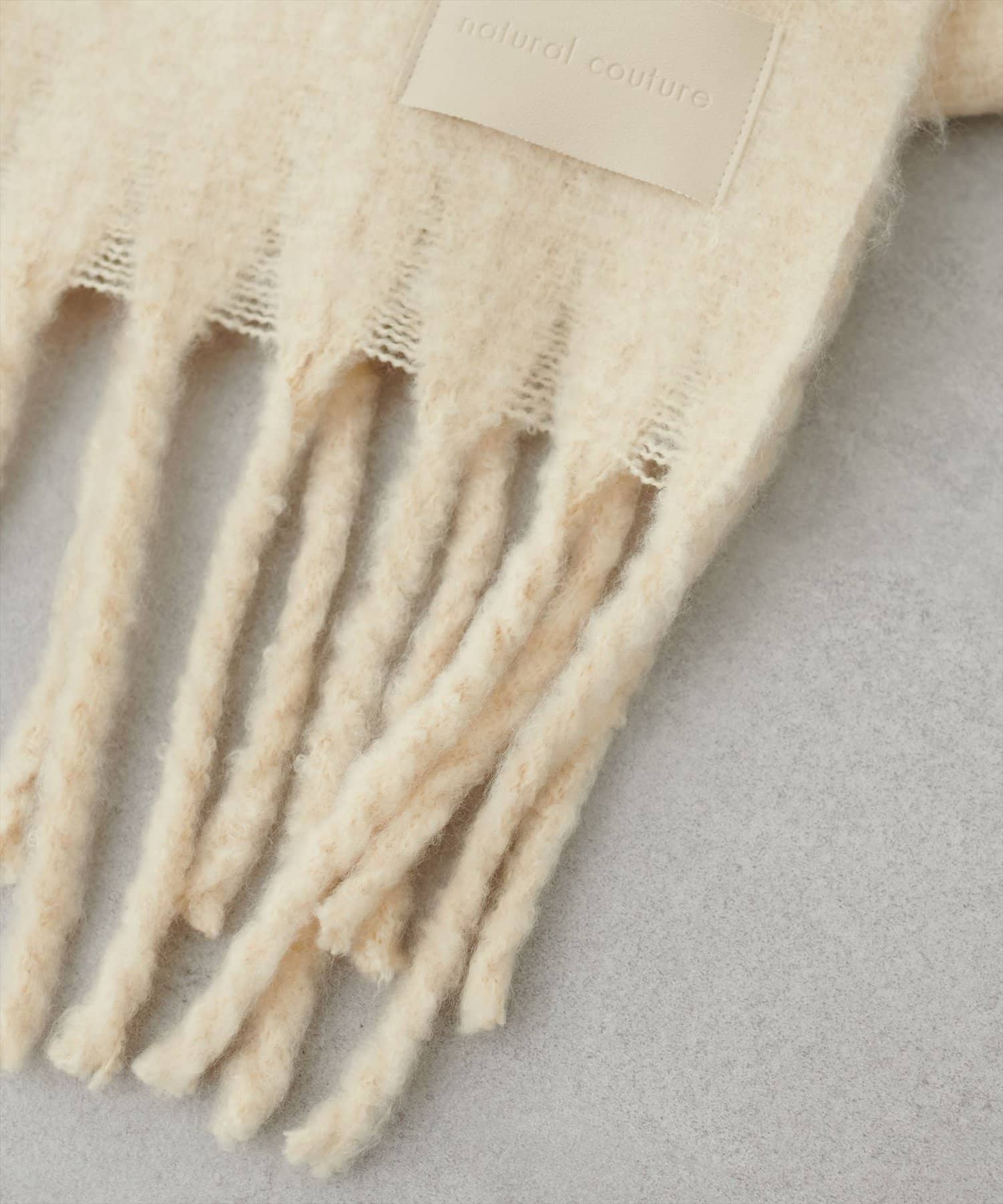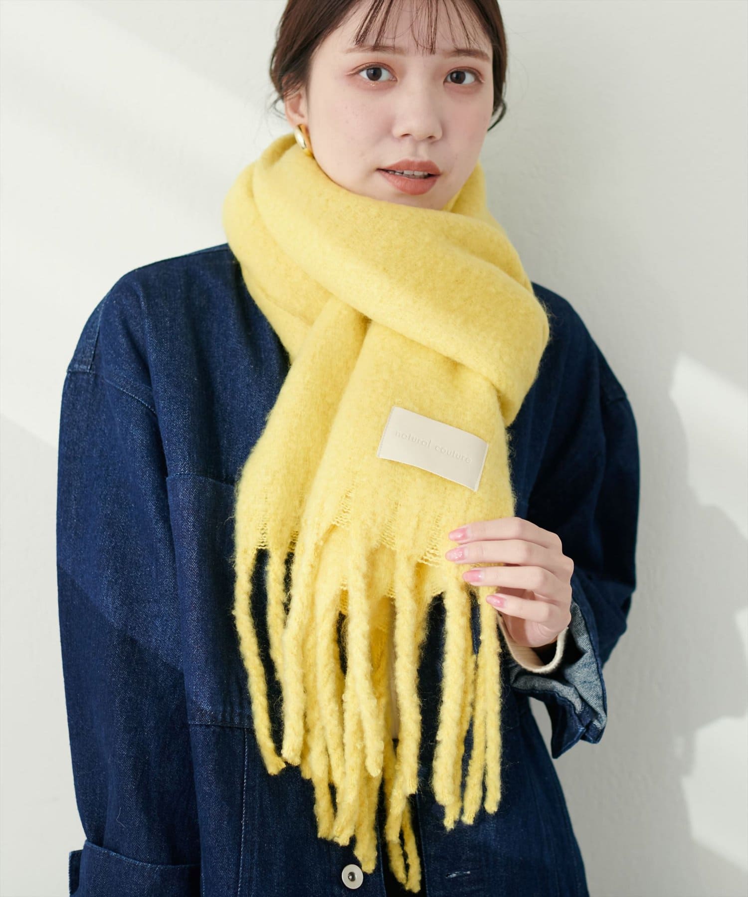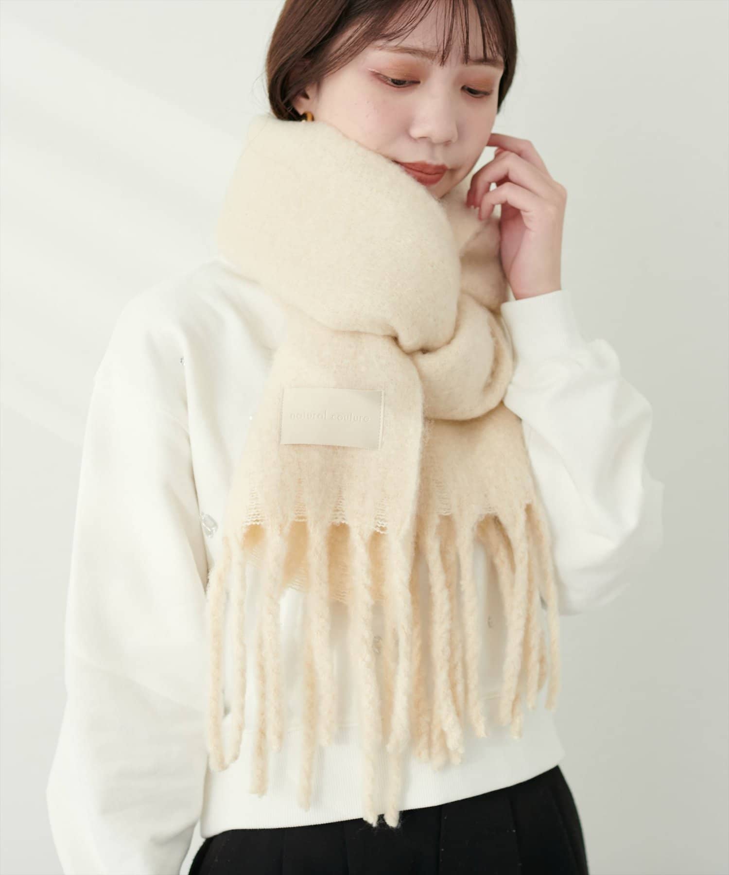 ふんわりとした肌触りとボリューム感が目を惹くボリュームフリンジマフラー。
