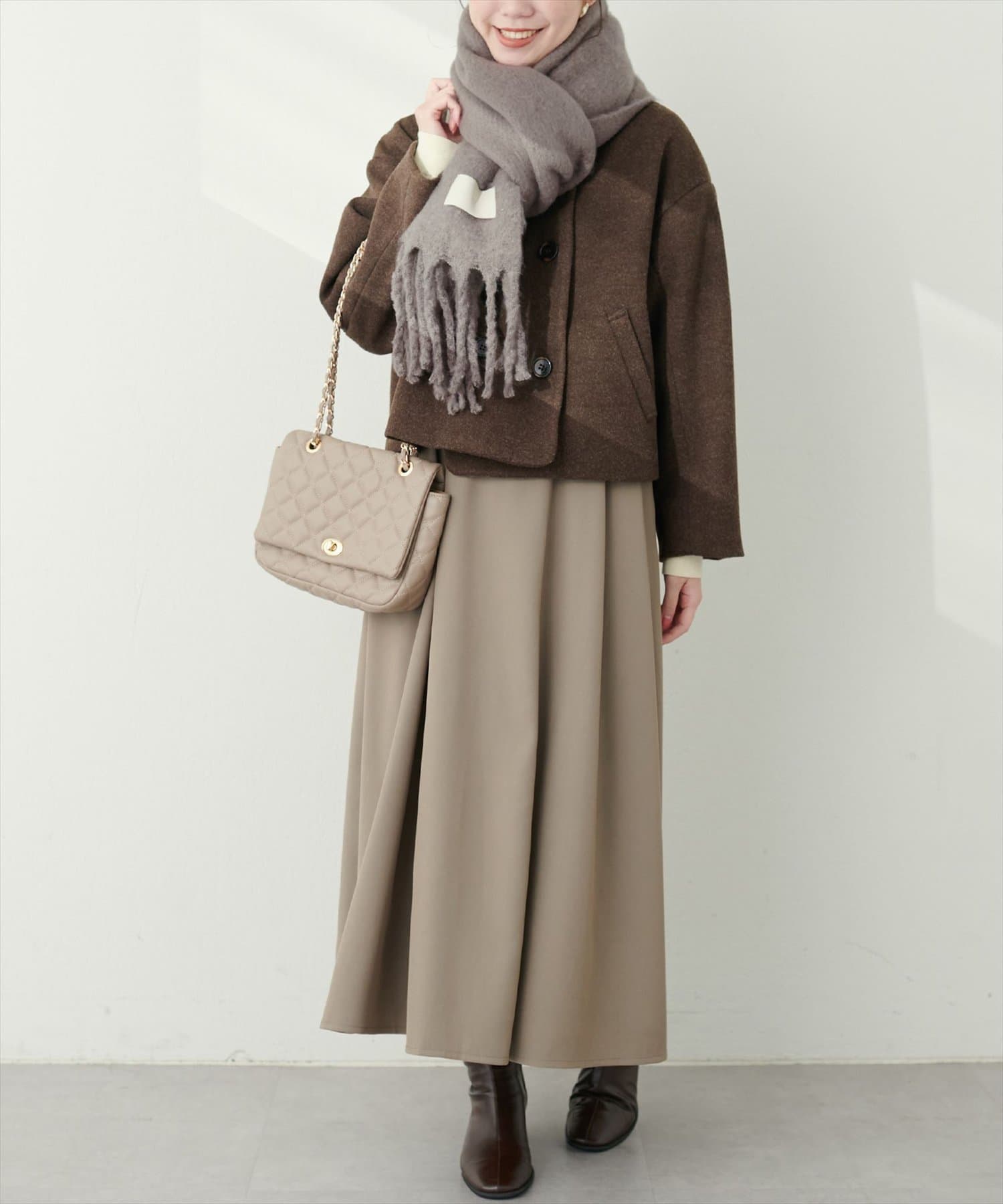 一巻きで可愛いフォルムを作るボリュームのあるマフラーはスタイルを選ばず、