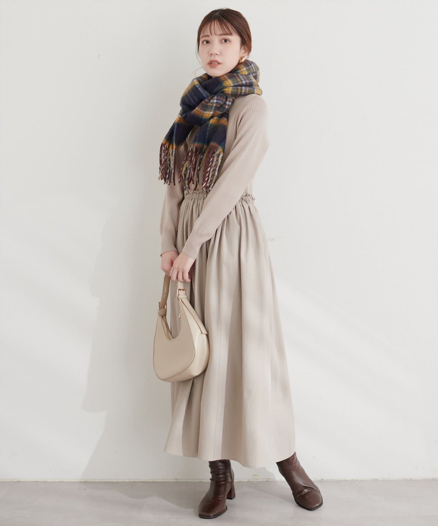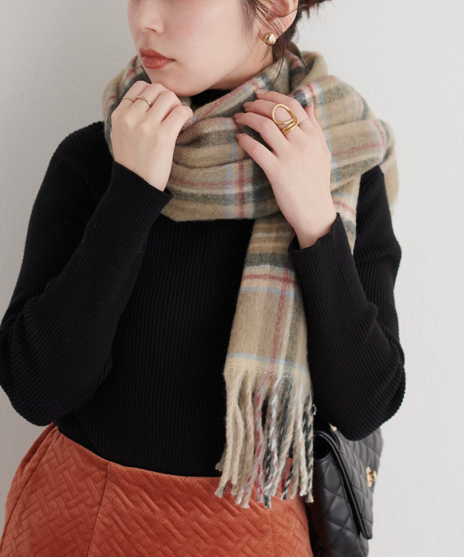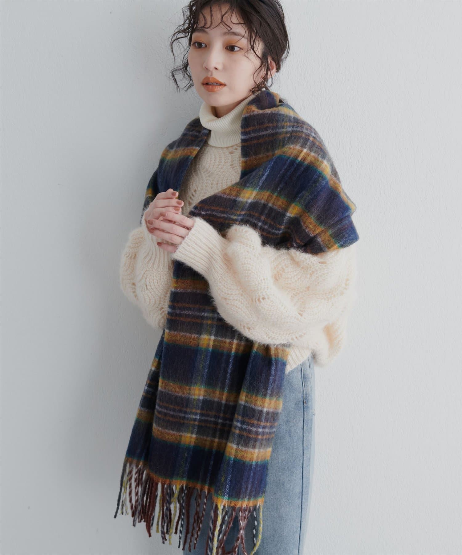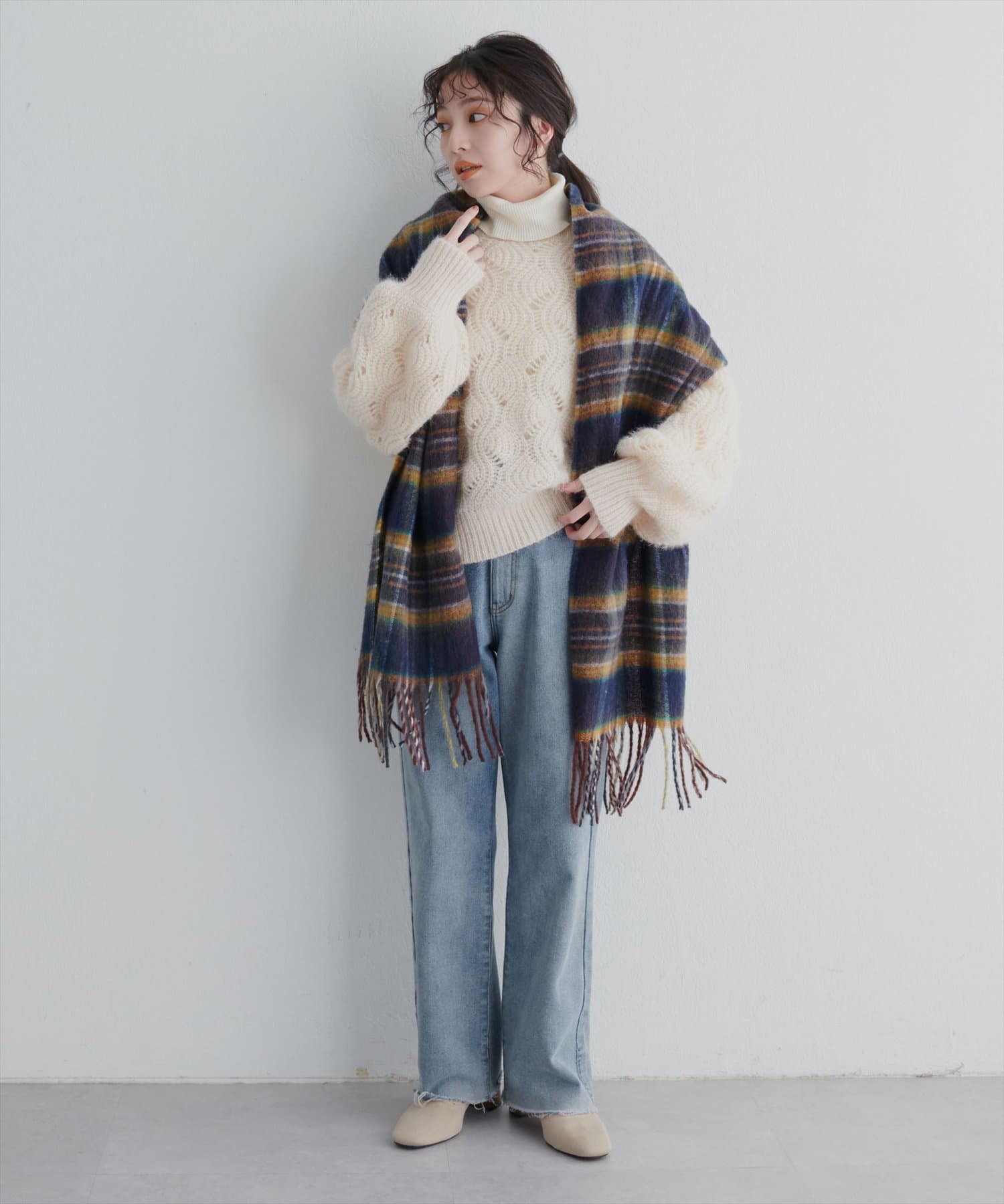 ウォーム感溢れるボリュームストールはスタイルを選ばず、
