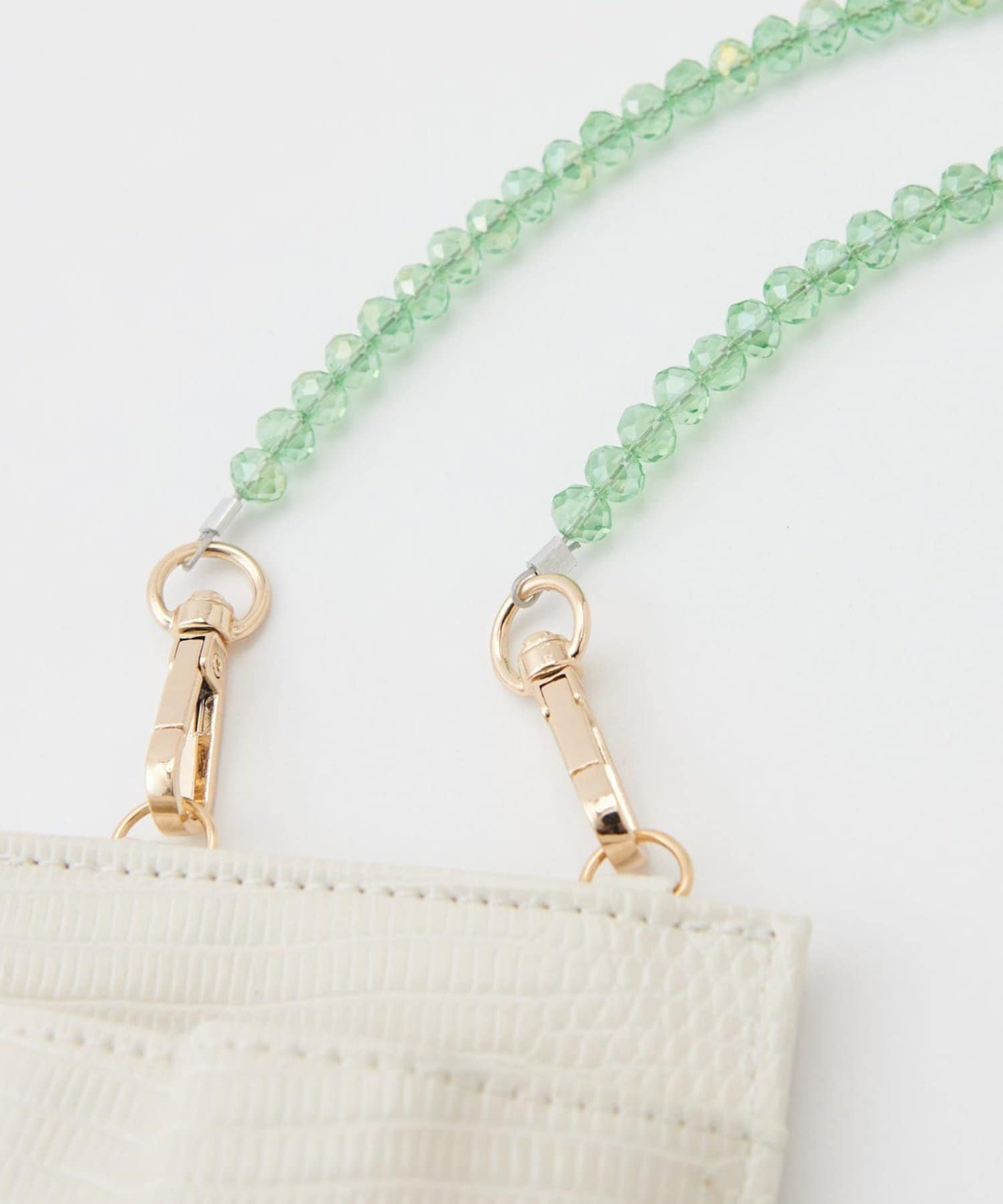 ポイント使いで目を引くカラフルで可愛いビーズのショルダーヒモです。