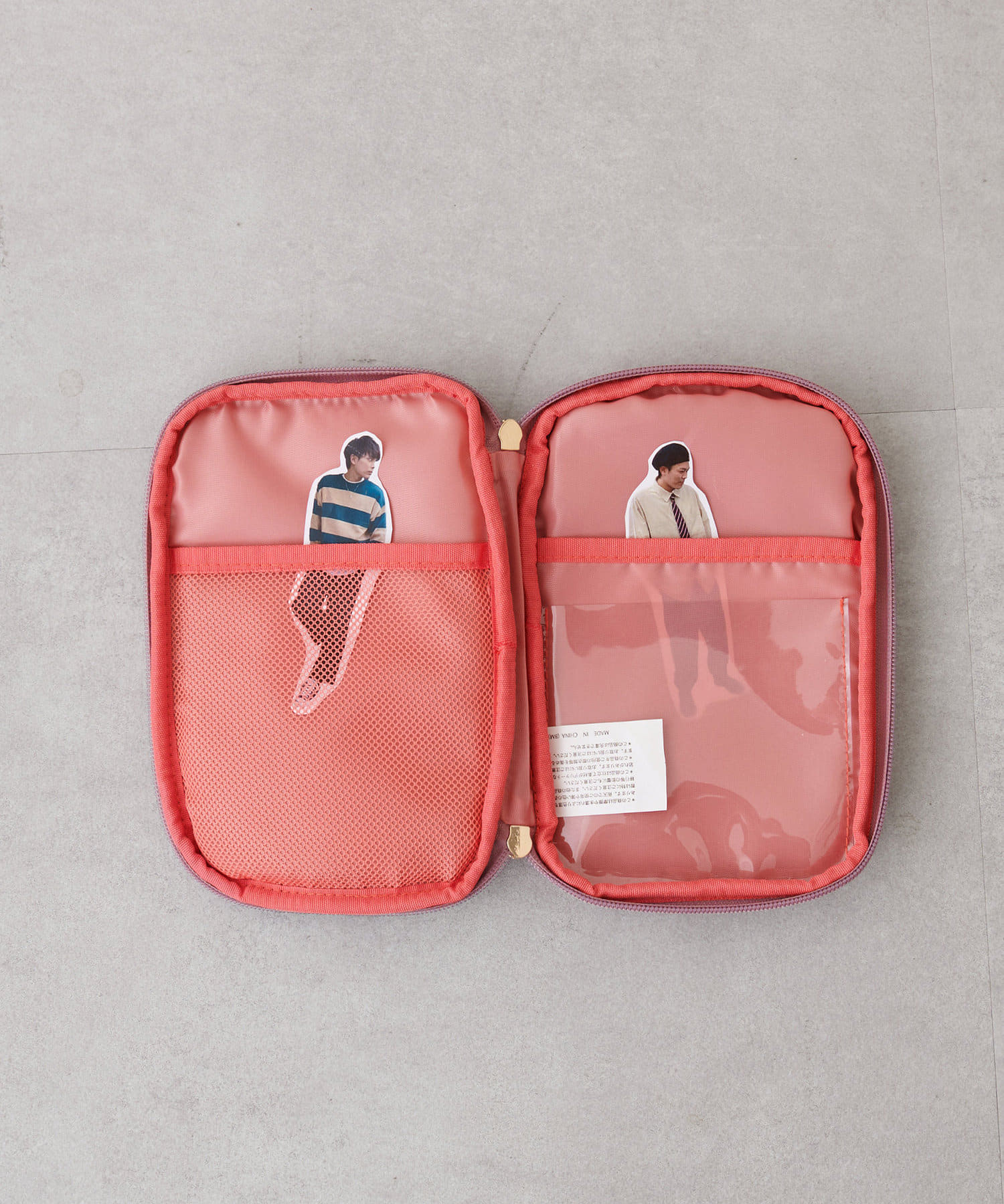 内側のポケットは見開きで左右違っており、メッシュポケットの面と透明ポケットの2種類になっております。