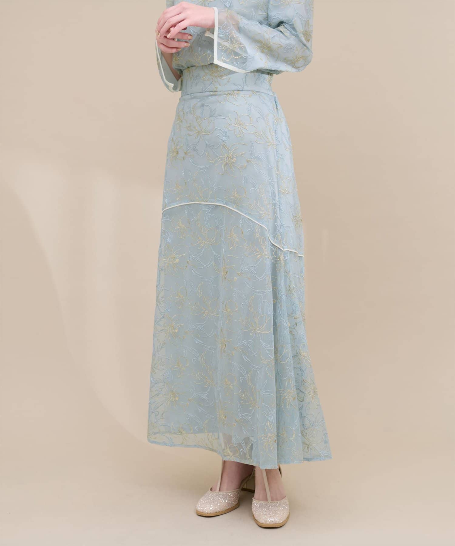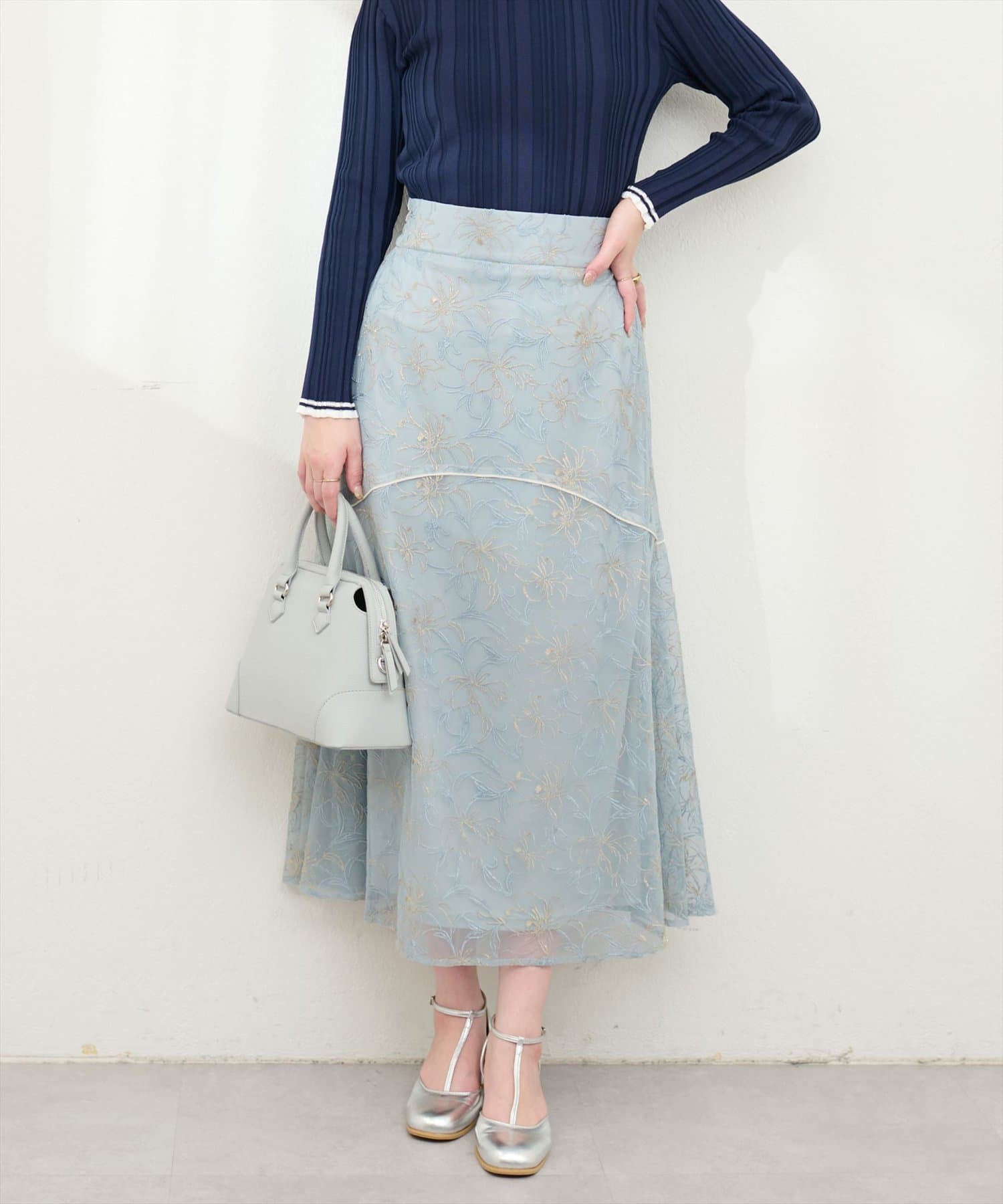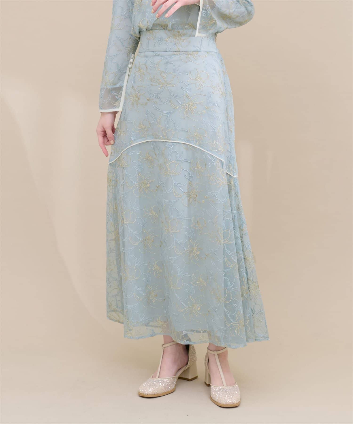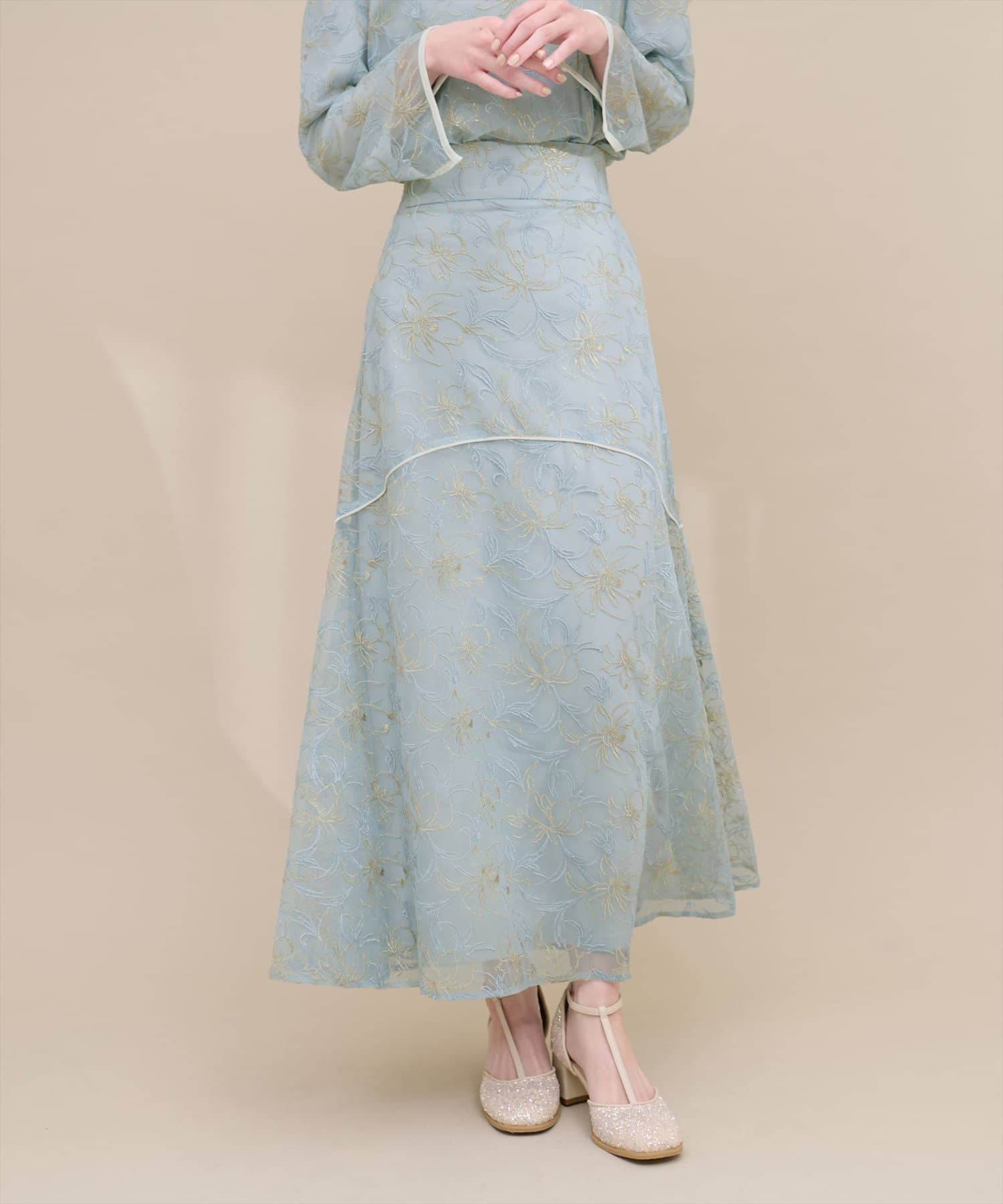 しなやかなスカートの動きと共に裾レースの透け感が上品且つ可愛らしい仕上がりになっています。