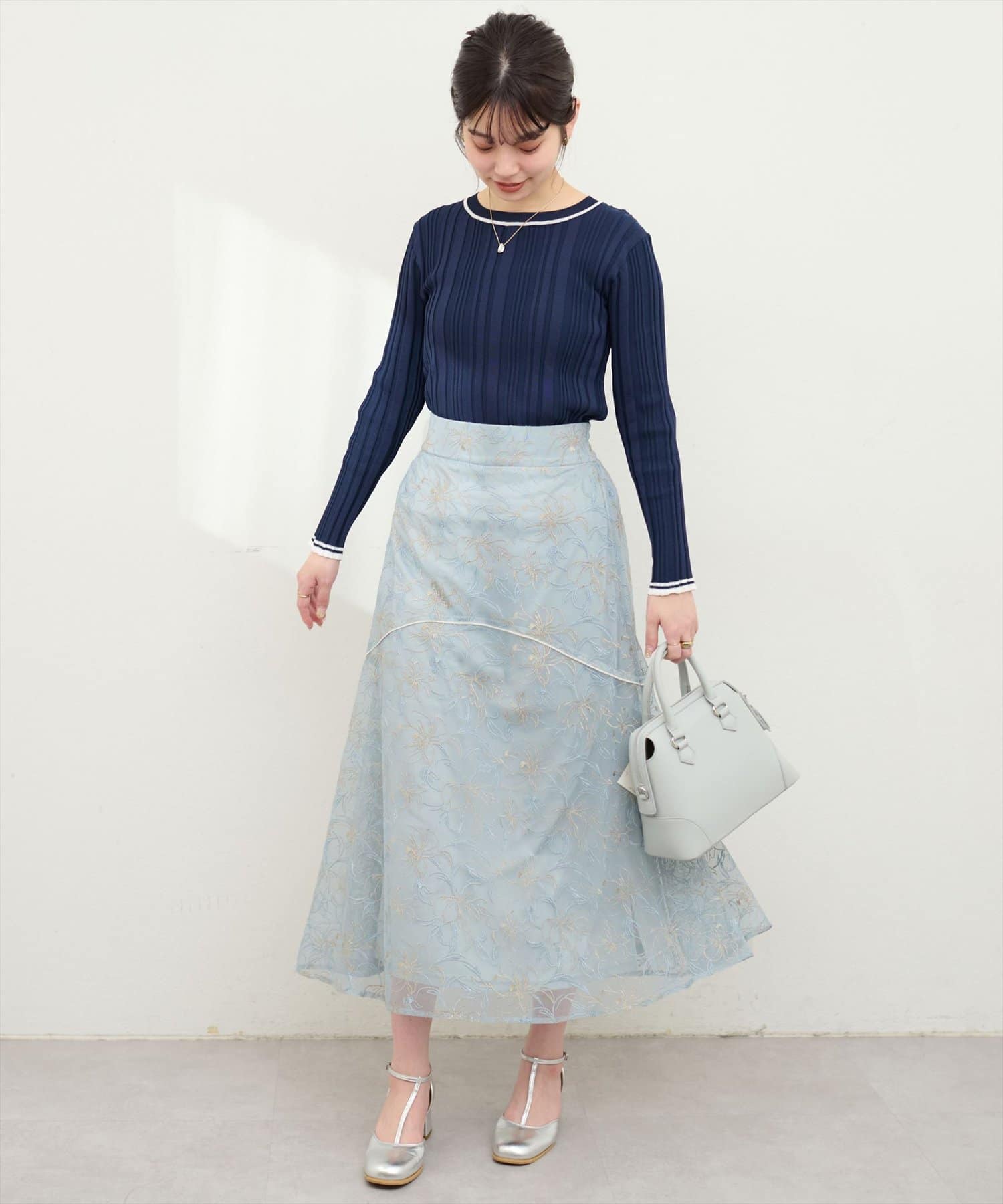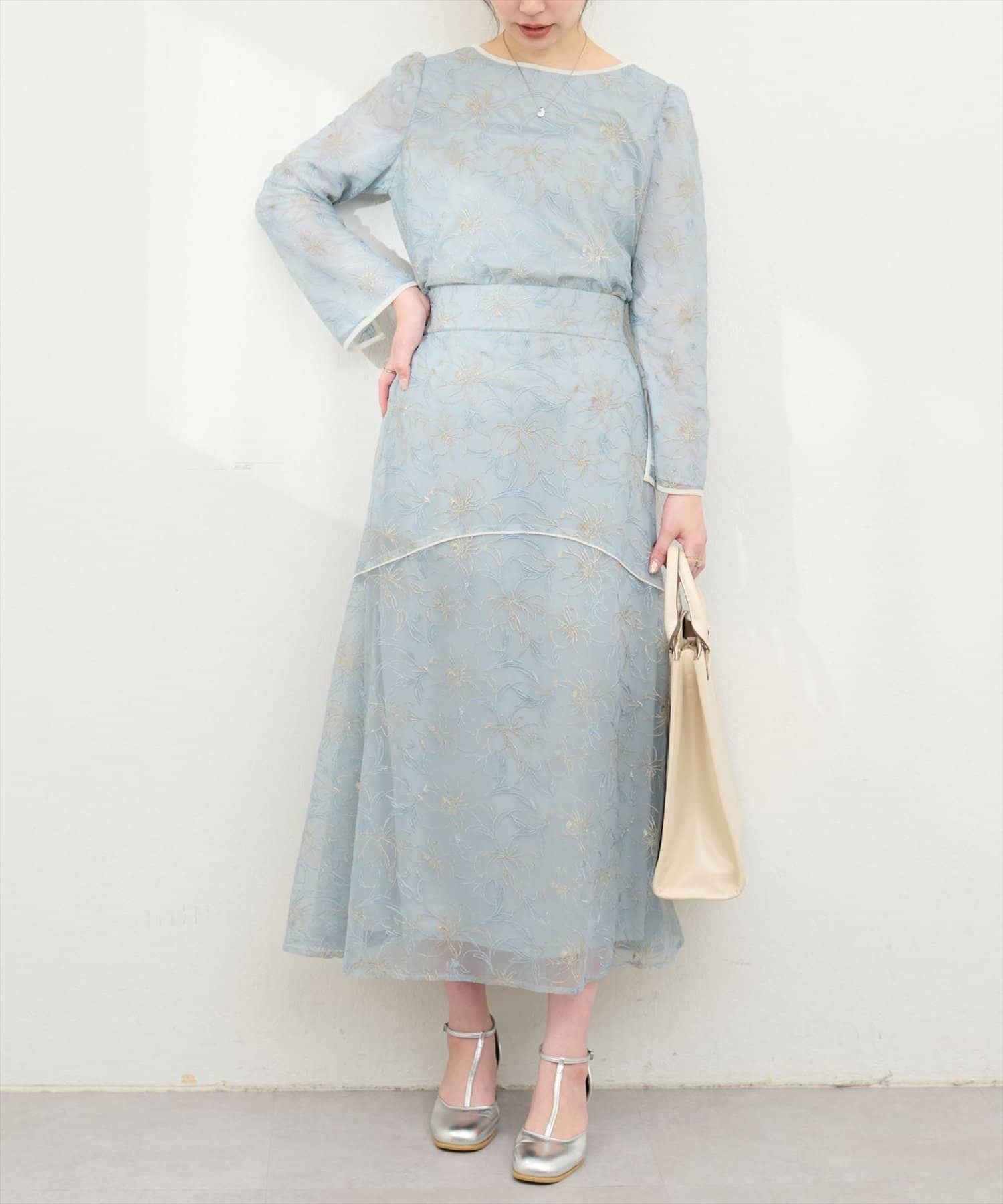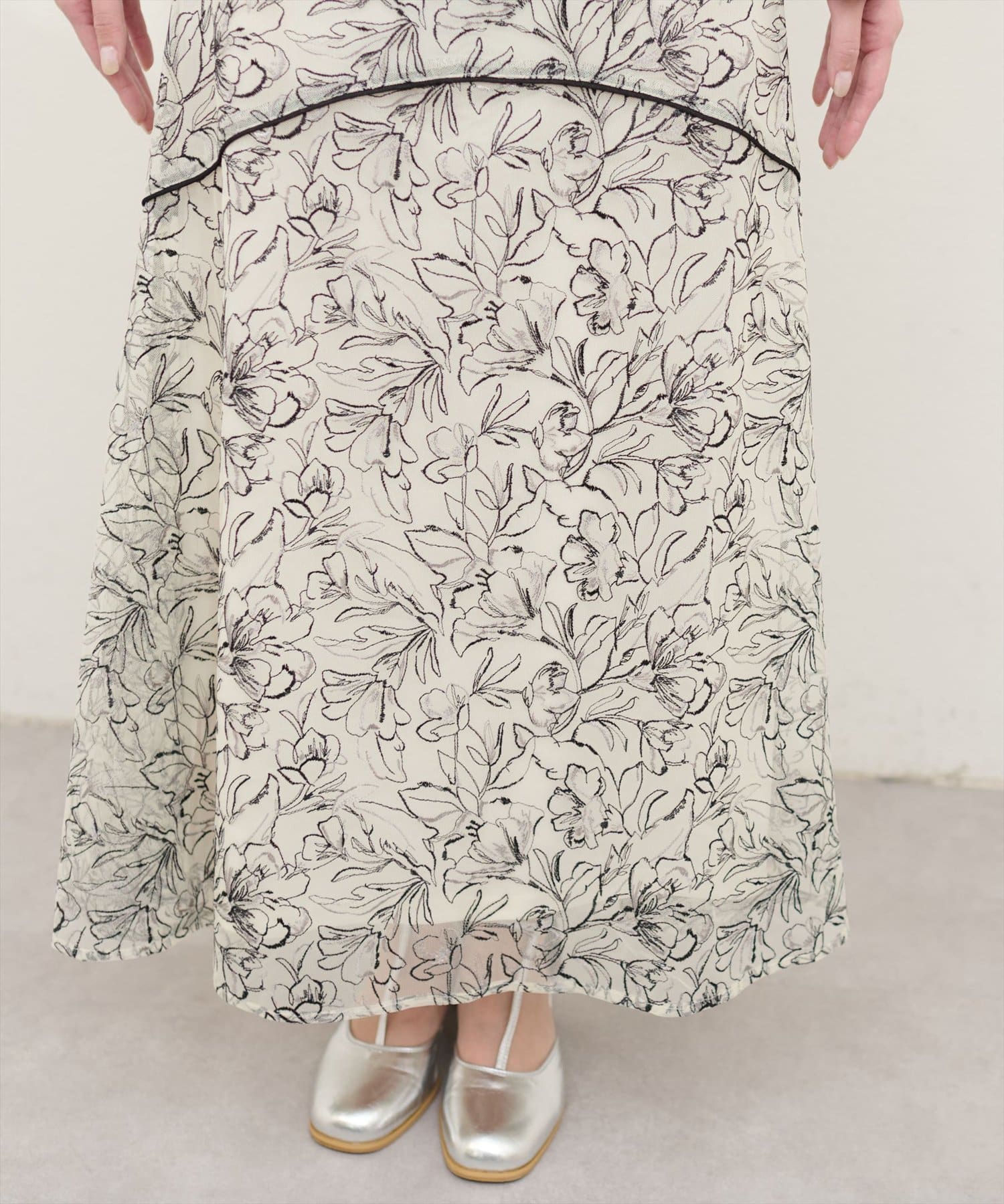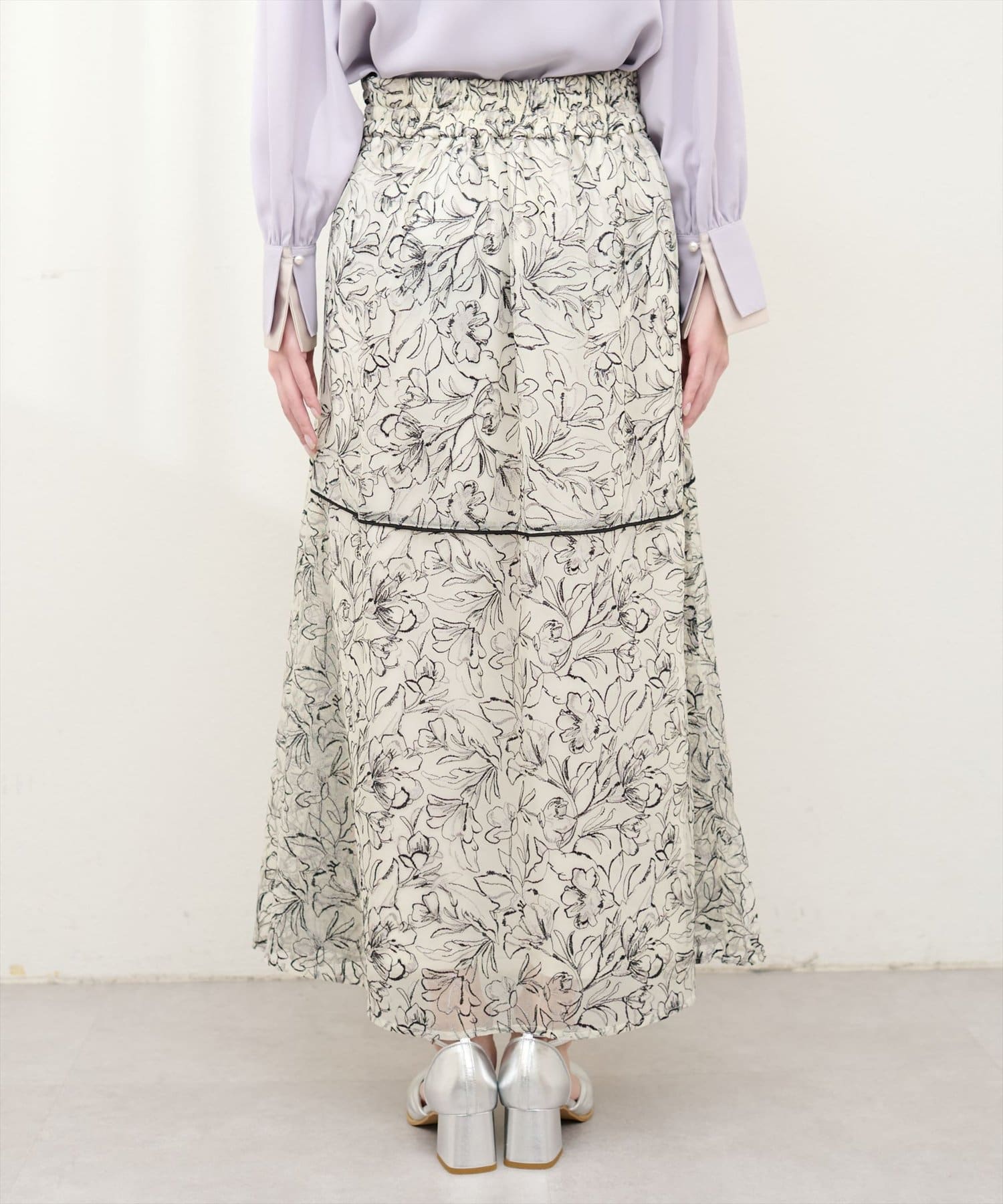 しなやかなスカートの動きと共に裾レースの透け感が上品且つ可愛らしい仕上がりになっています。