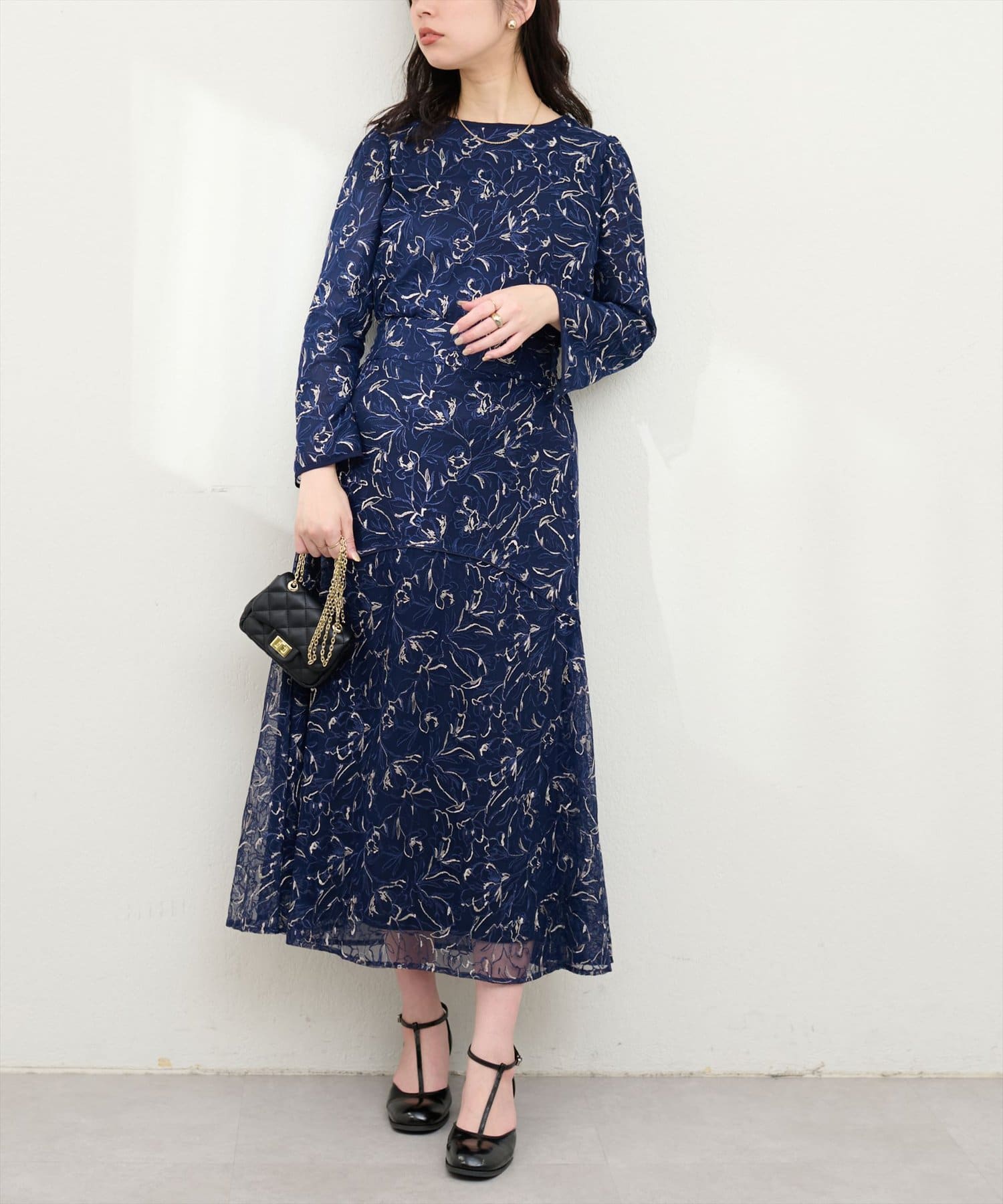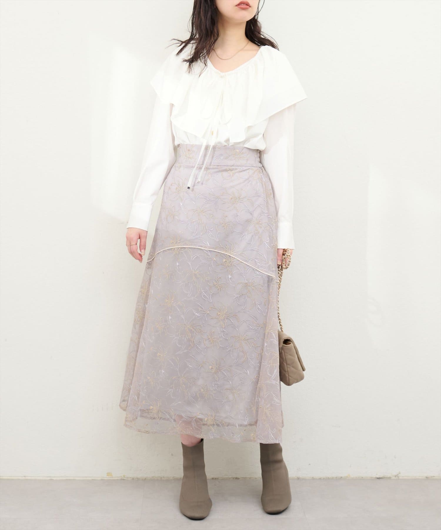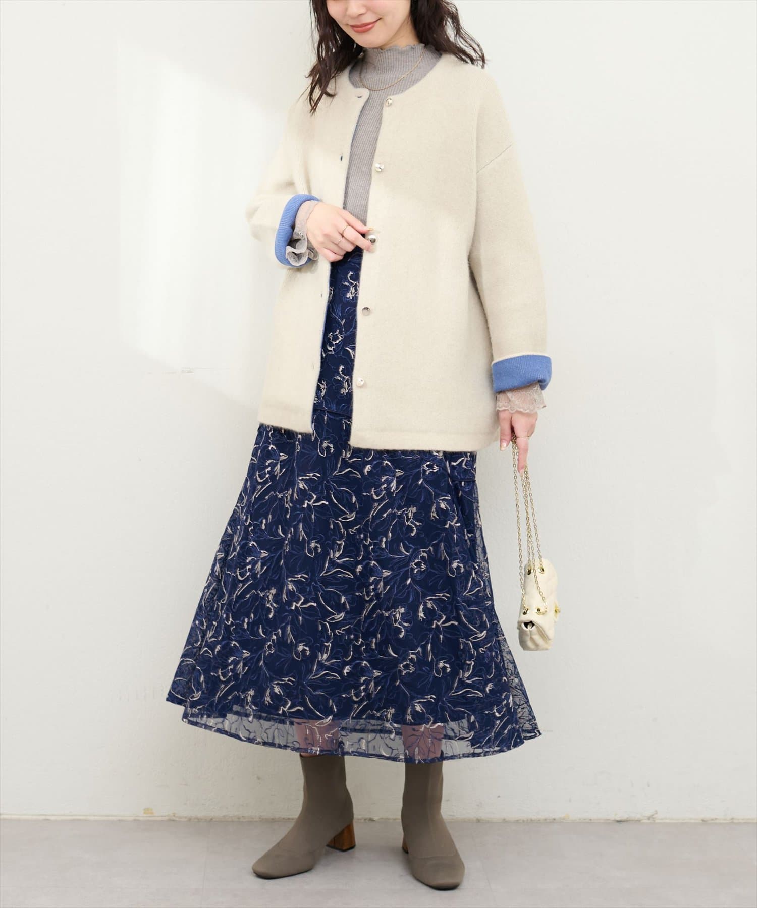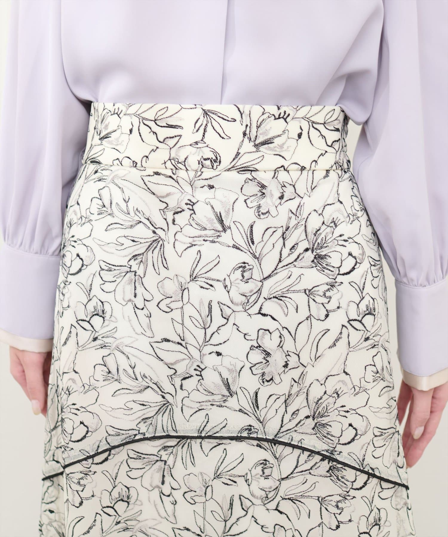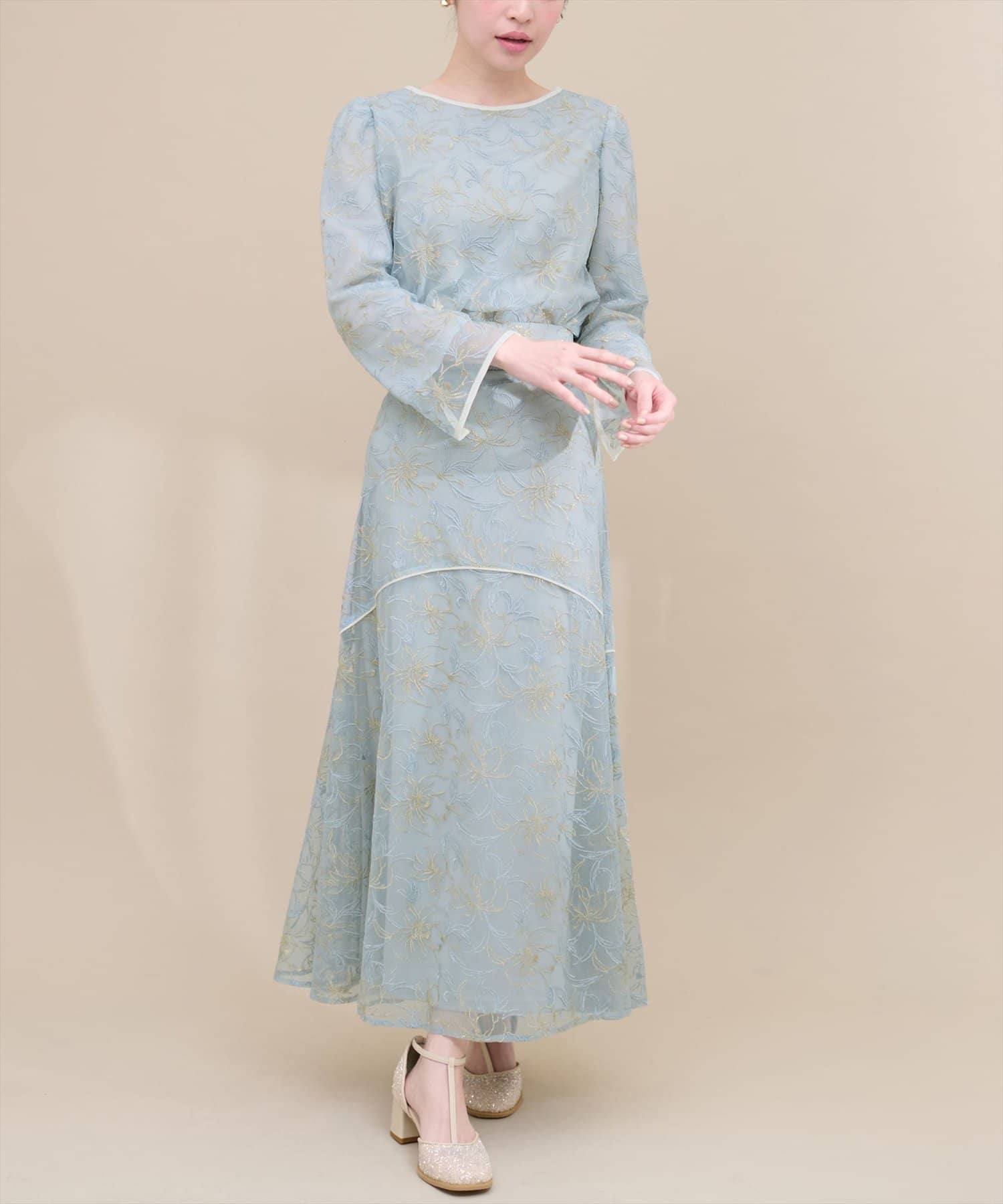 しなやかなスカートの動きと共に裾レースの透け感が上品且つ可愛らしい仕上がりになっています。