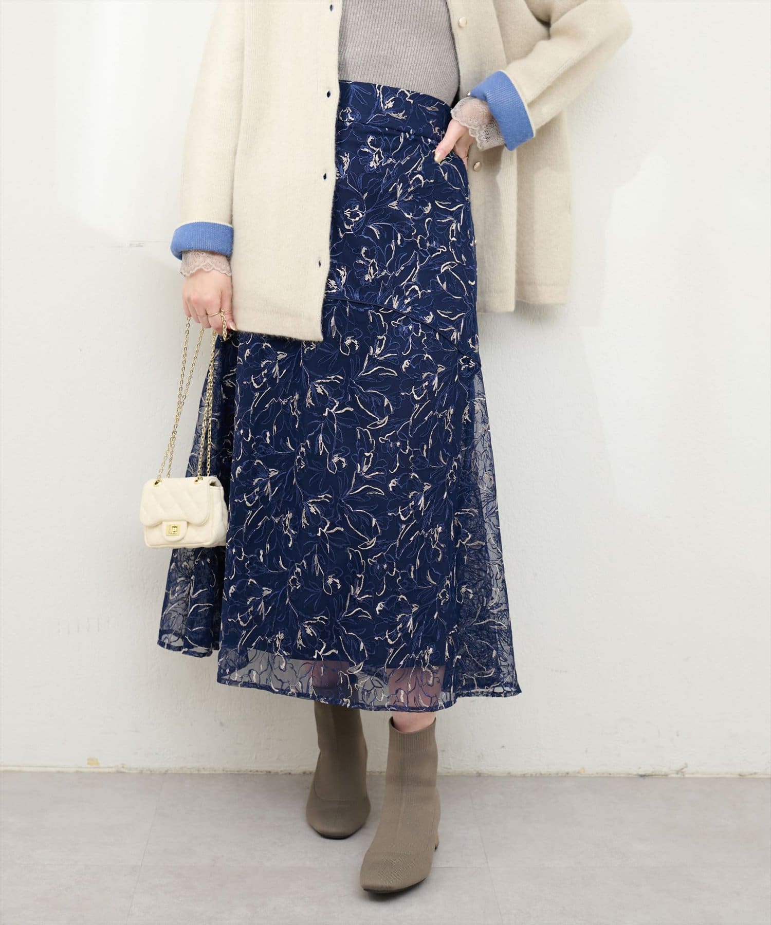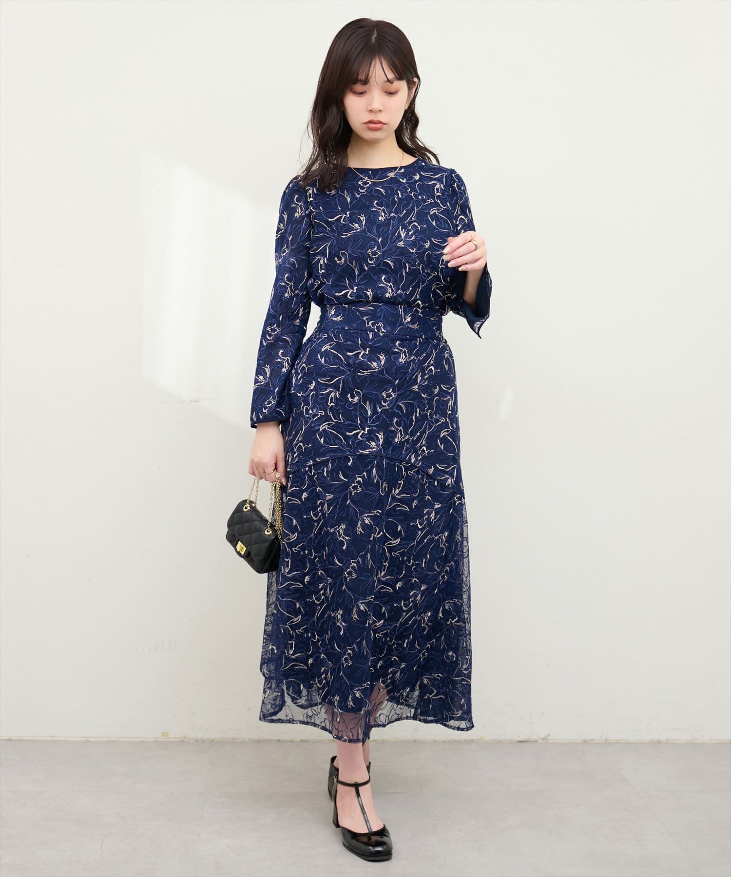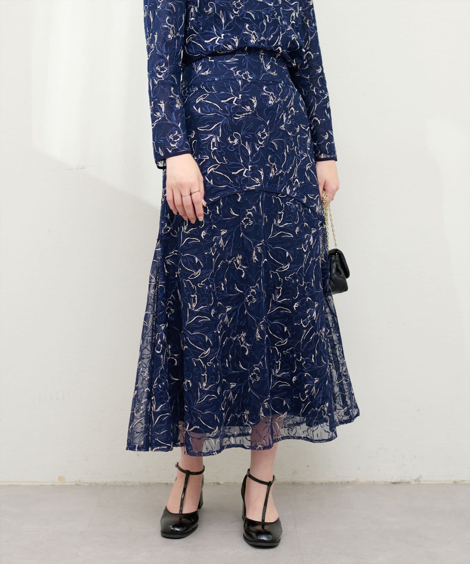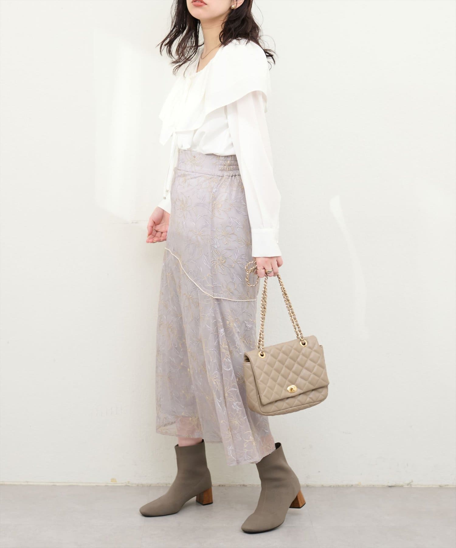 しなやかなスカートの動きと共に裾レースの透け感が上品且つ可愛らしい仕上がりになっています。