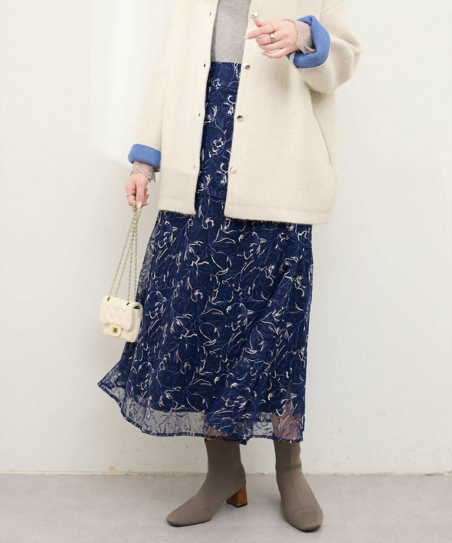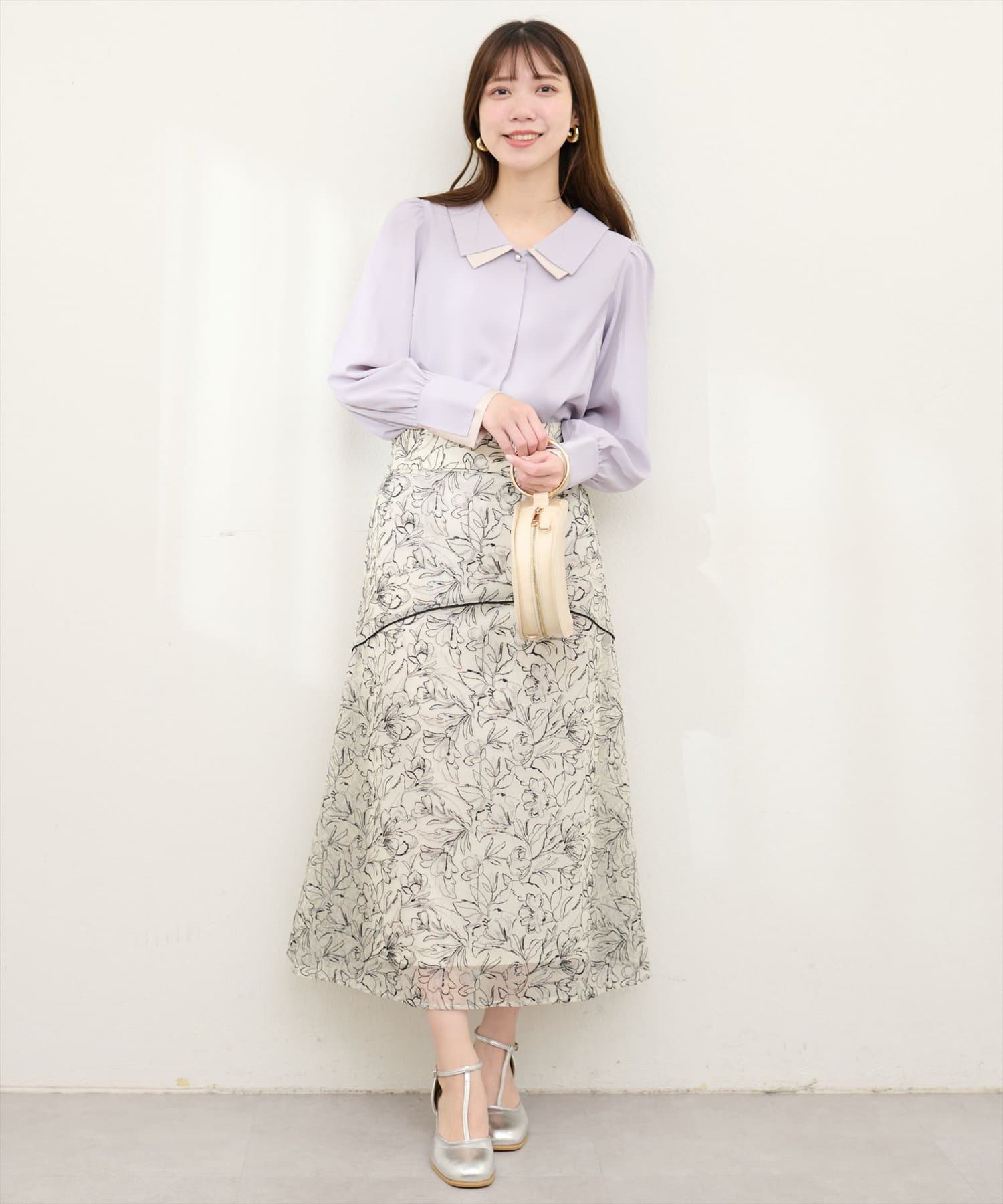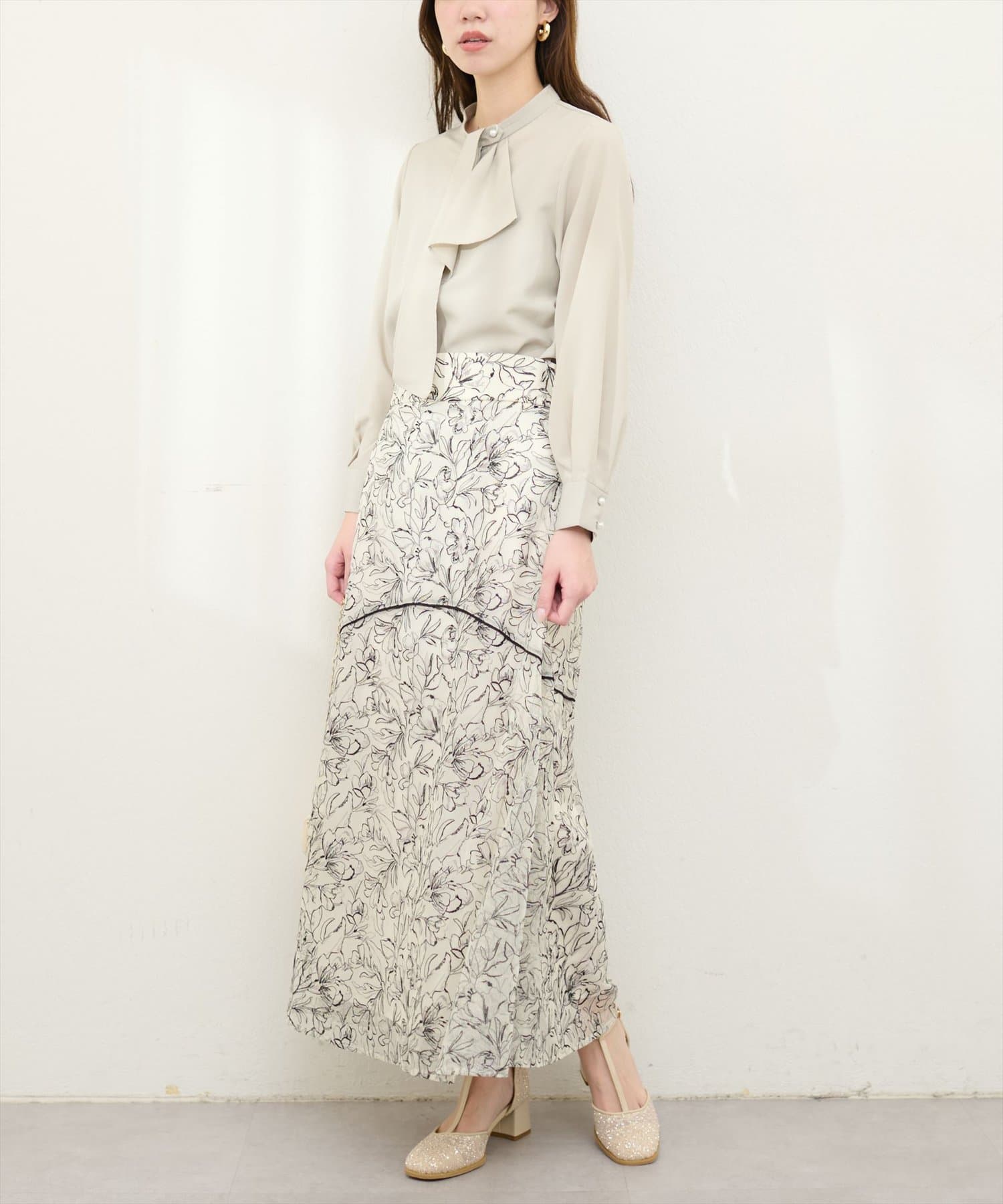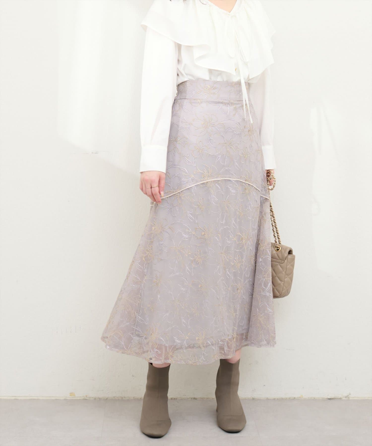 ブラウスなどシンプルなトップスとの相性が抜群です!思わず目を惹くデザインでデートコーデやお仕事コーデにもオススメの一枚です。