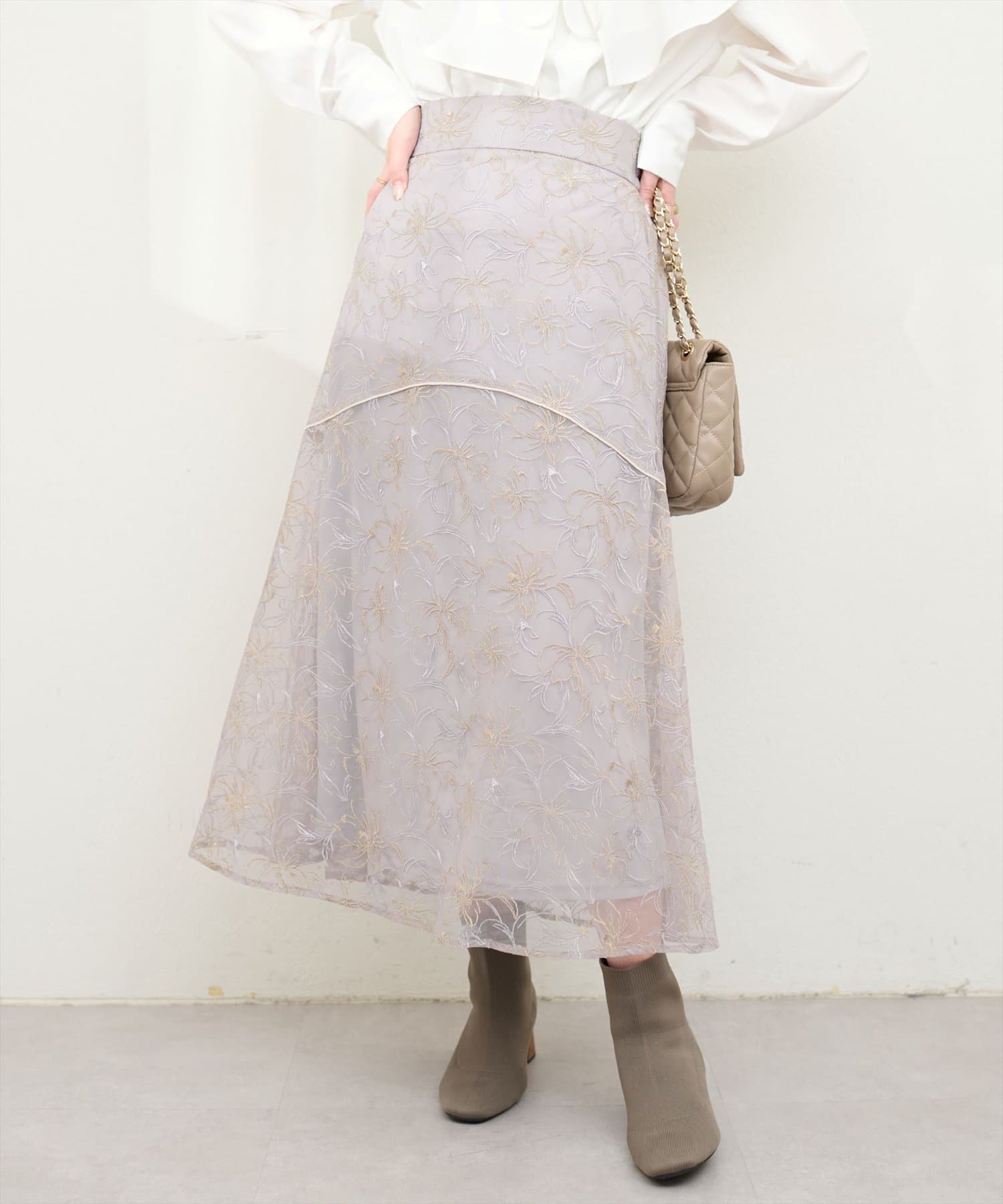 シーズン長く着れるレーススカートとなっており、ゆるめのプルオーバーなどと合わせてカジュアルコーデにも◎