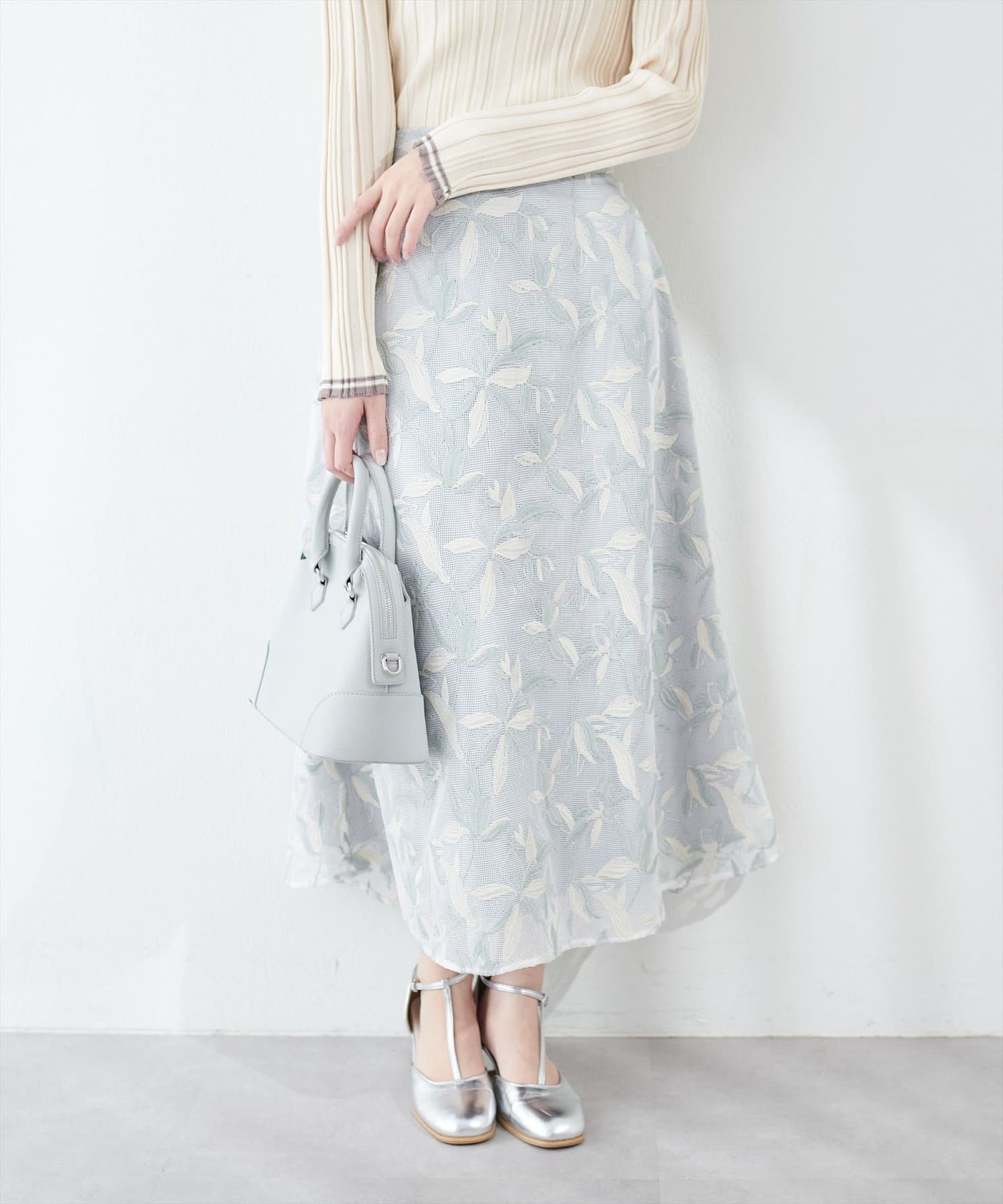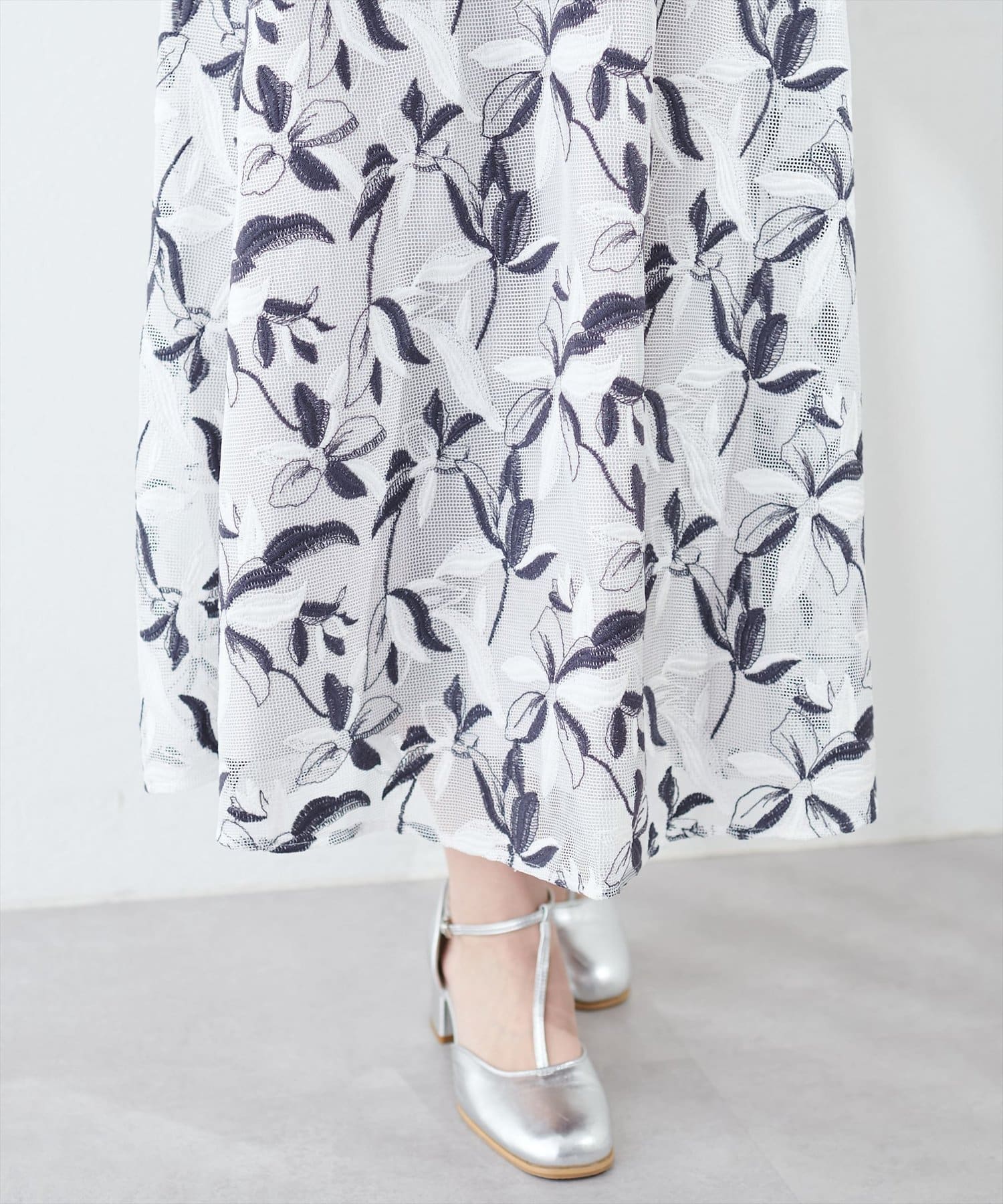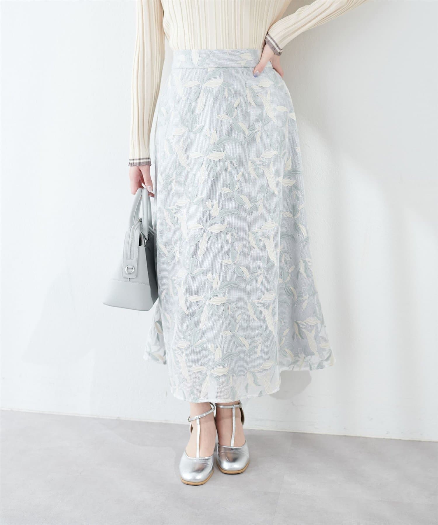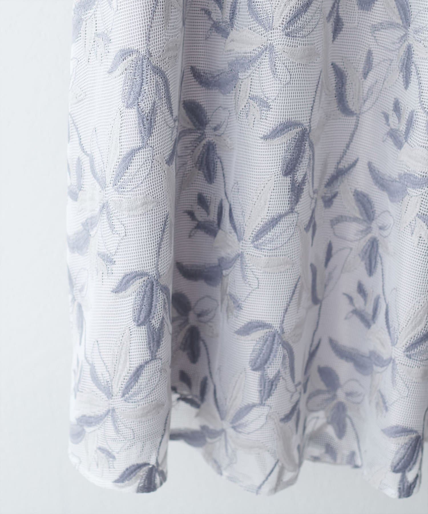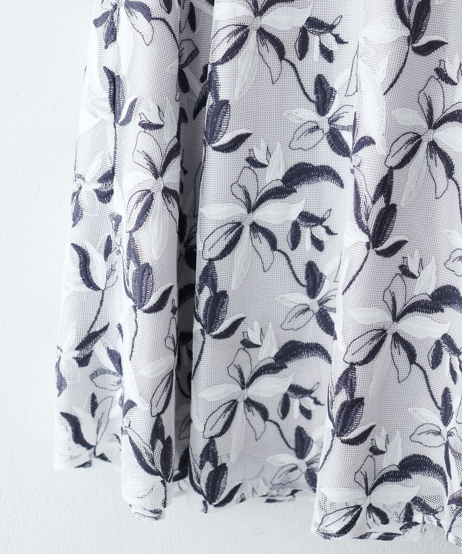 メッシュ×フラワー刺繍レーススカート