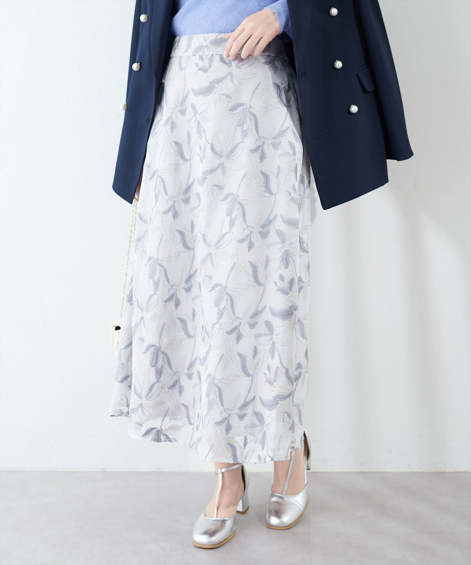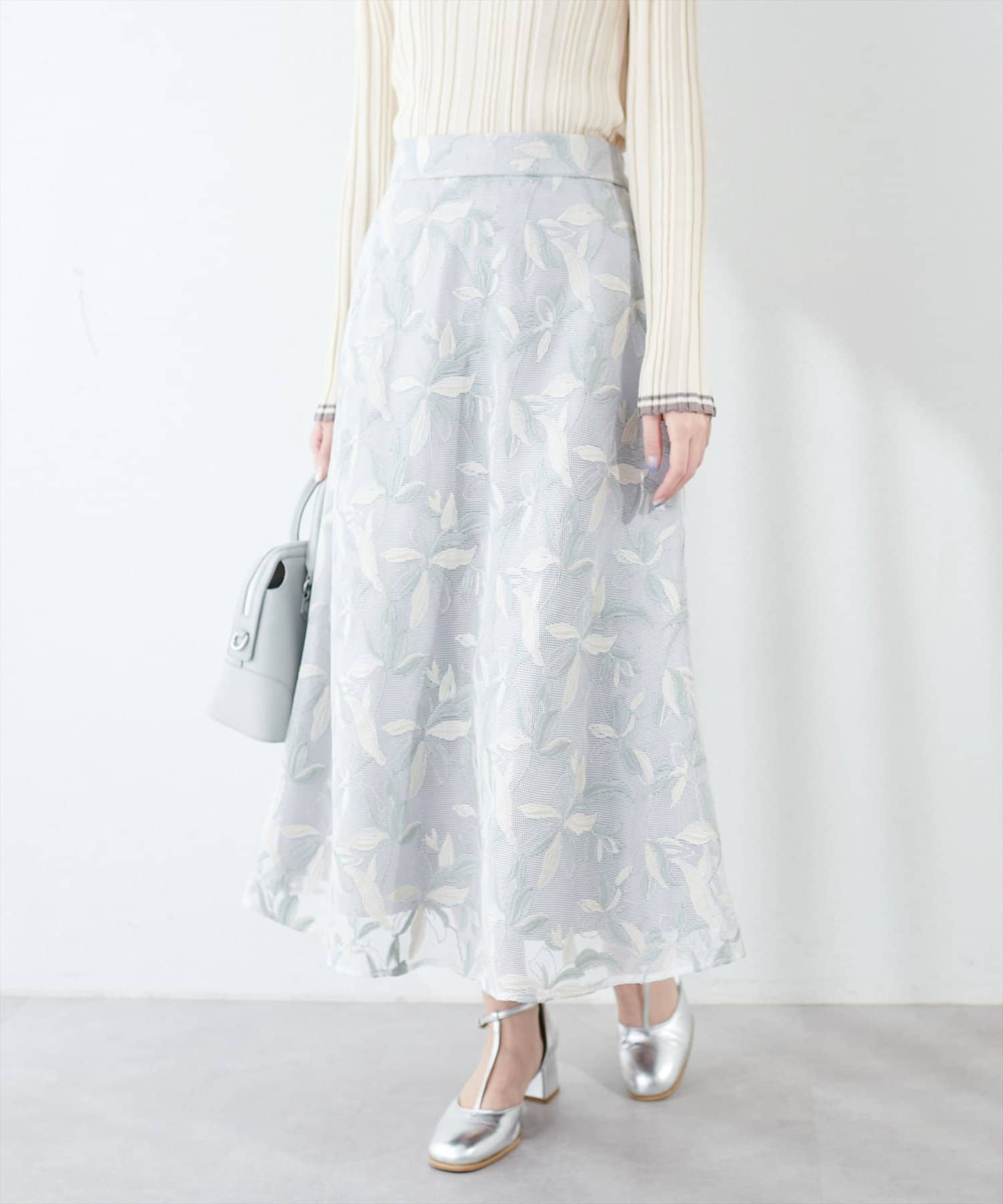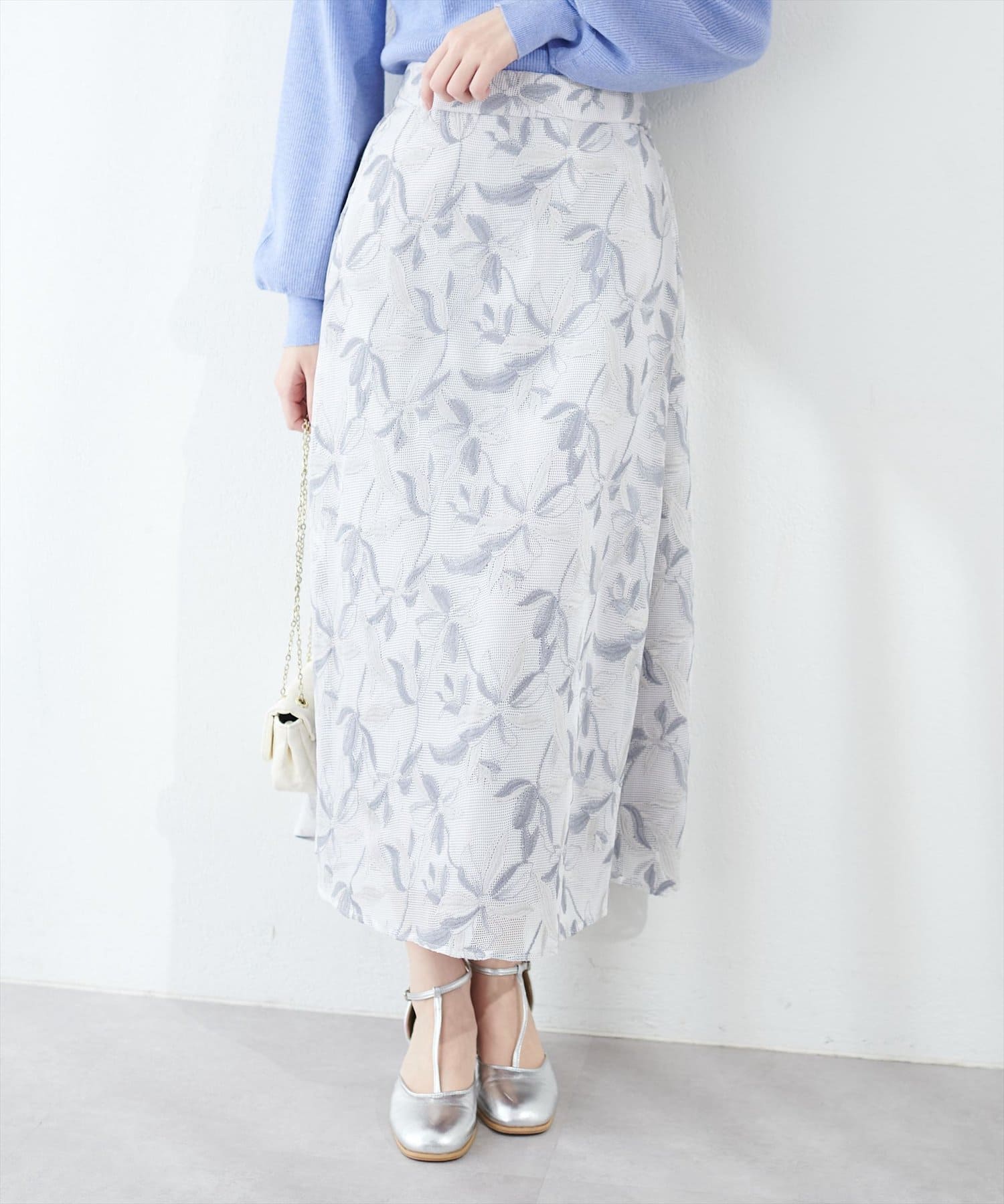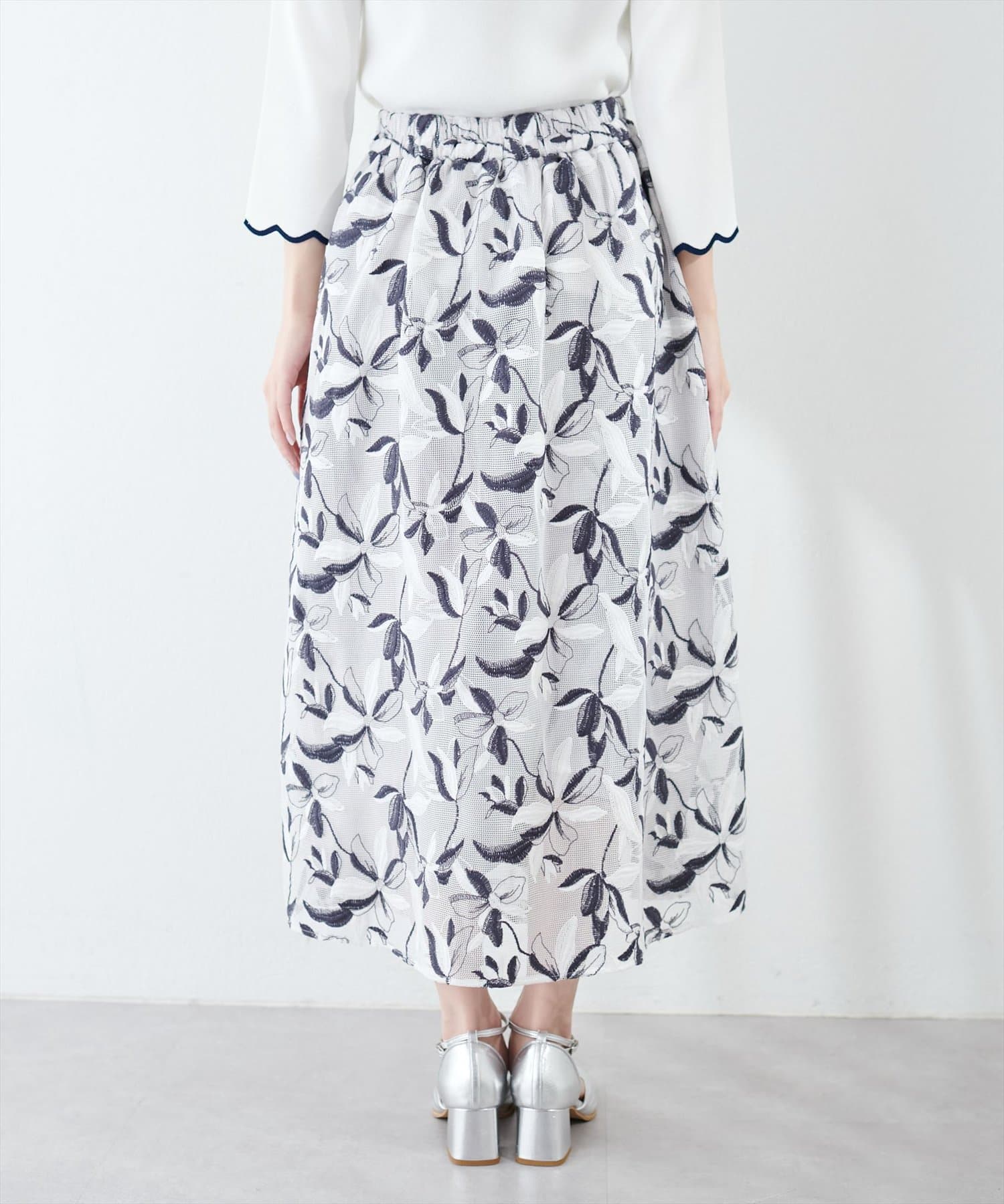 メッシュ×フラワー刺繍レーススカート
