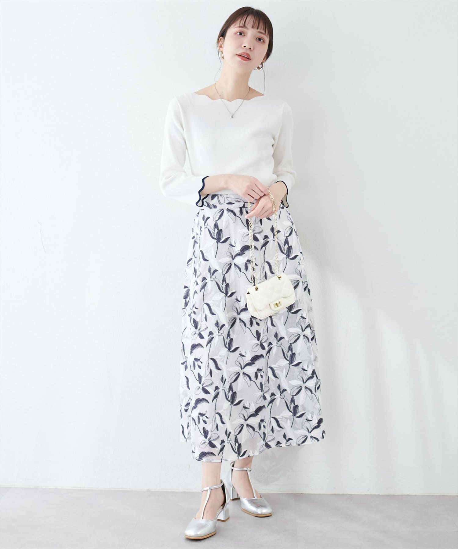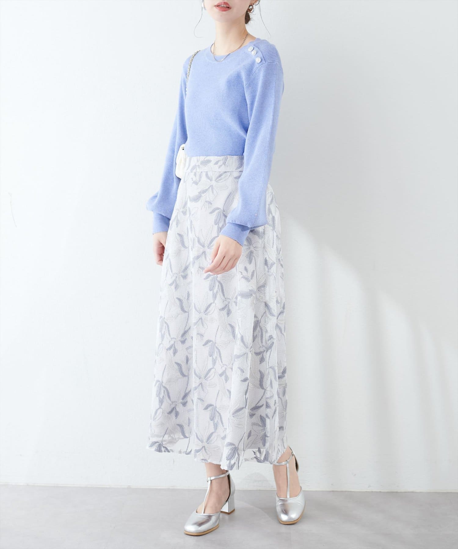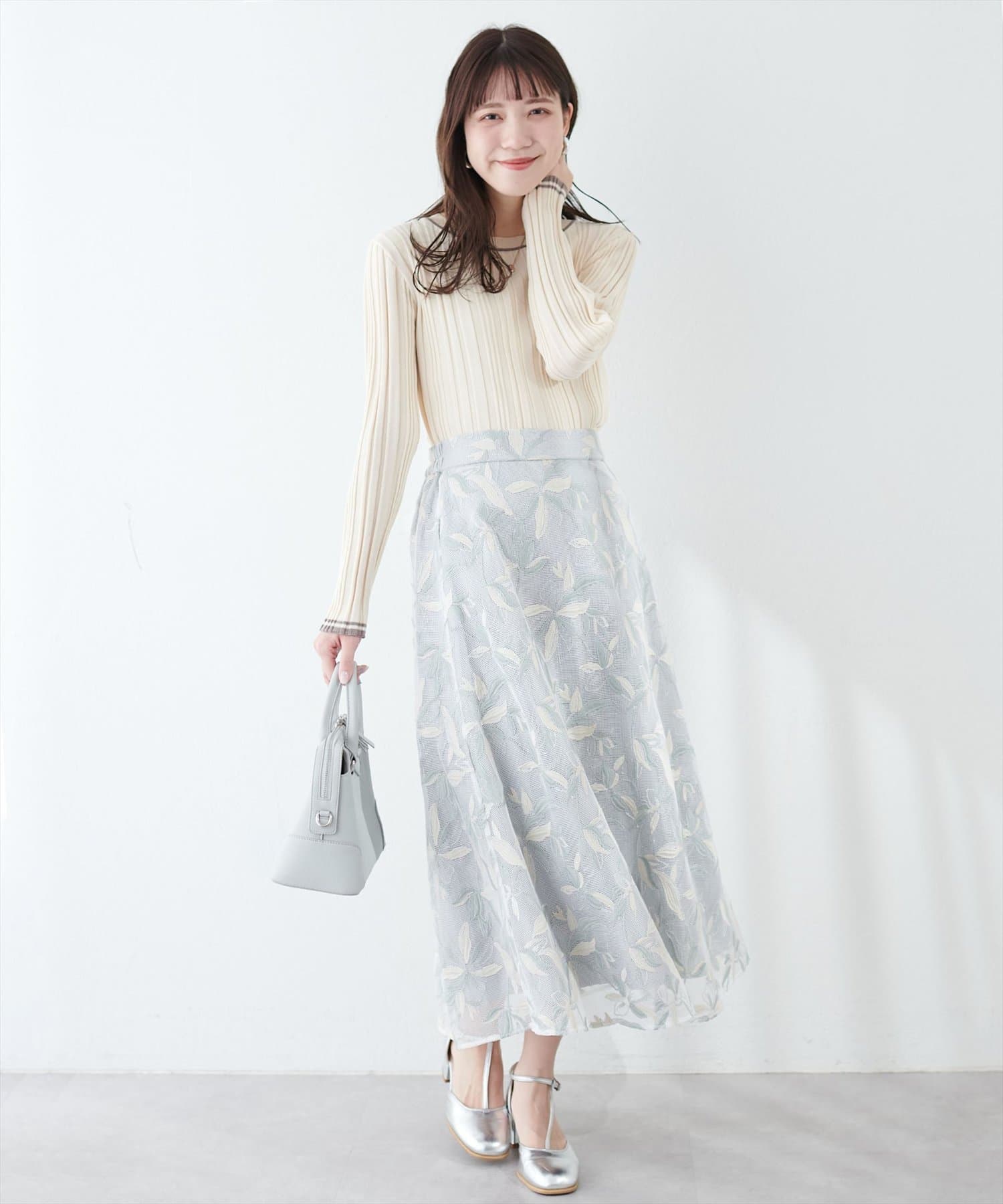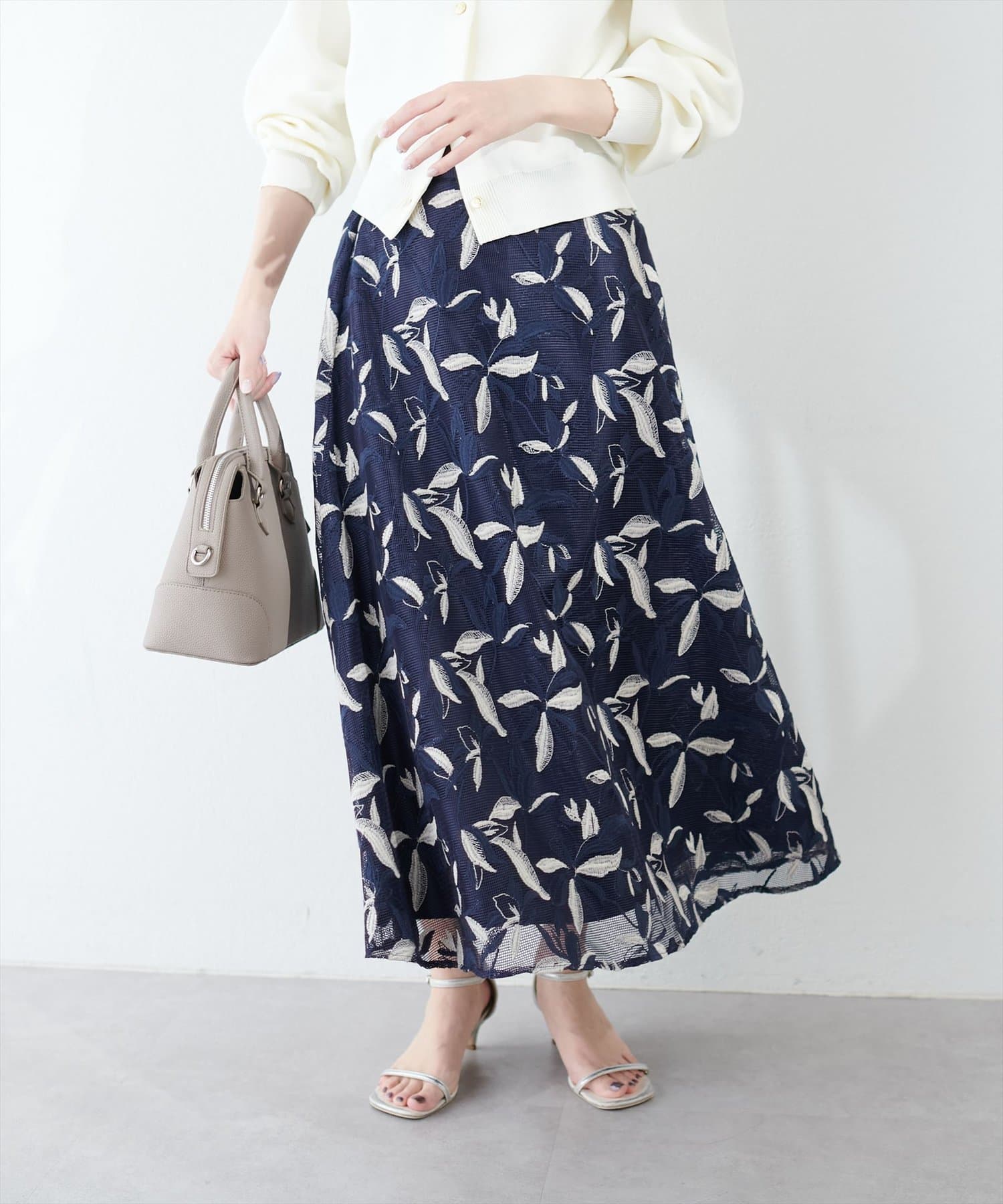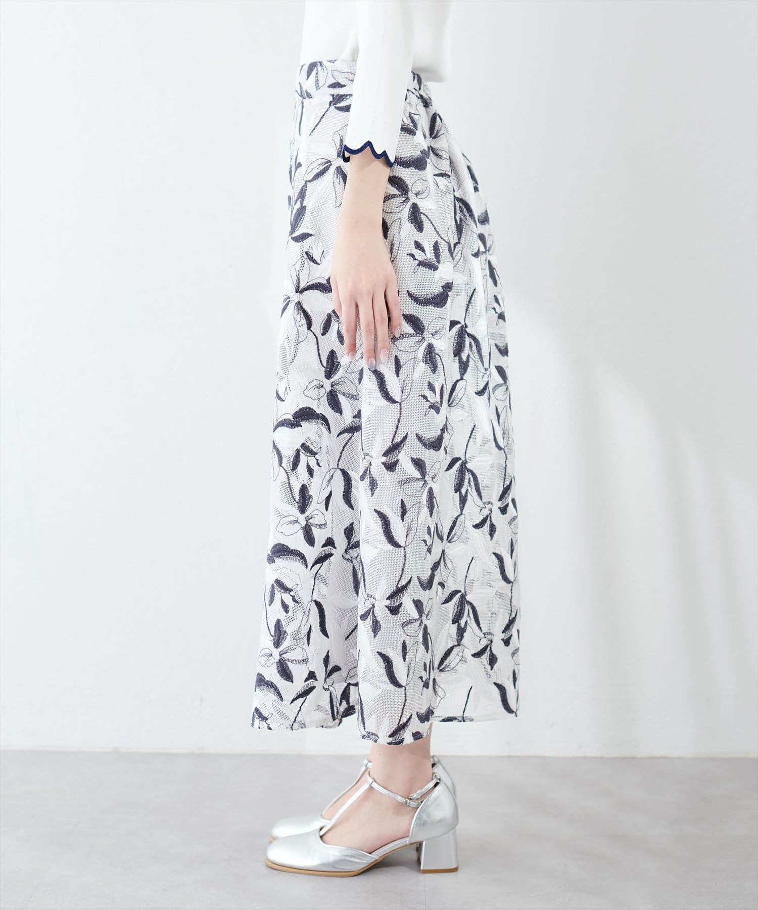 メッシュ×フラワー刺繍レーススカート