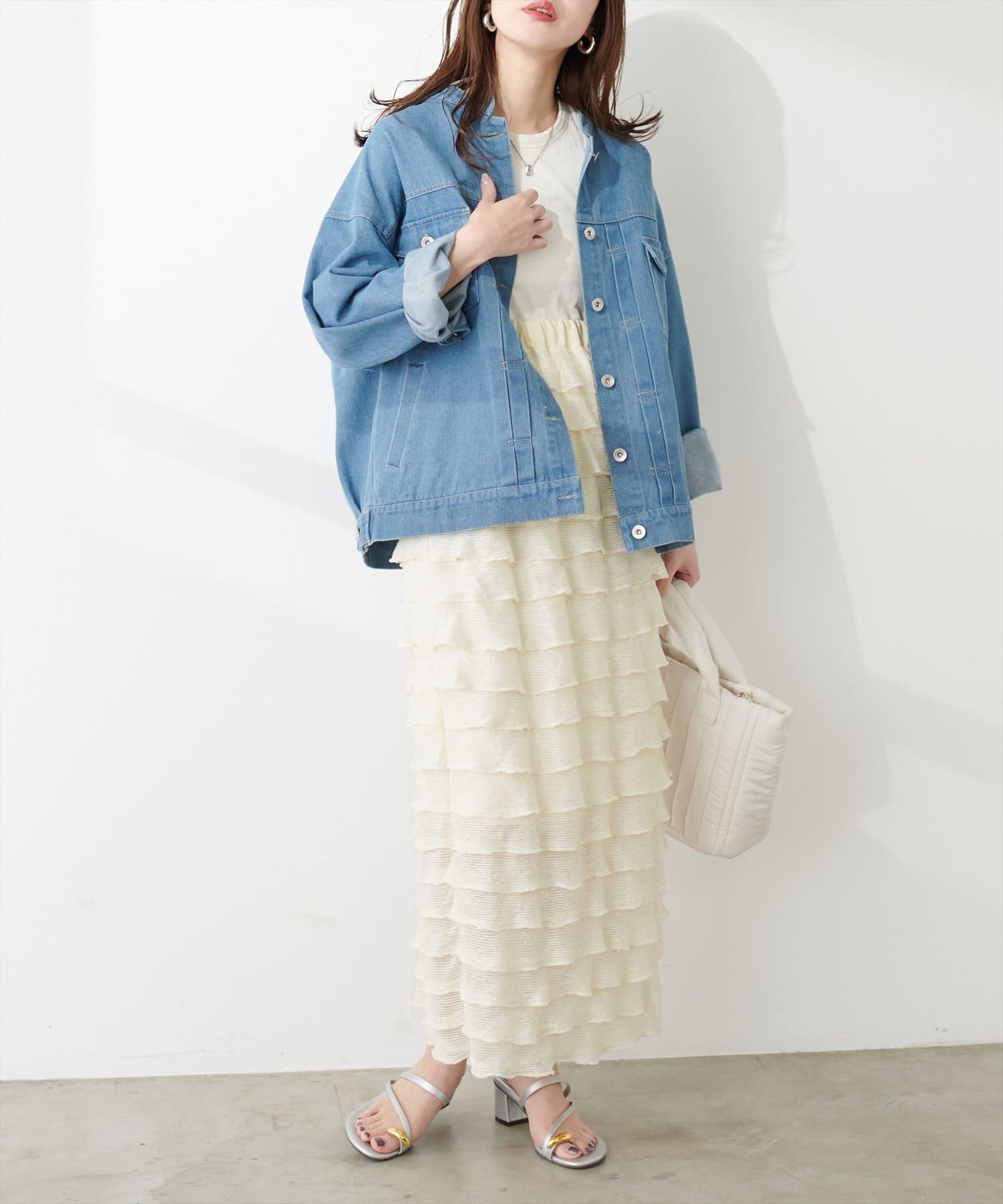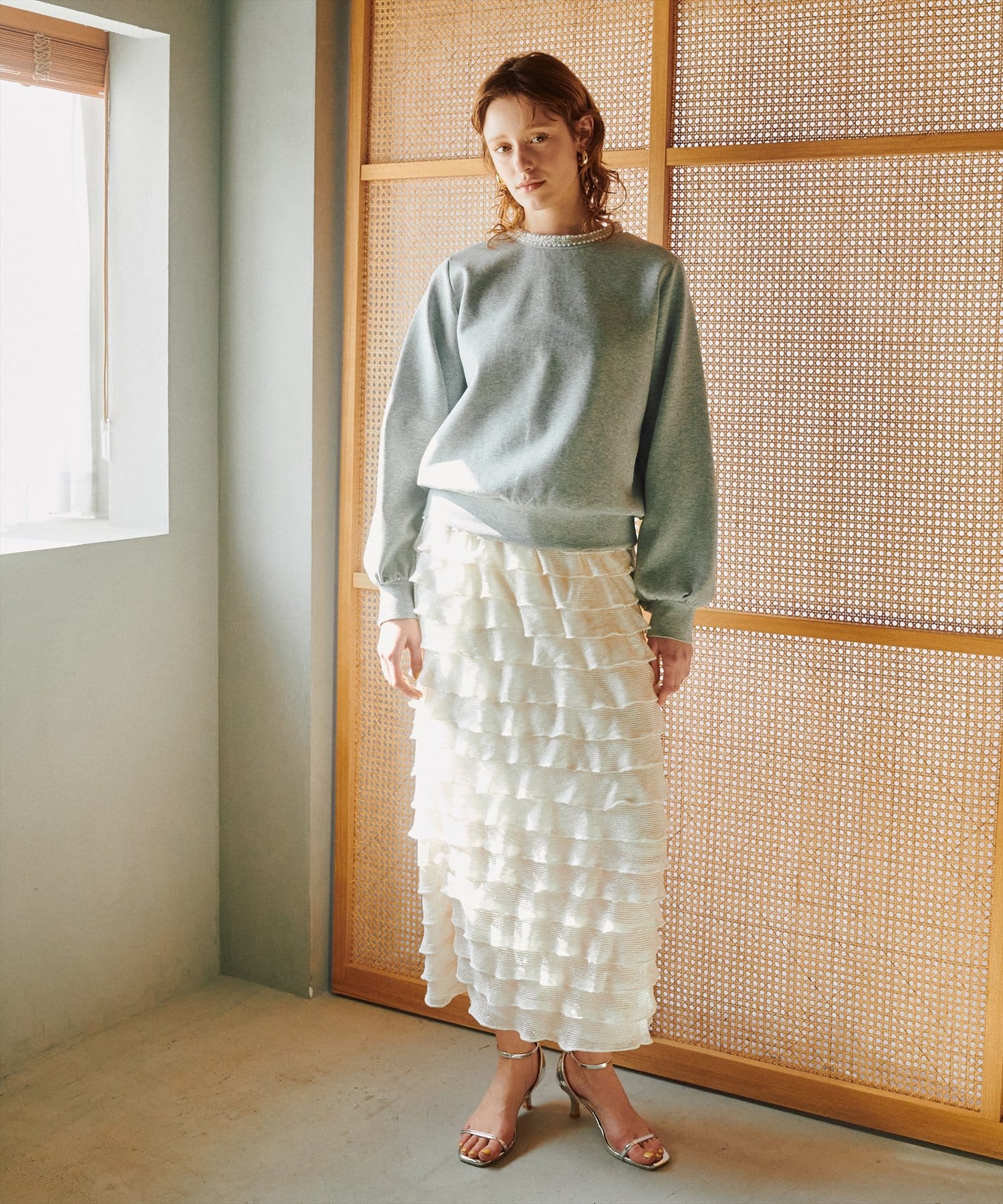 シアー感のある軽やかなフリルレースが、一気に春のスタイリングに仕上げてくれます。