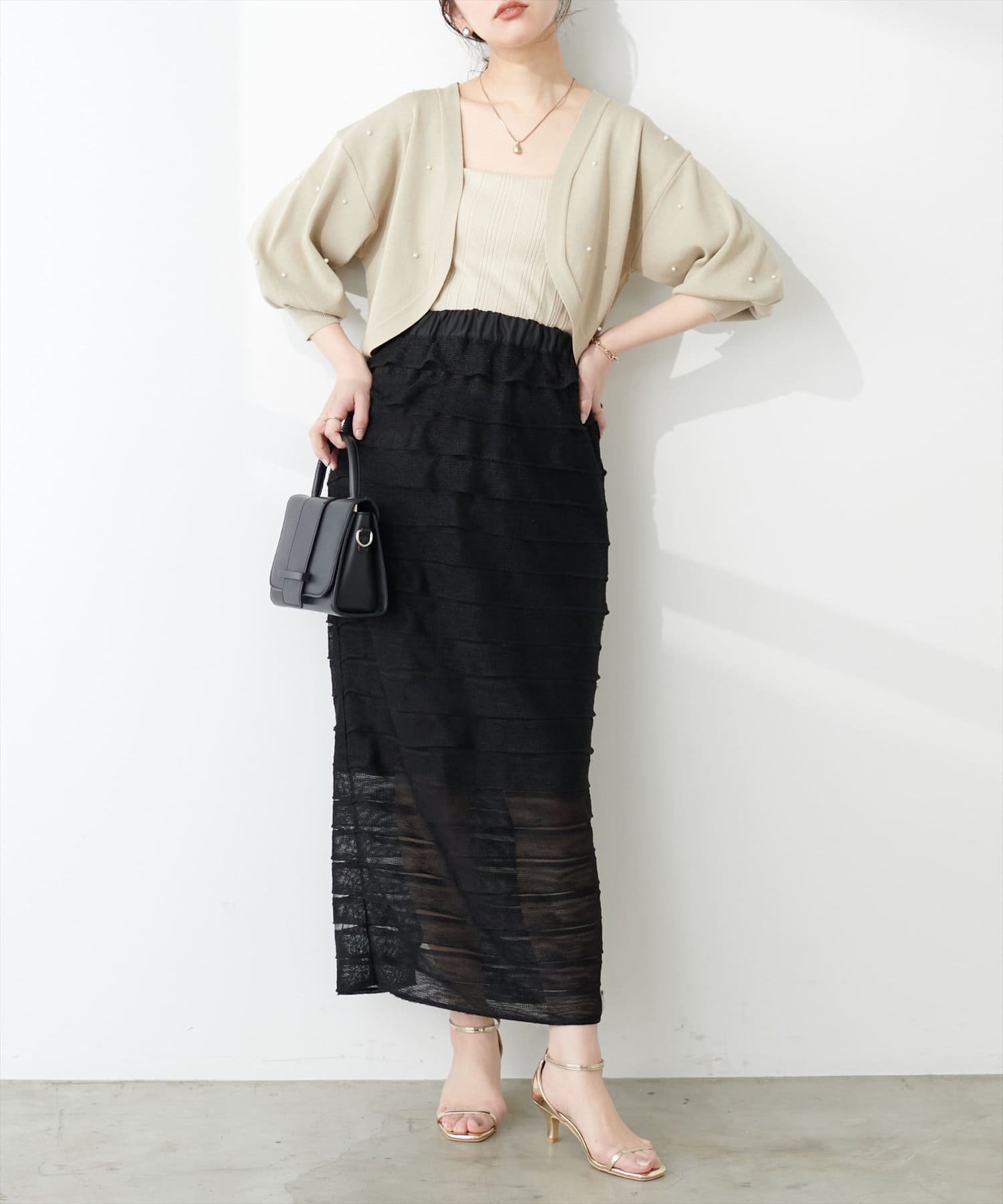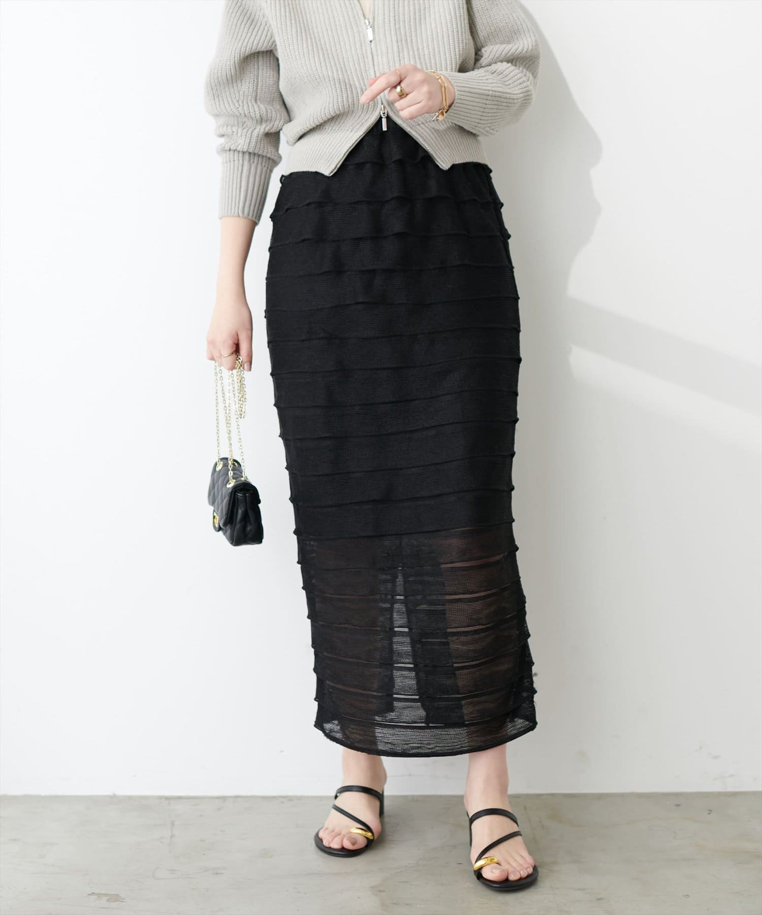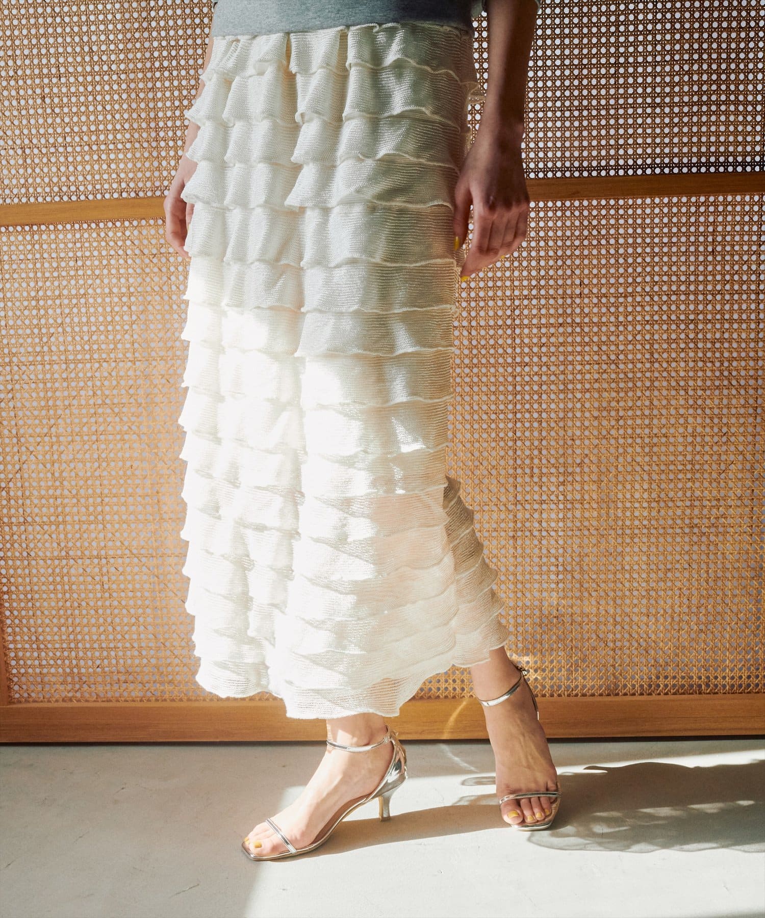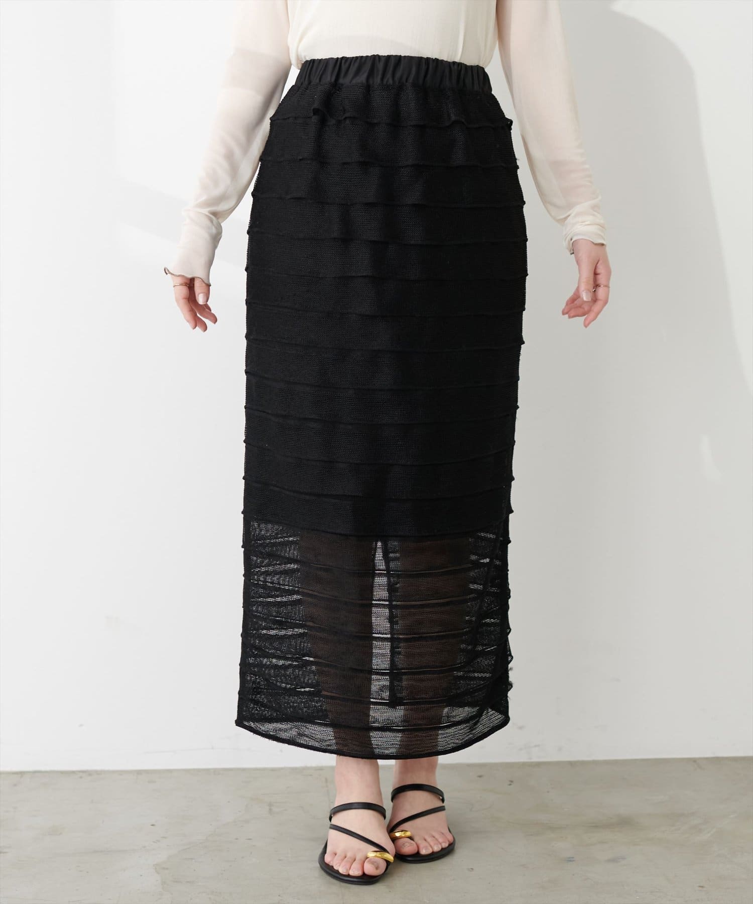 シアー感のあるカットソー素材を使用した軽やかなレーススカート。