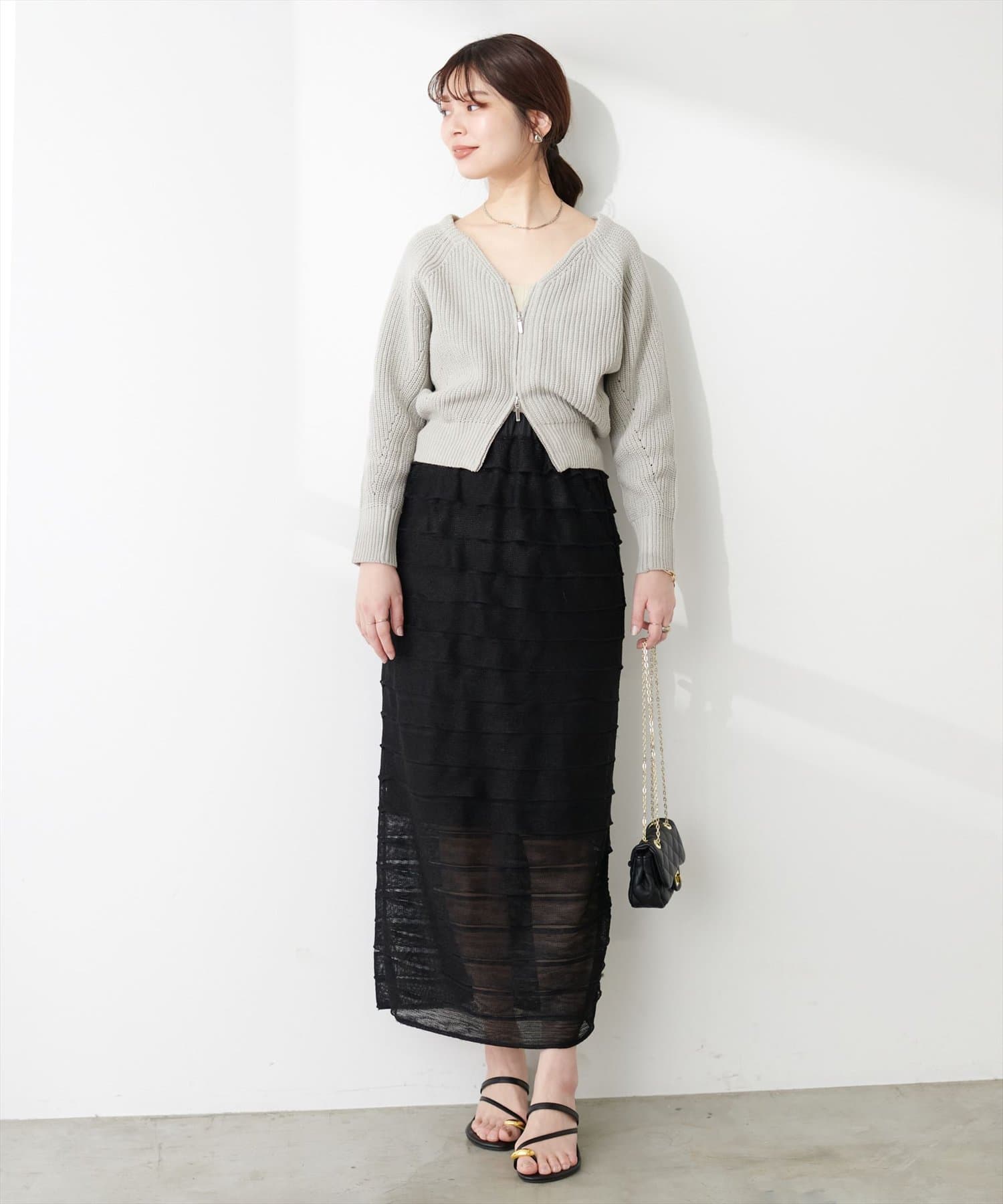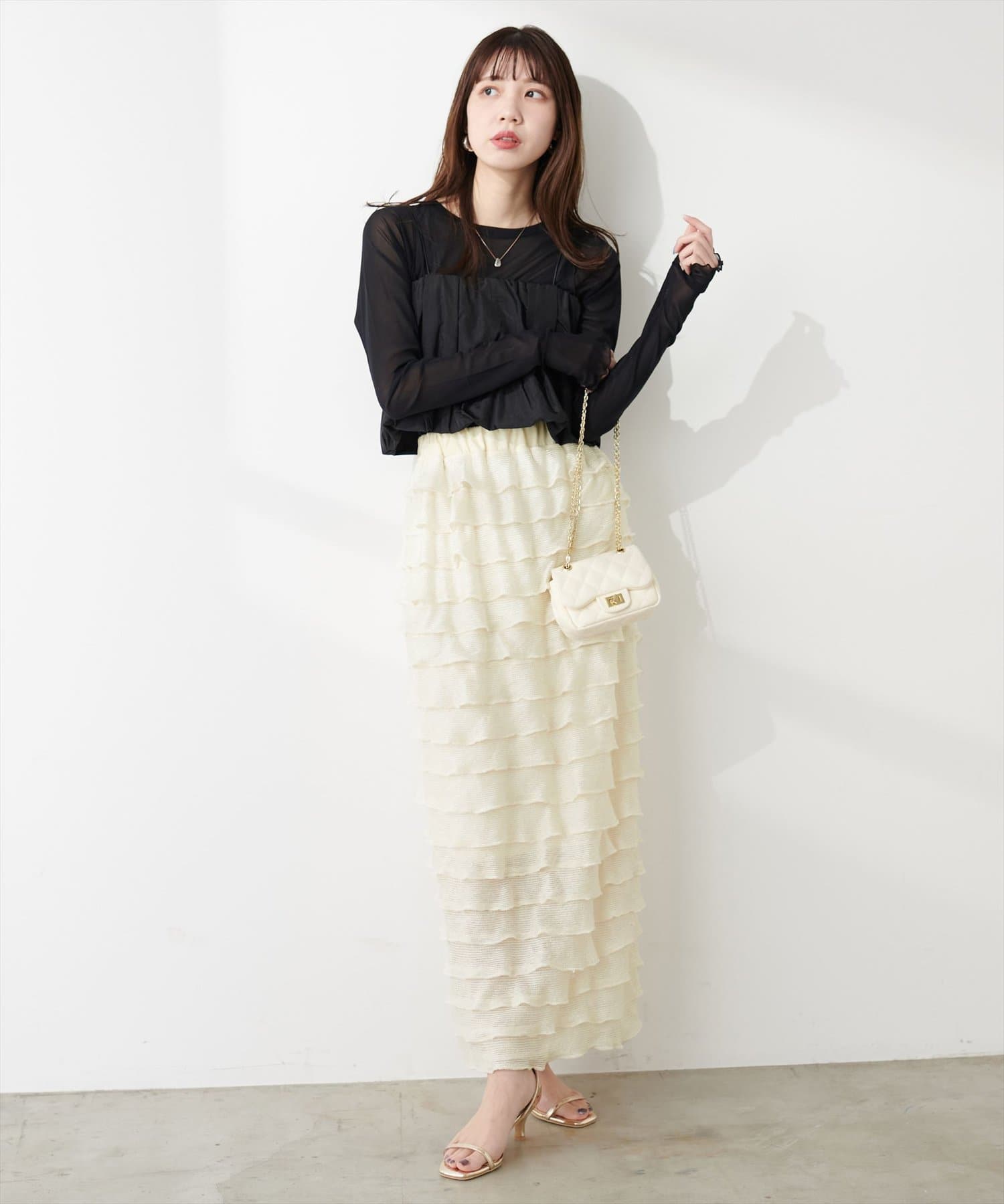 ティアードデザインのフリルレースがスタイリングにトレンド感をプラス