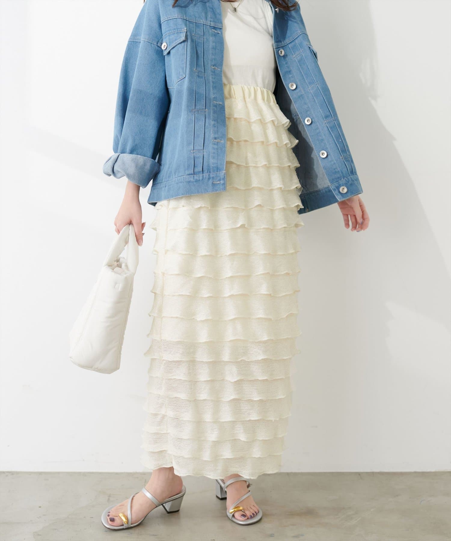 贅沢にあしらわれた細かなフリルデザインがコーディネートを華やかで女性らしい印象に仕上げてくれます。