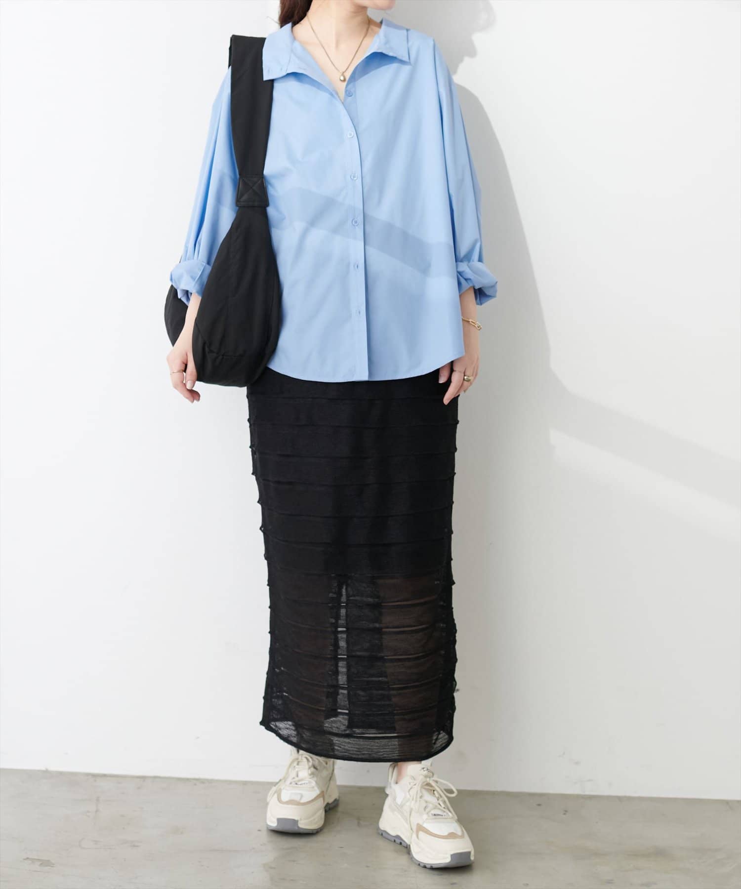 身体のラインを拾い過ぎないすっきりとしたIラインシルエットが魅力。