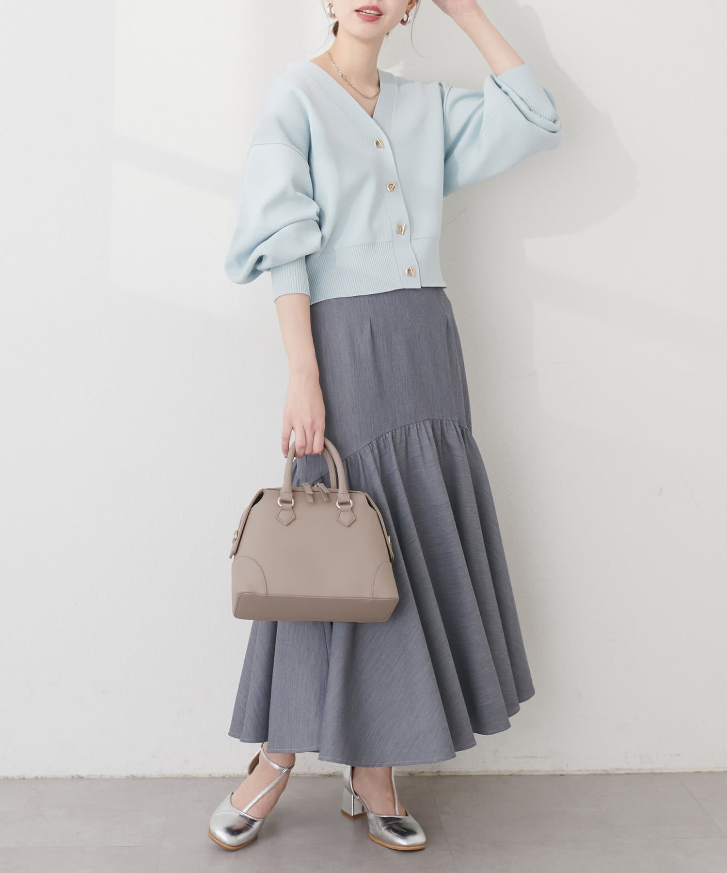 シルエットにメリハリのあるスカートなので、たっぷりニットやカットソーでゆるく合わせても◎
