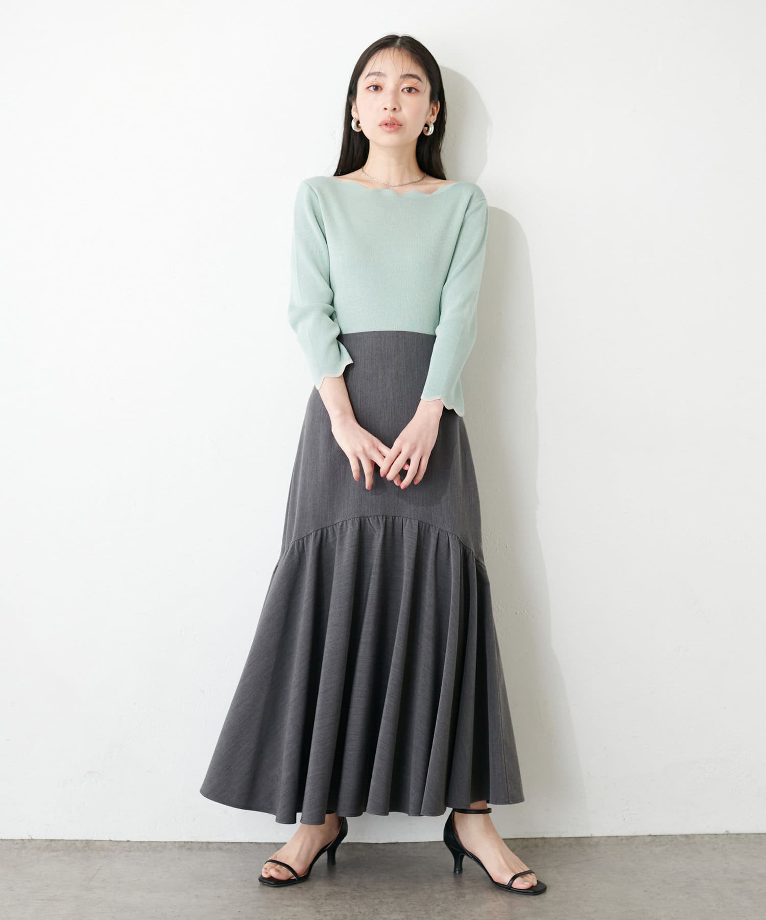 マーメイドの切り替えはラウンドをつくり、しっかりとしたメリハリのあるシルエットに。