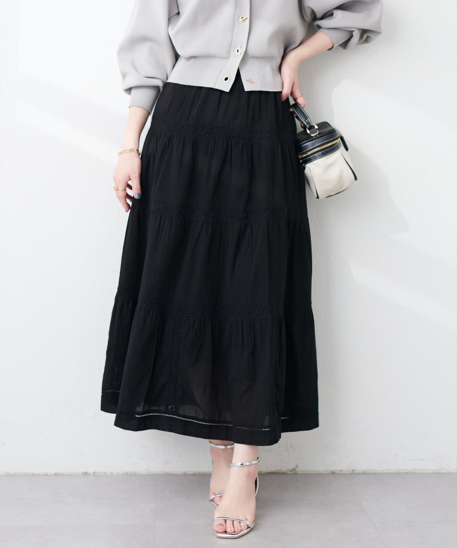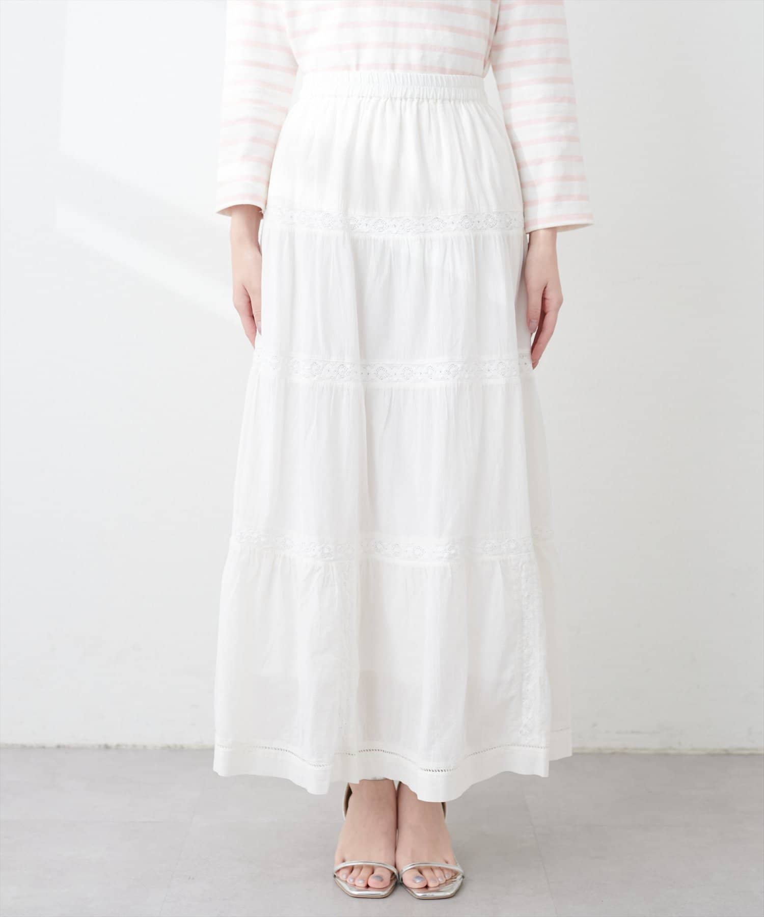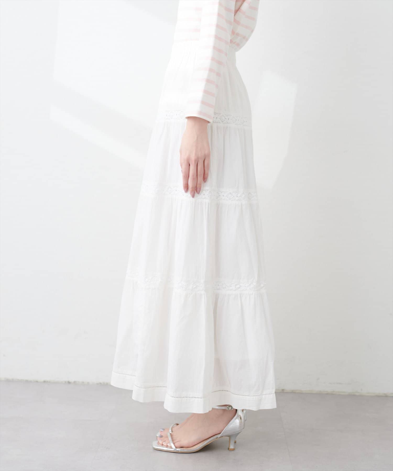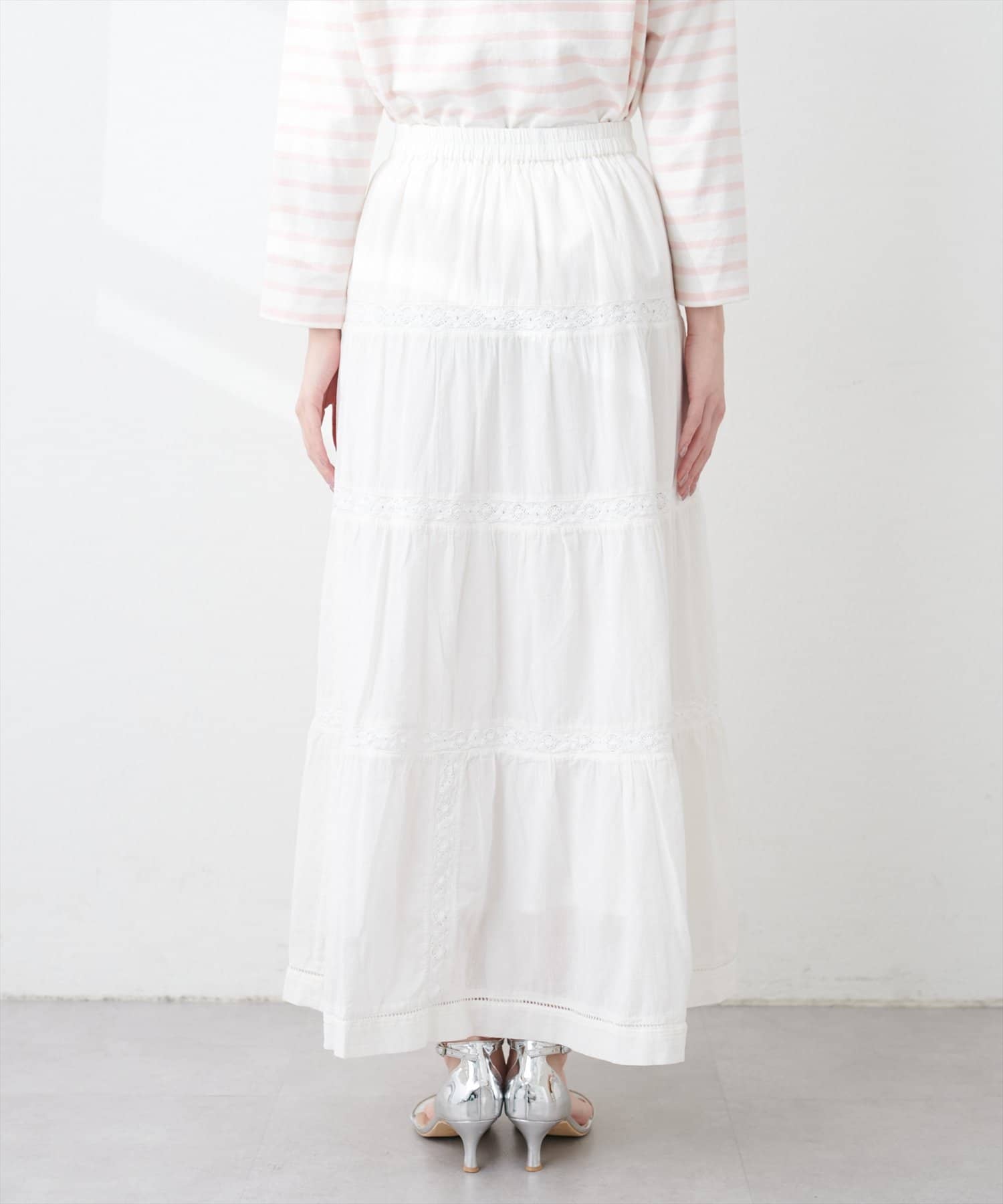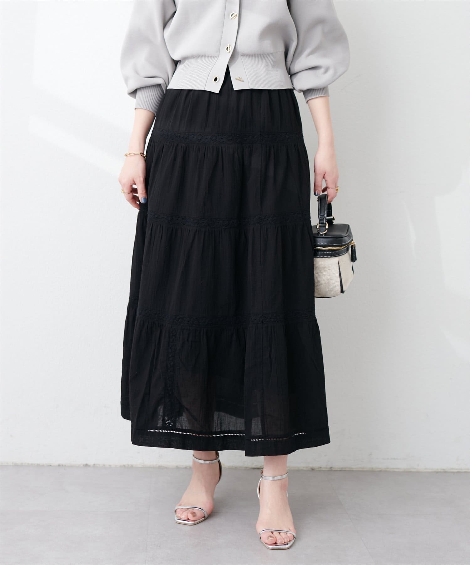 柔らかなコットン生地が優しい印象のティアードスカート。
