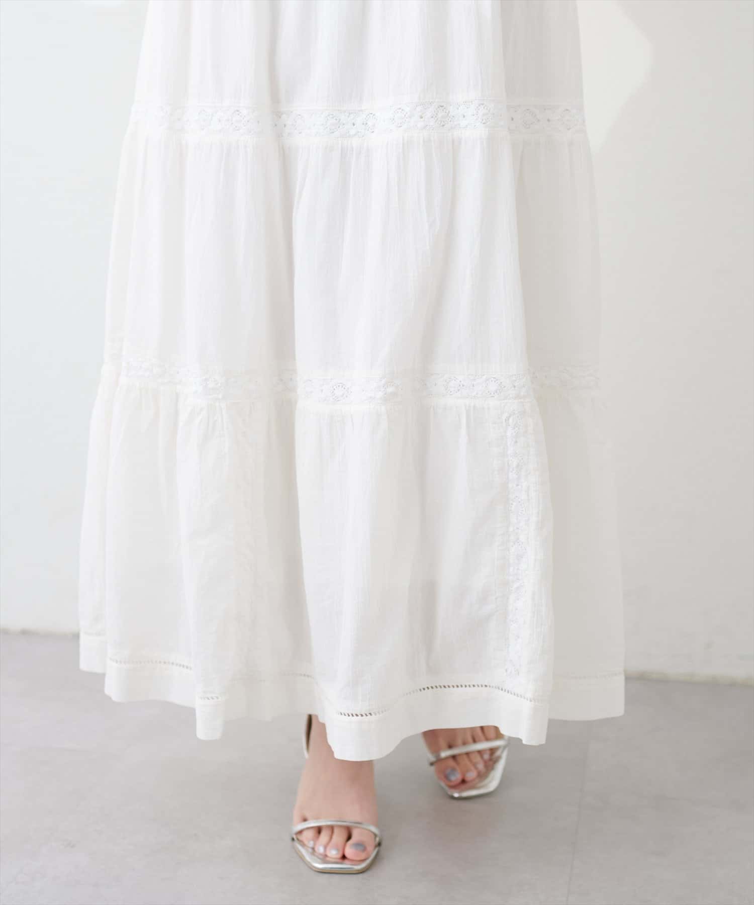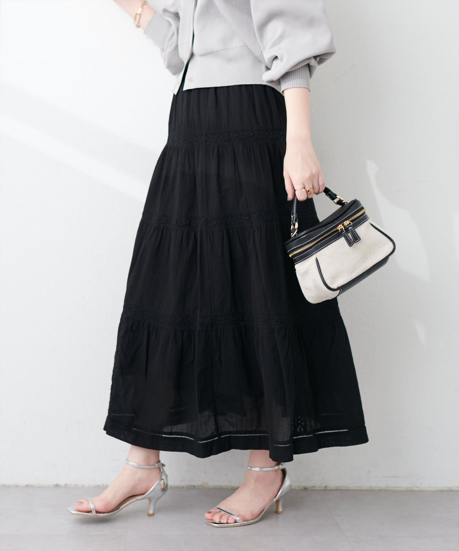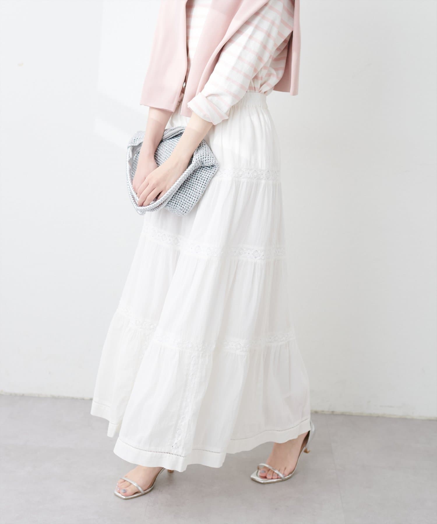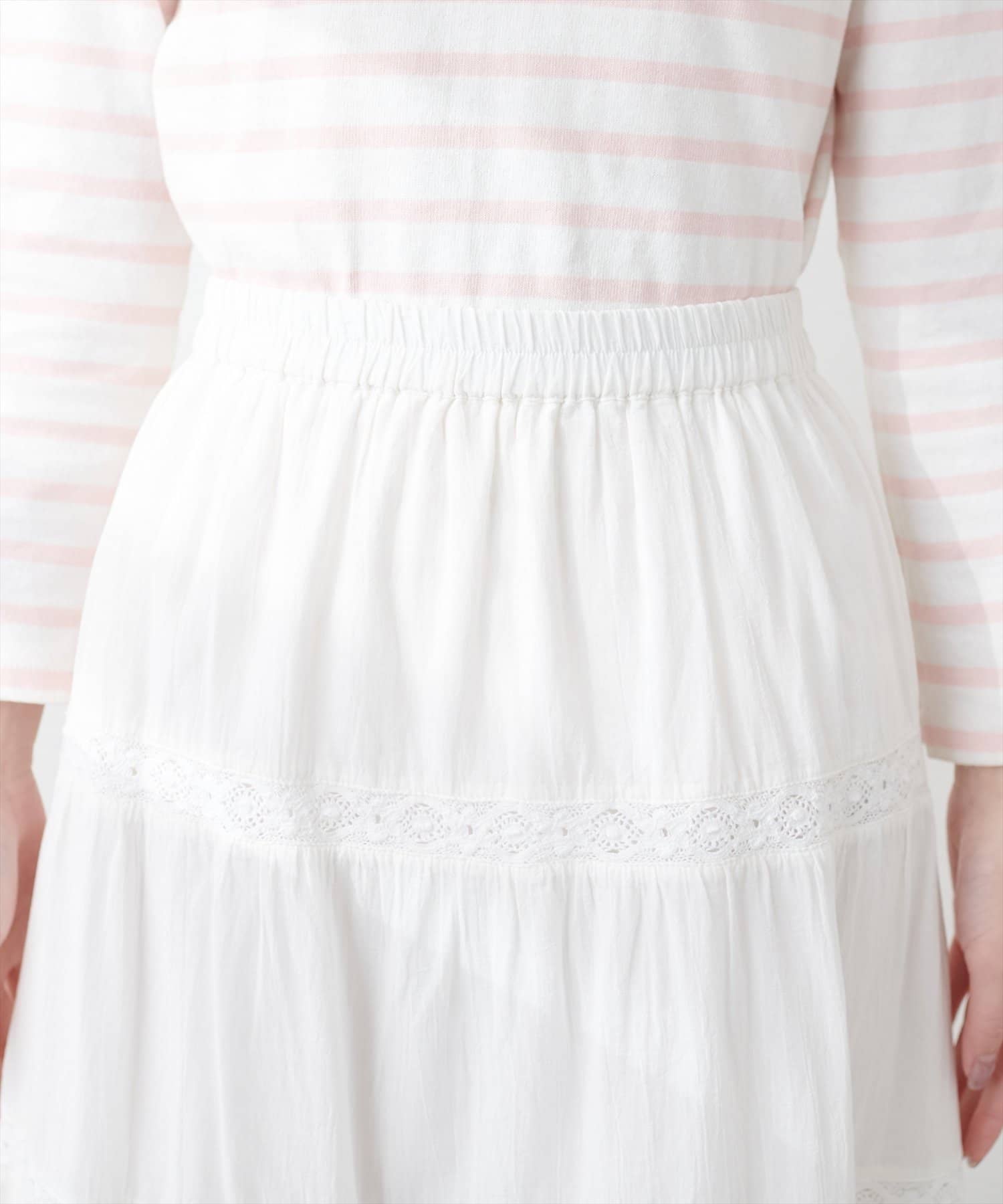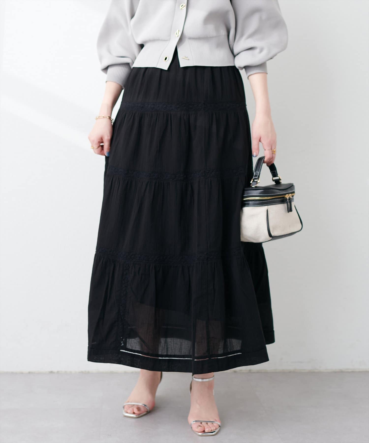 柔らかなコットン生地が優しい印象のティアードスカート。