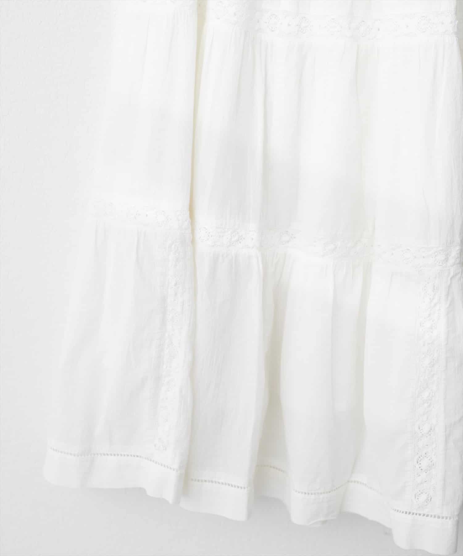 切り替え部分は繊細なレース使いでコーディネートに抜け感をプラス。