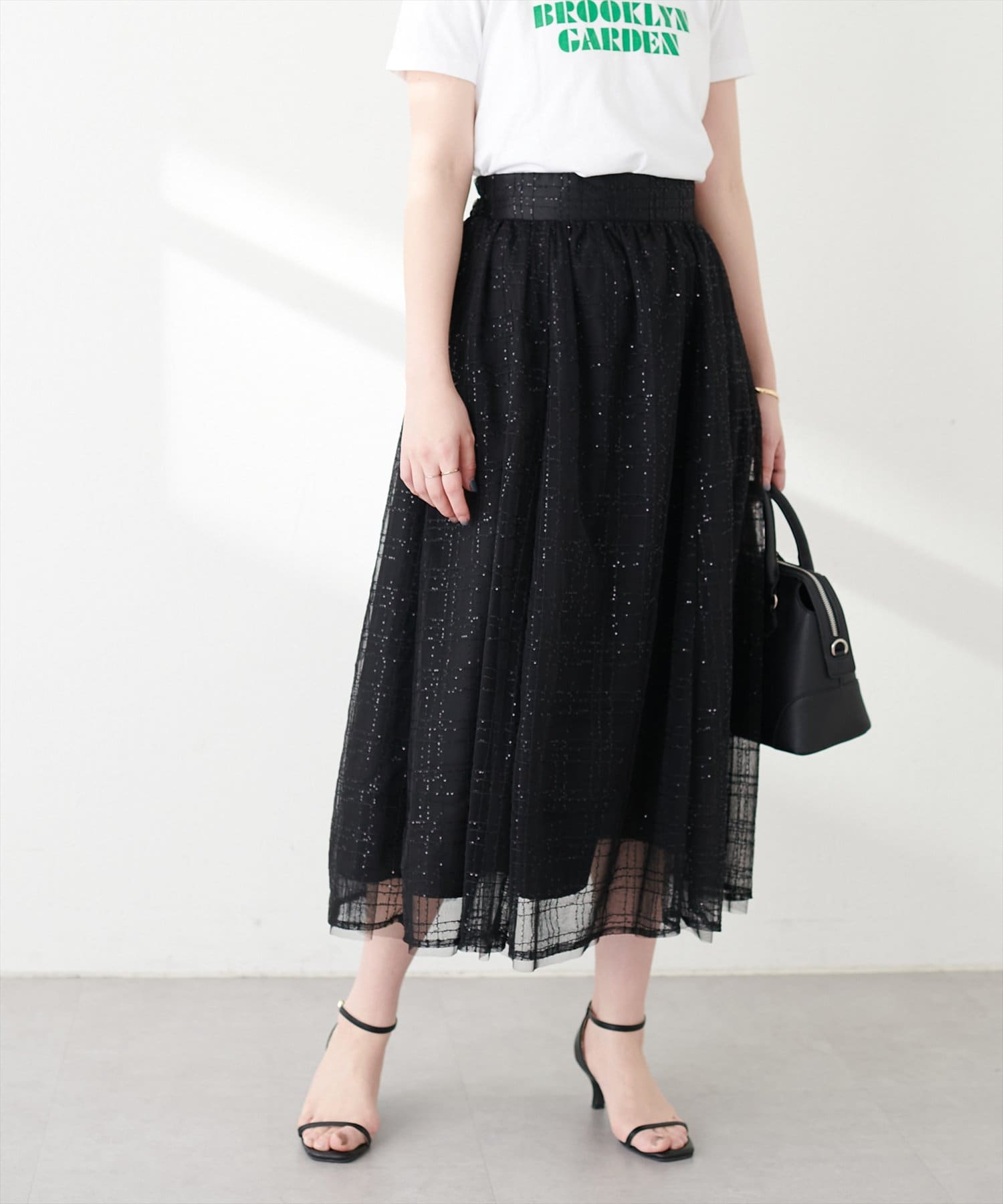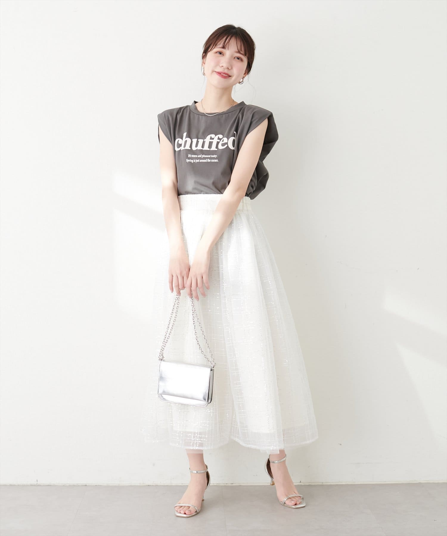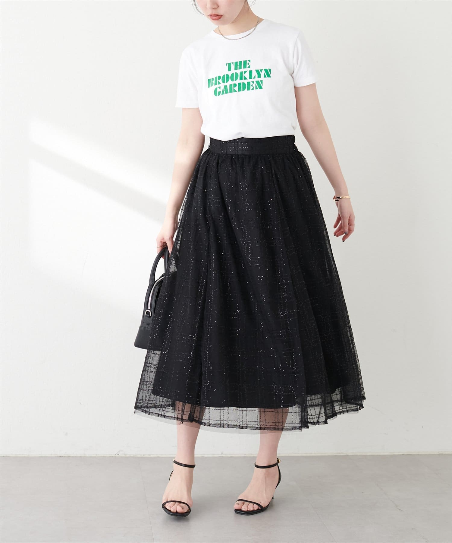 華やかなチュール素材はコーディネートに女性らしさをプラスし、全体を軽やかな印象に仕上げてくれます。