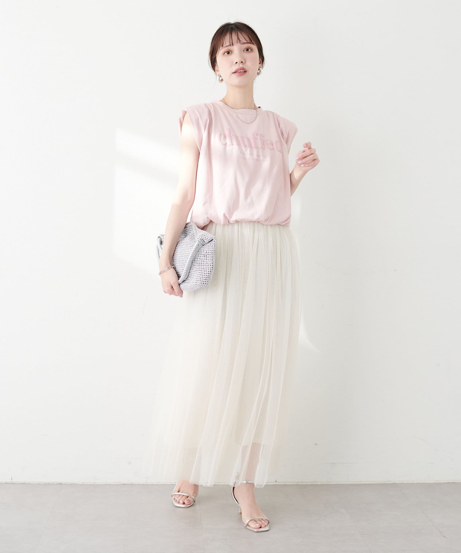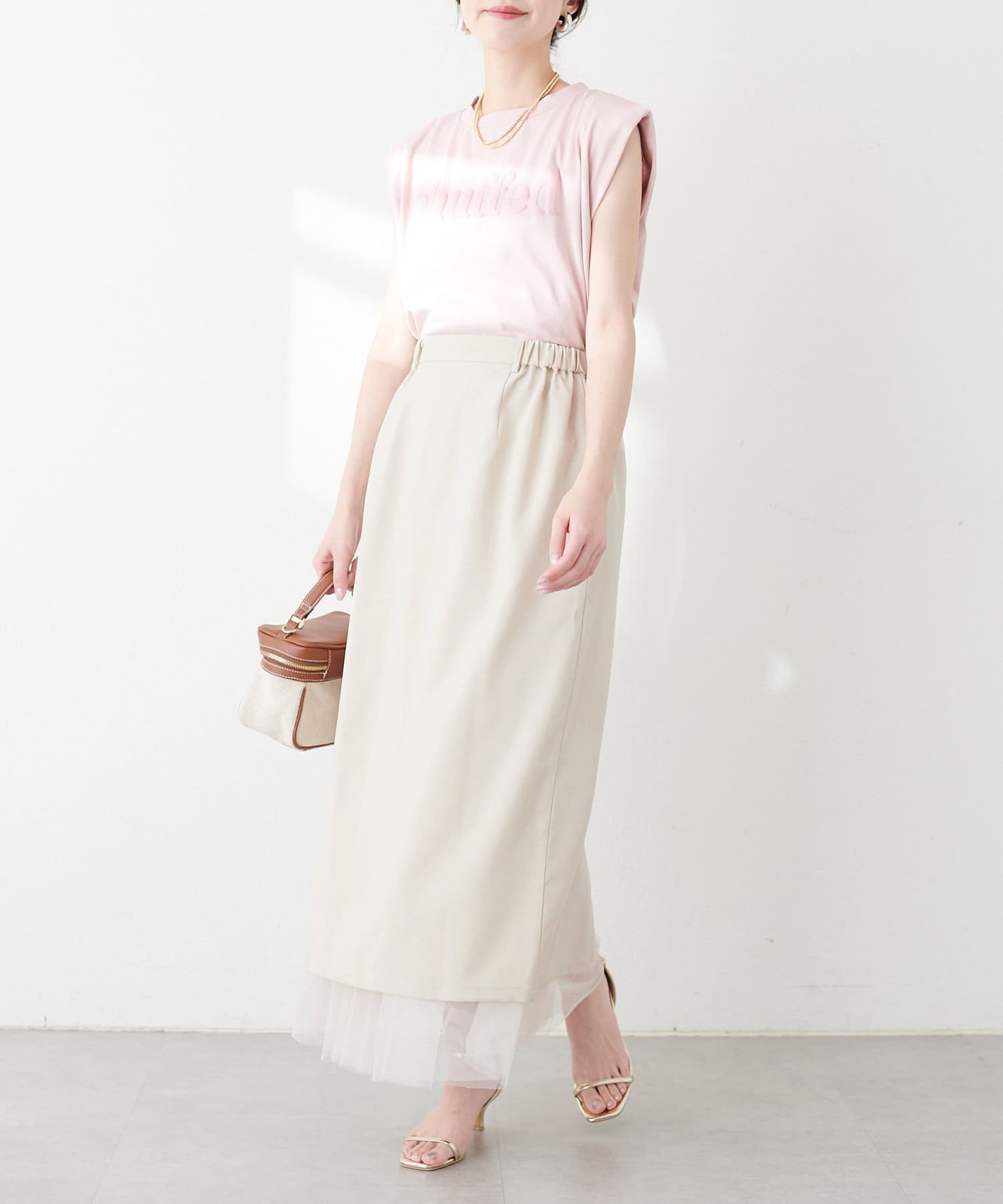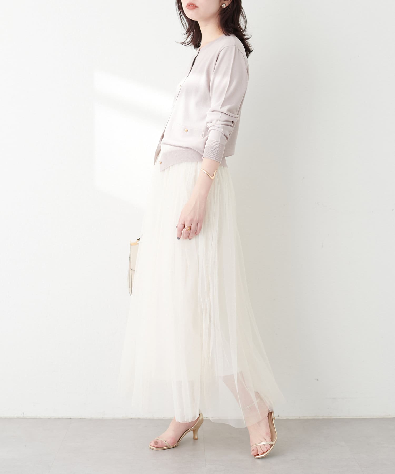 【骨格】 ナロー×チュールと着回し力が高く、どの骨格タイプでも使いやすいアイテムです。 チュールが苦手な方でもナロースカートと一緒にレイヤードすることで広がりが抑えられます。