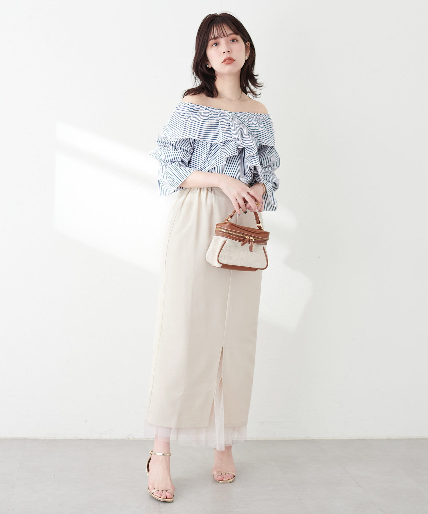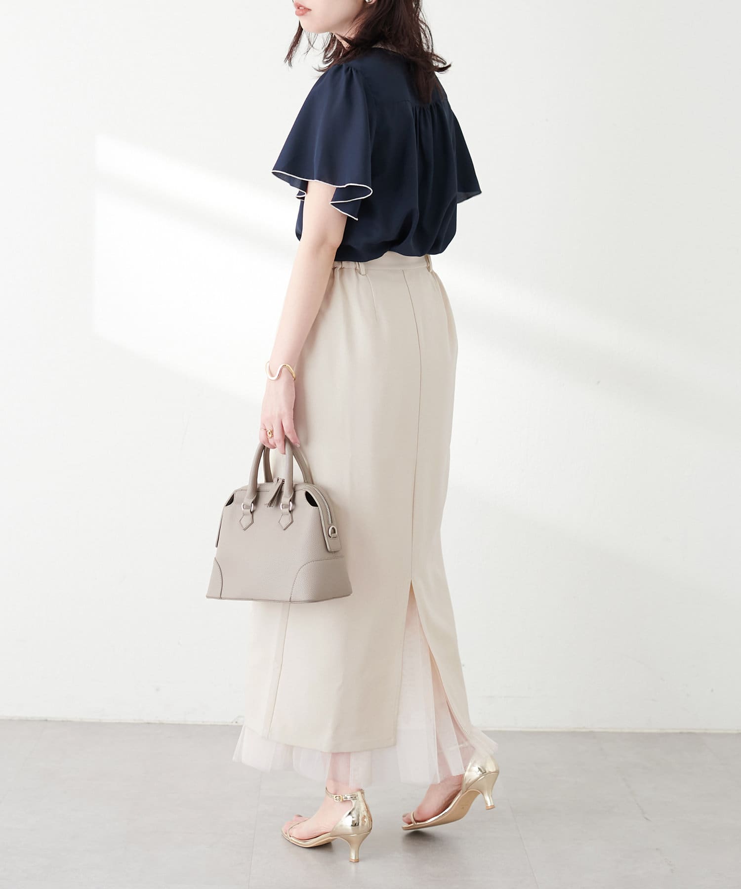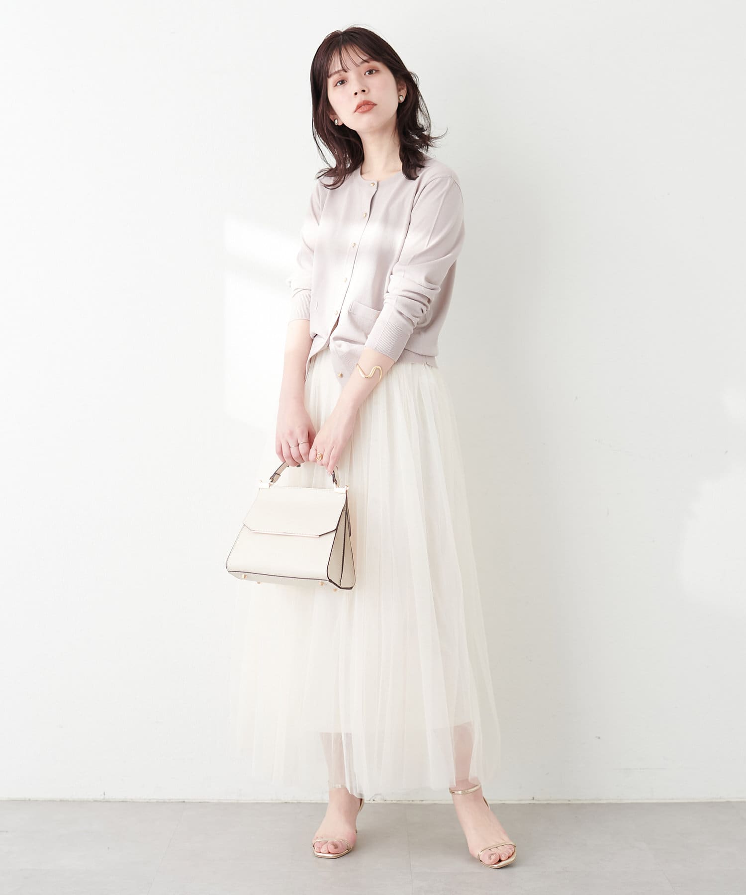 【骨格】 ナロー×チュールと着回し力が高く、どの骨格タイプでも使いやすいアイテムです。 チュールが苦手な方でもナロースカートと一緒にレイヤードすることで広がりが抑えられます。