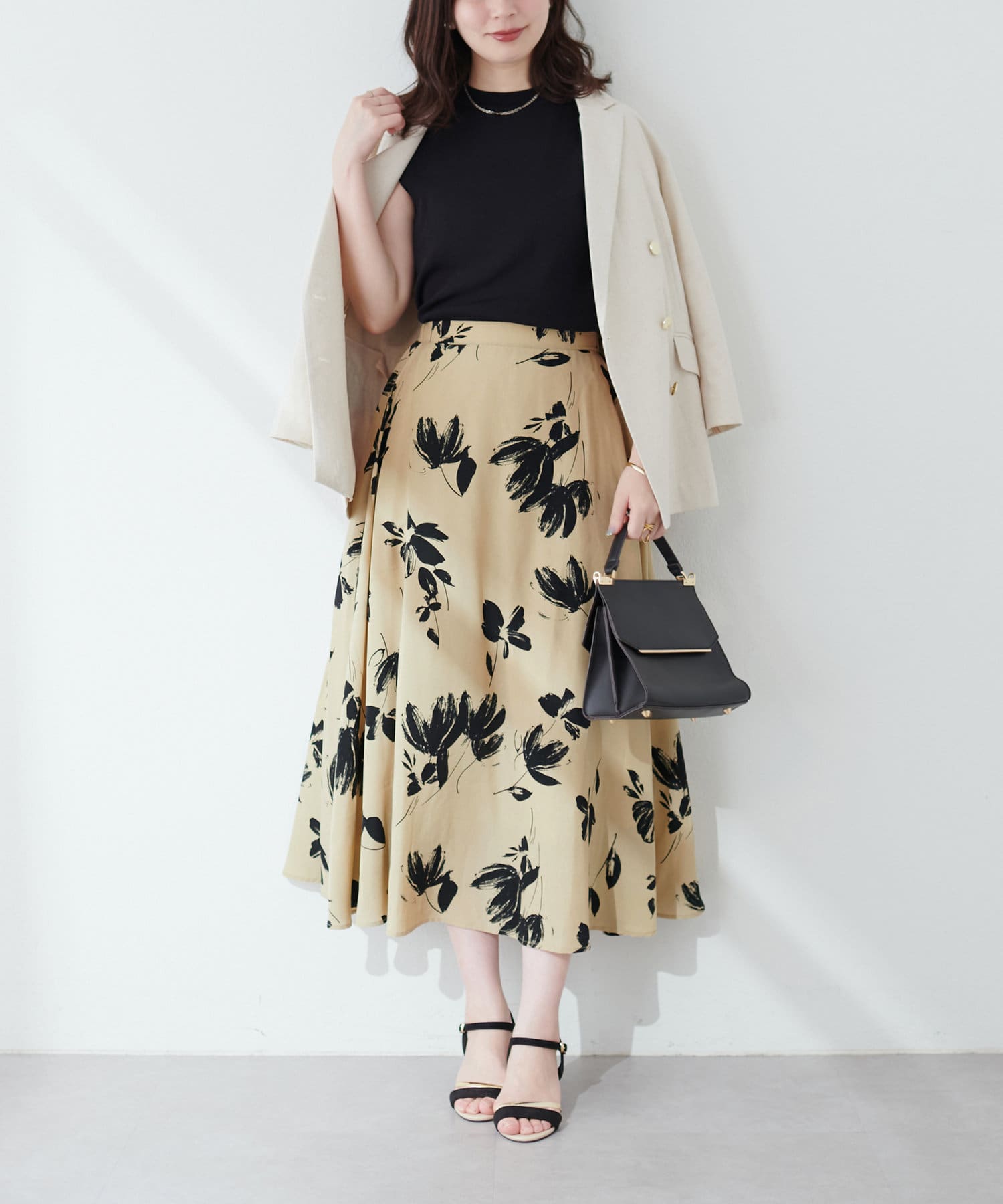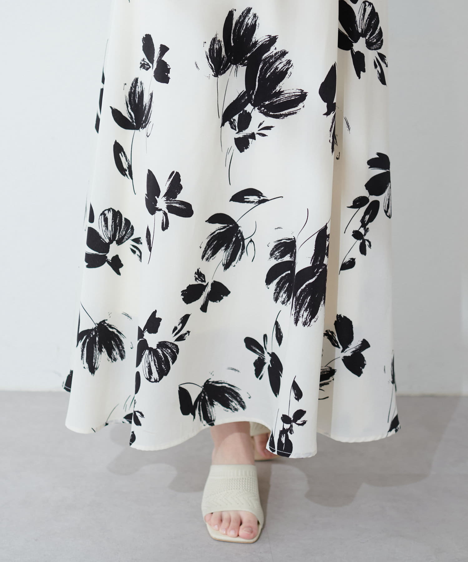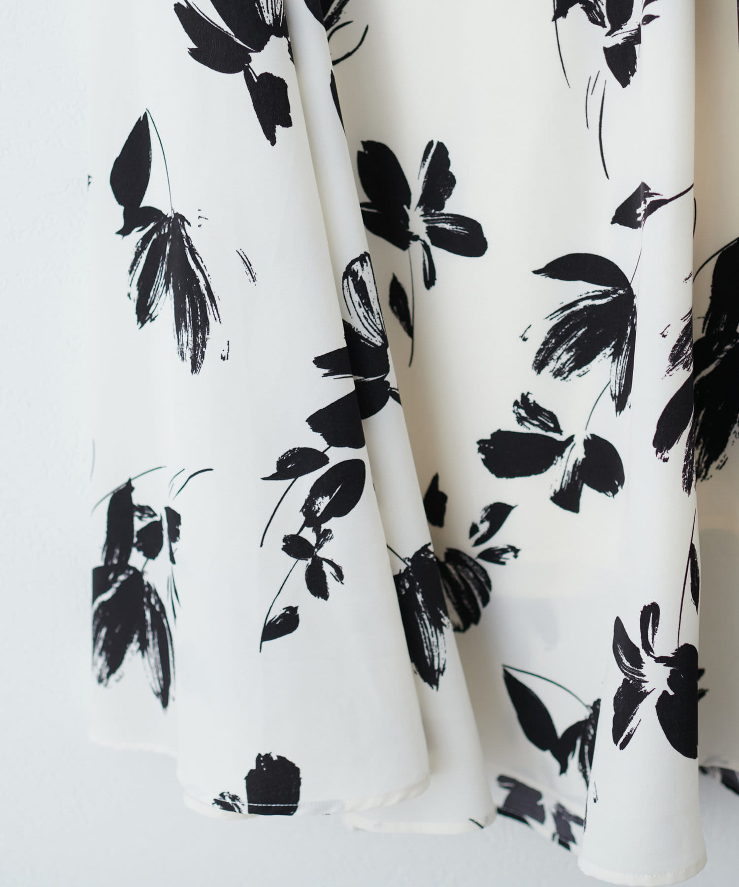 モノトーンの大きな花柄が印象的で大人っぽく上品に魅せてくれます。