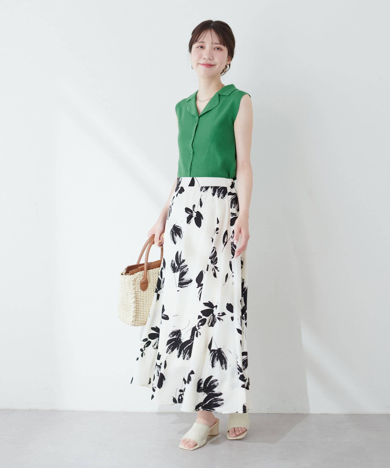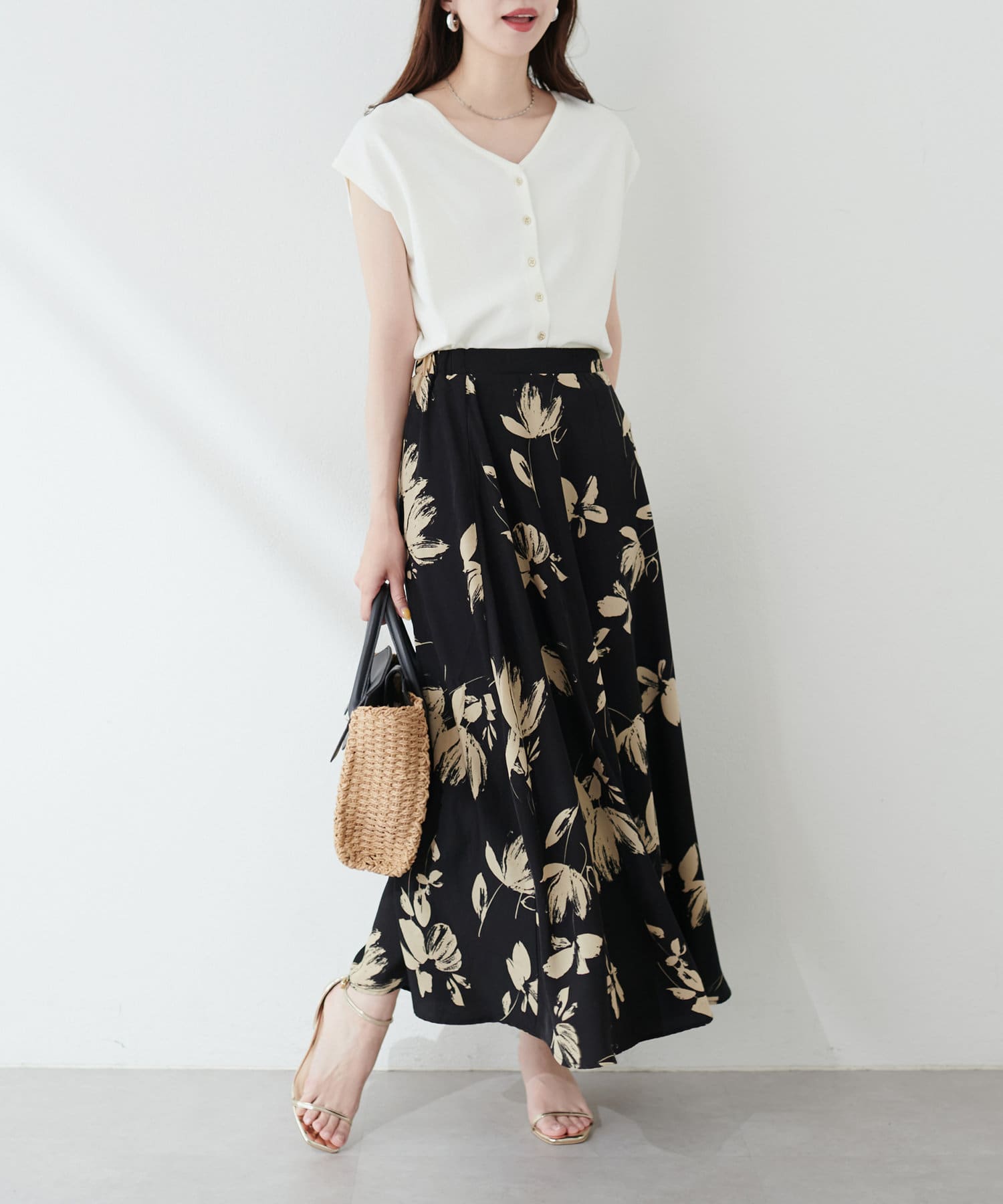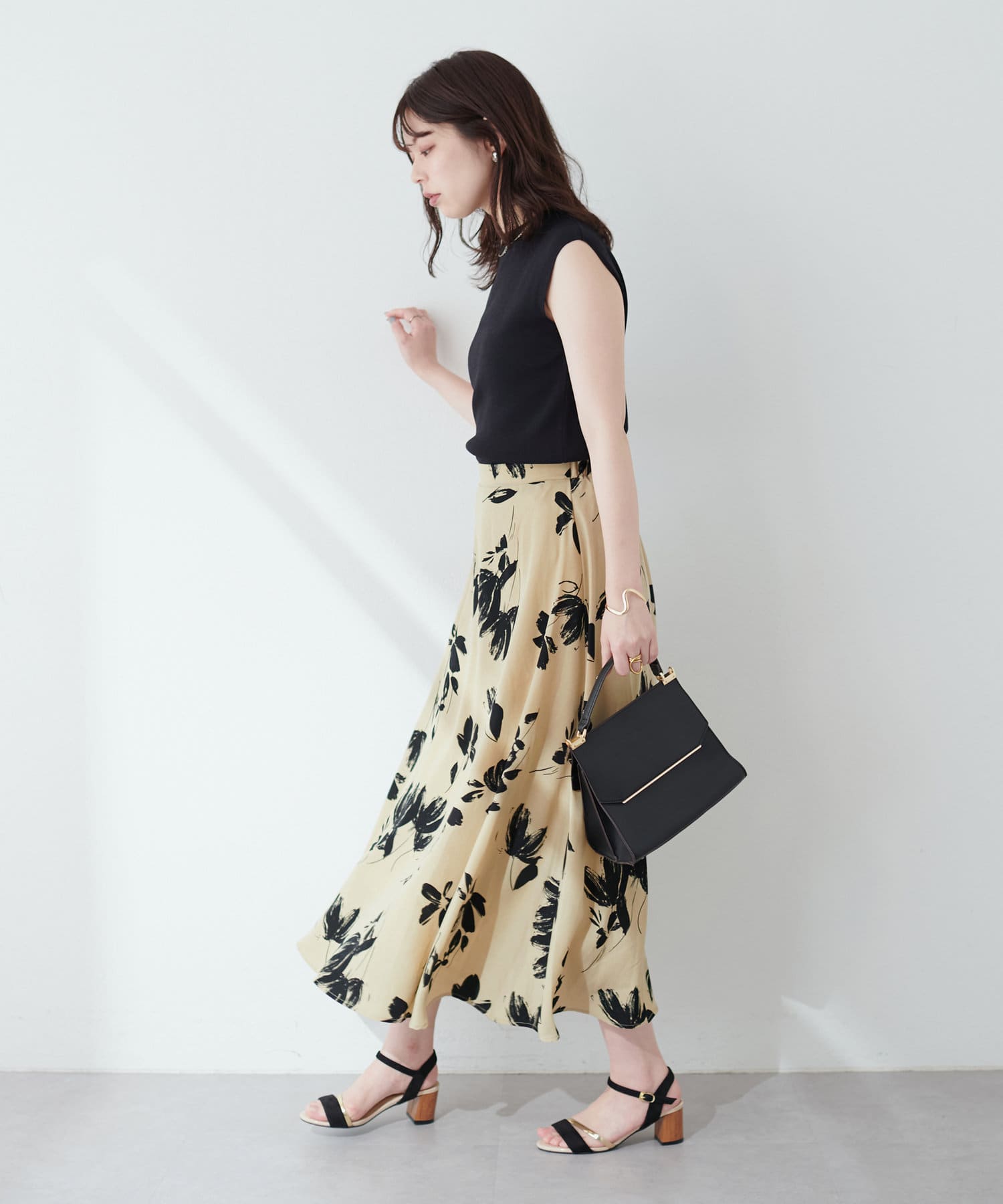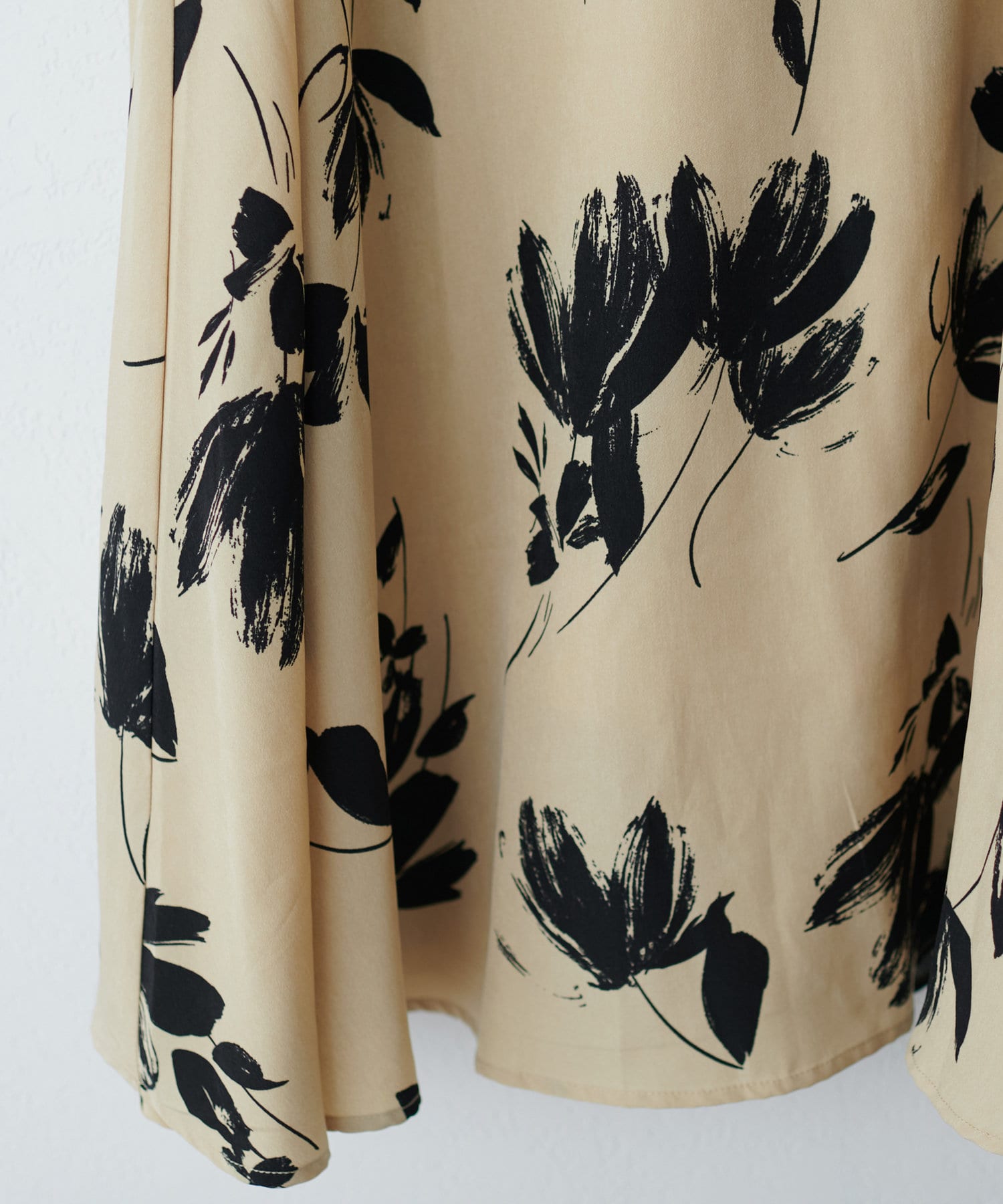 モノトーンの大きな花柄が印象的で大人っぽく上品に魅せてくれます。