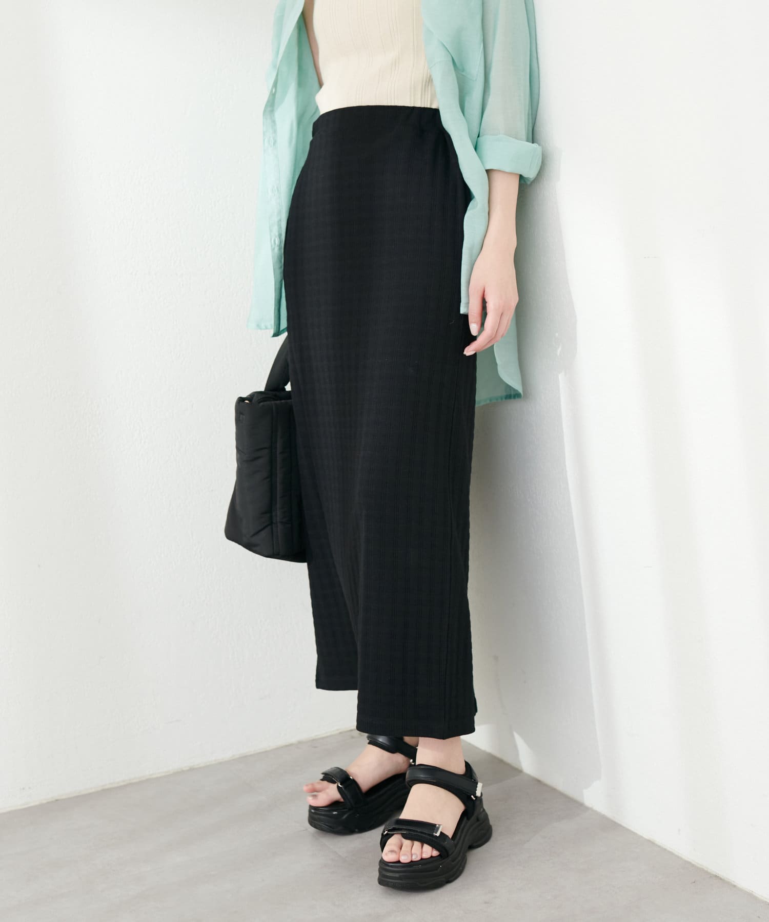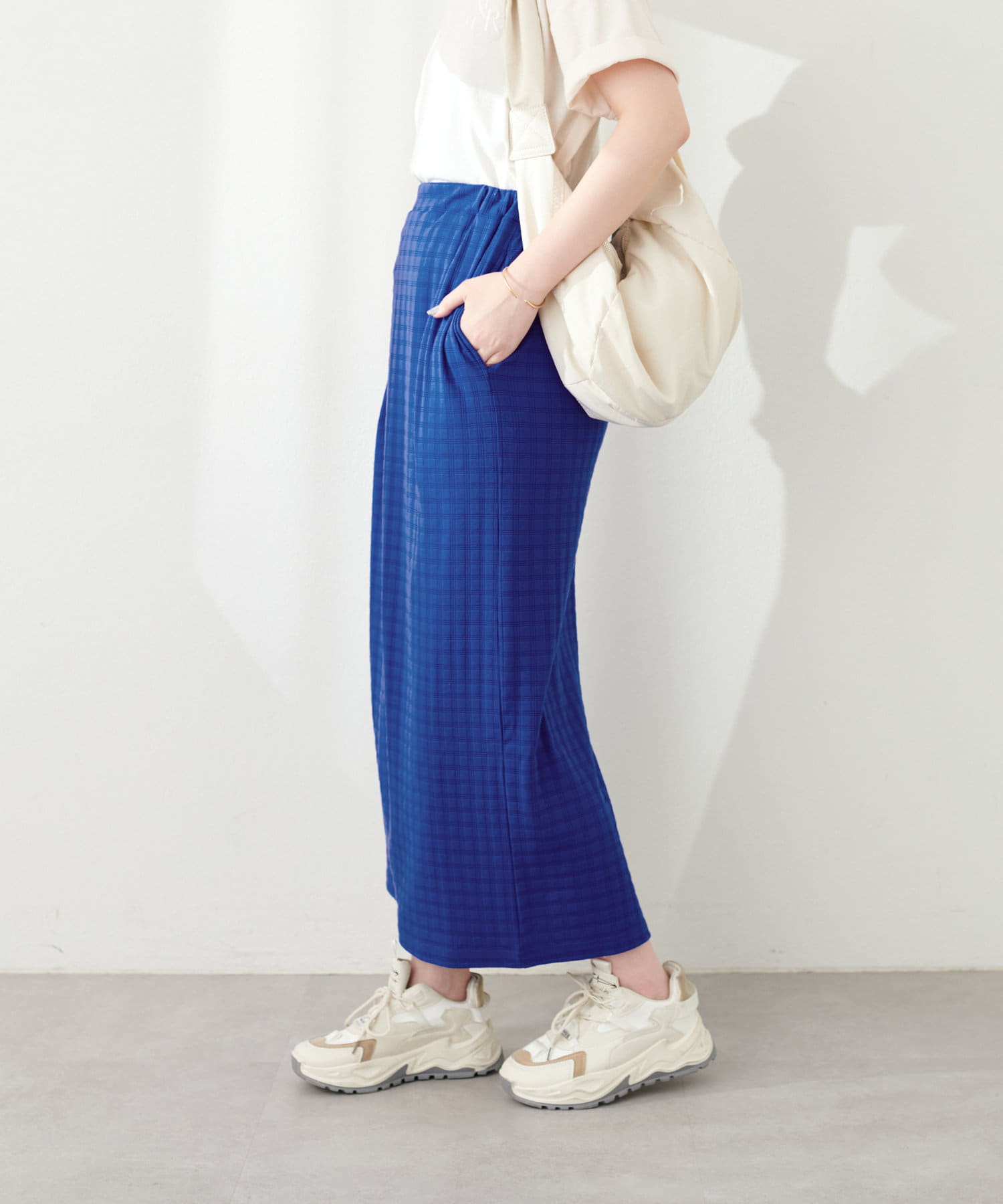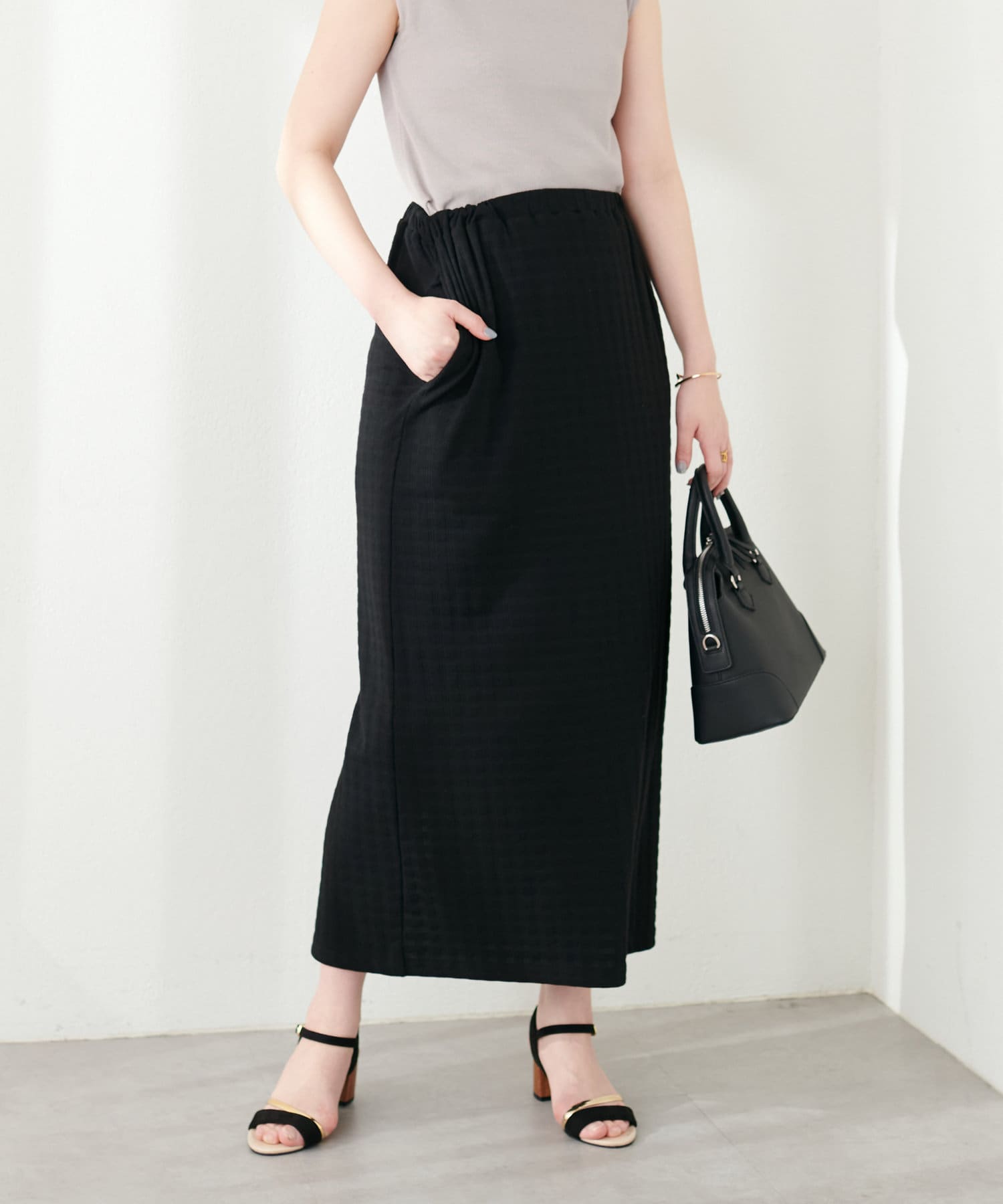 ストレッチ性に優れ伸びの良い生地を使用し、穿き心地にこだわったスカート。