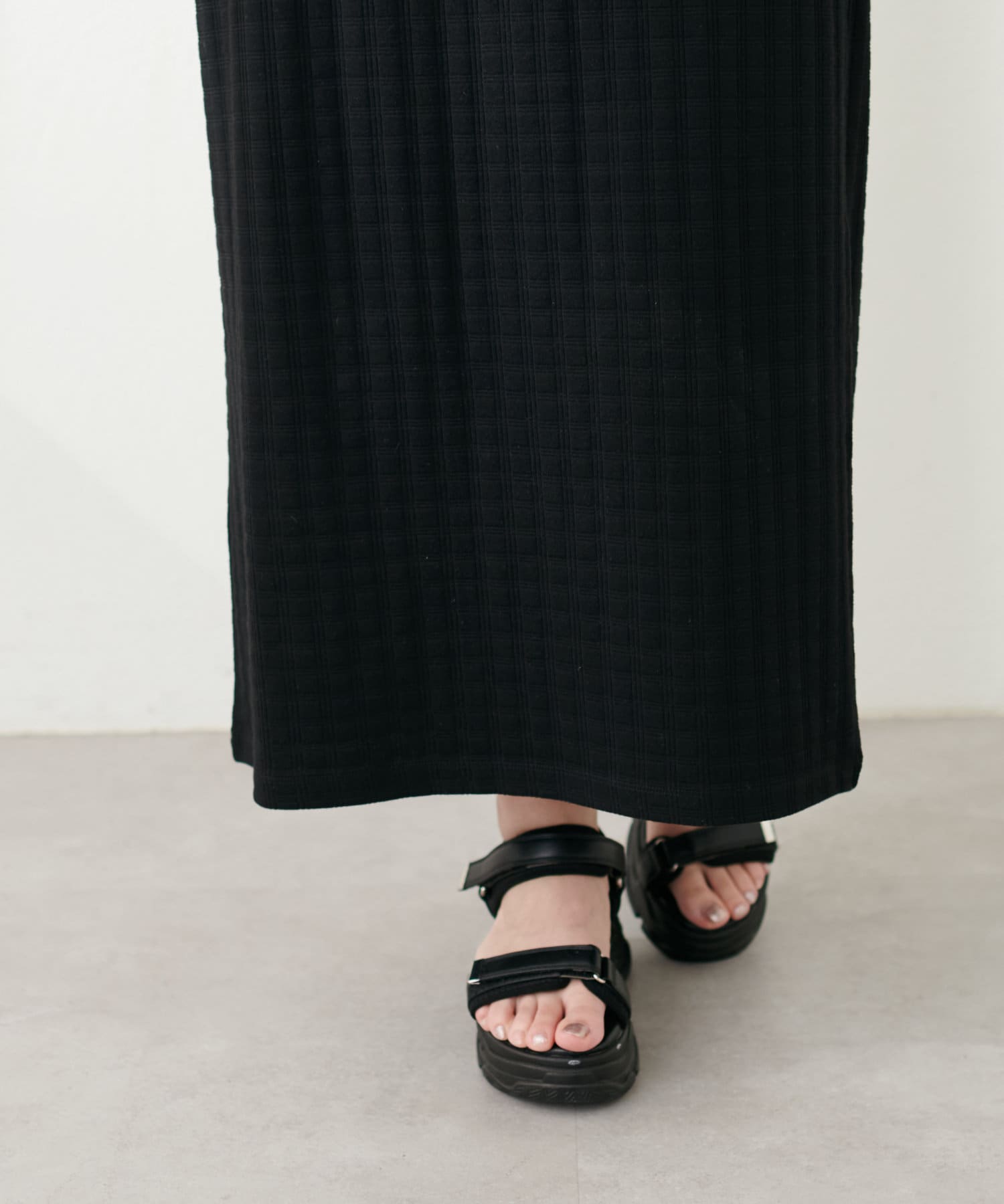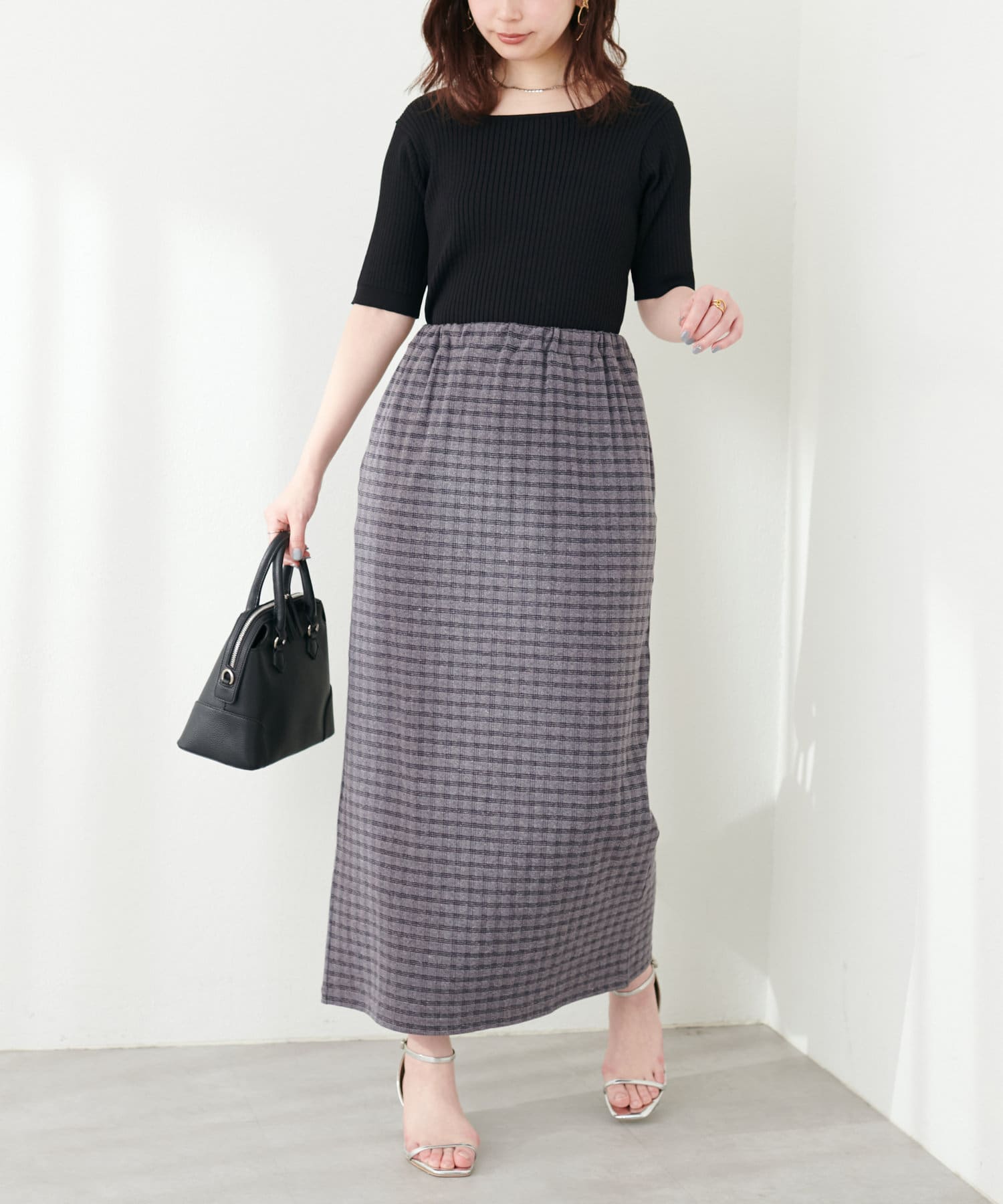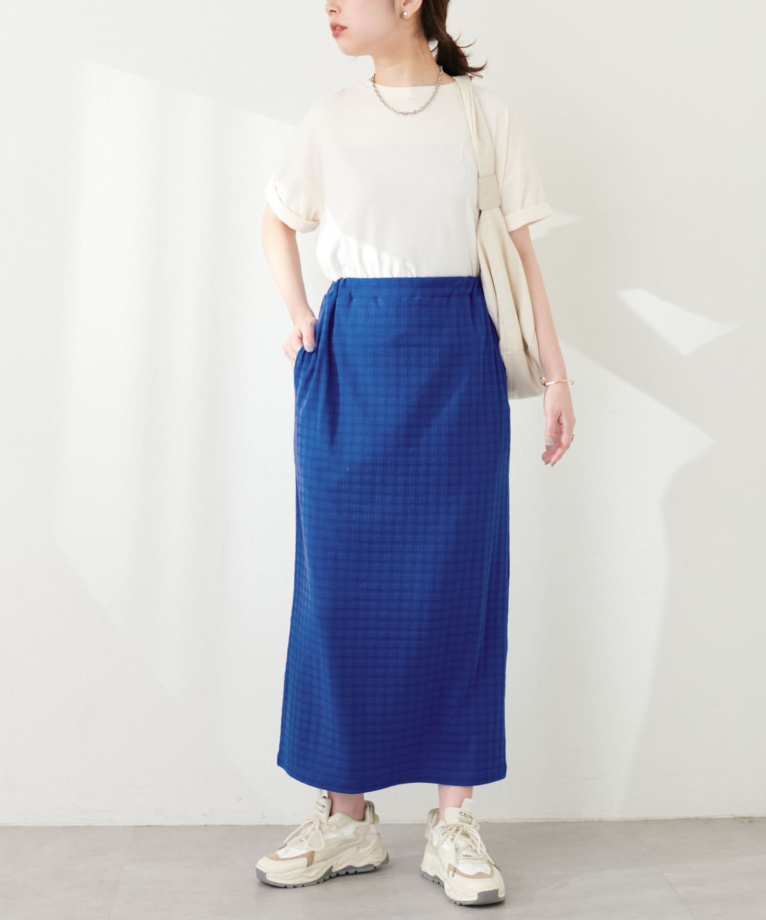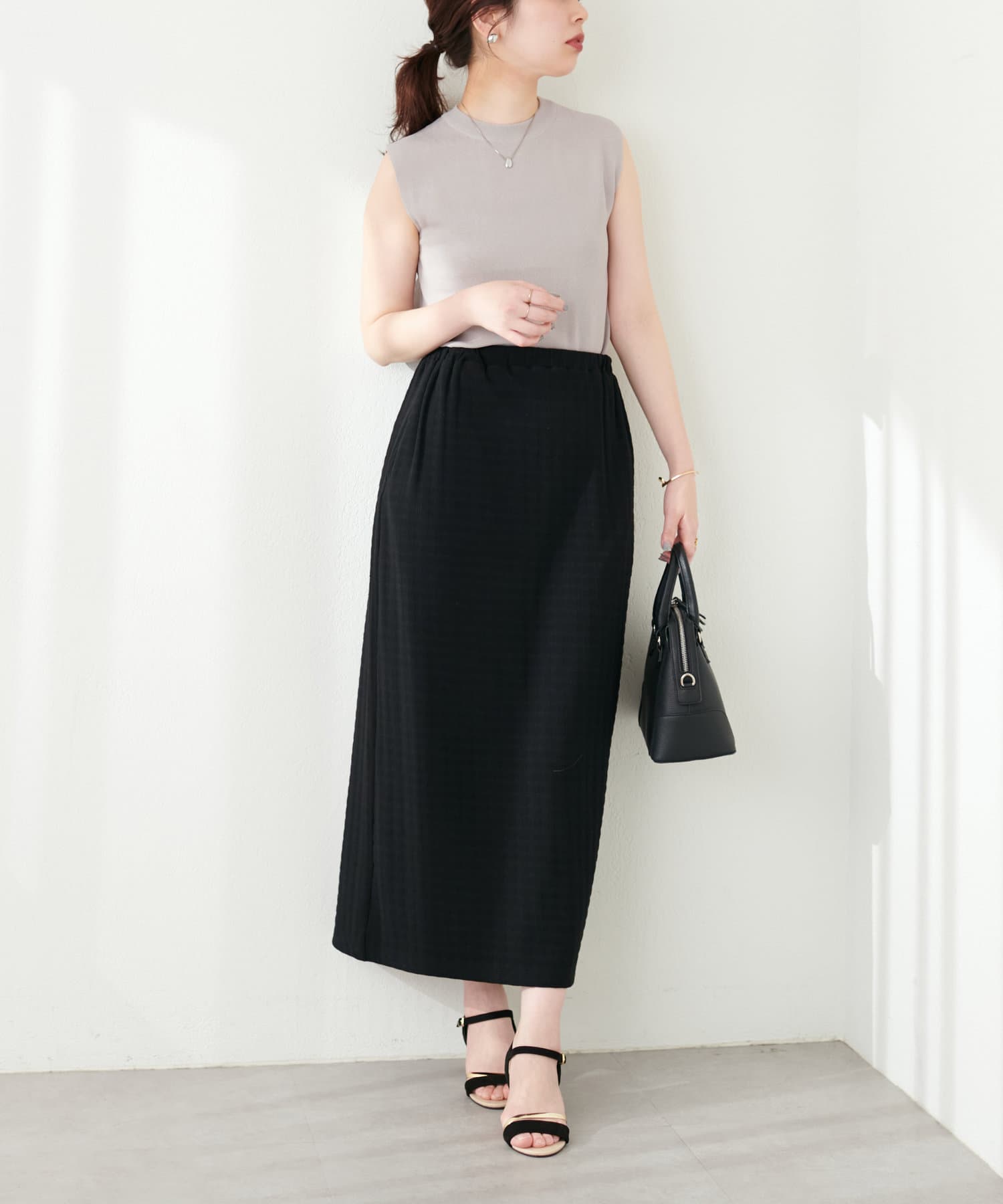 ストレッチ性に優れ伸びの良い生地を使用し、穿き心地にこだわったスカート。