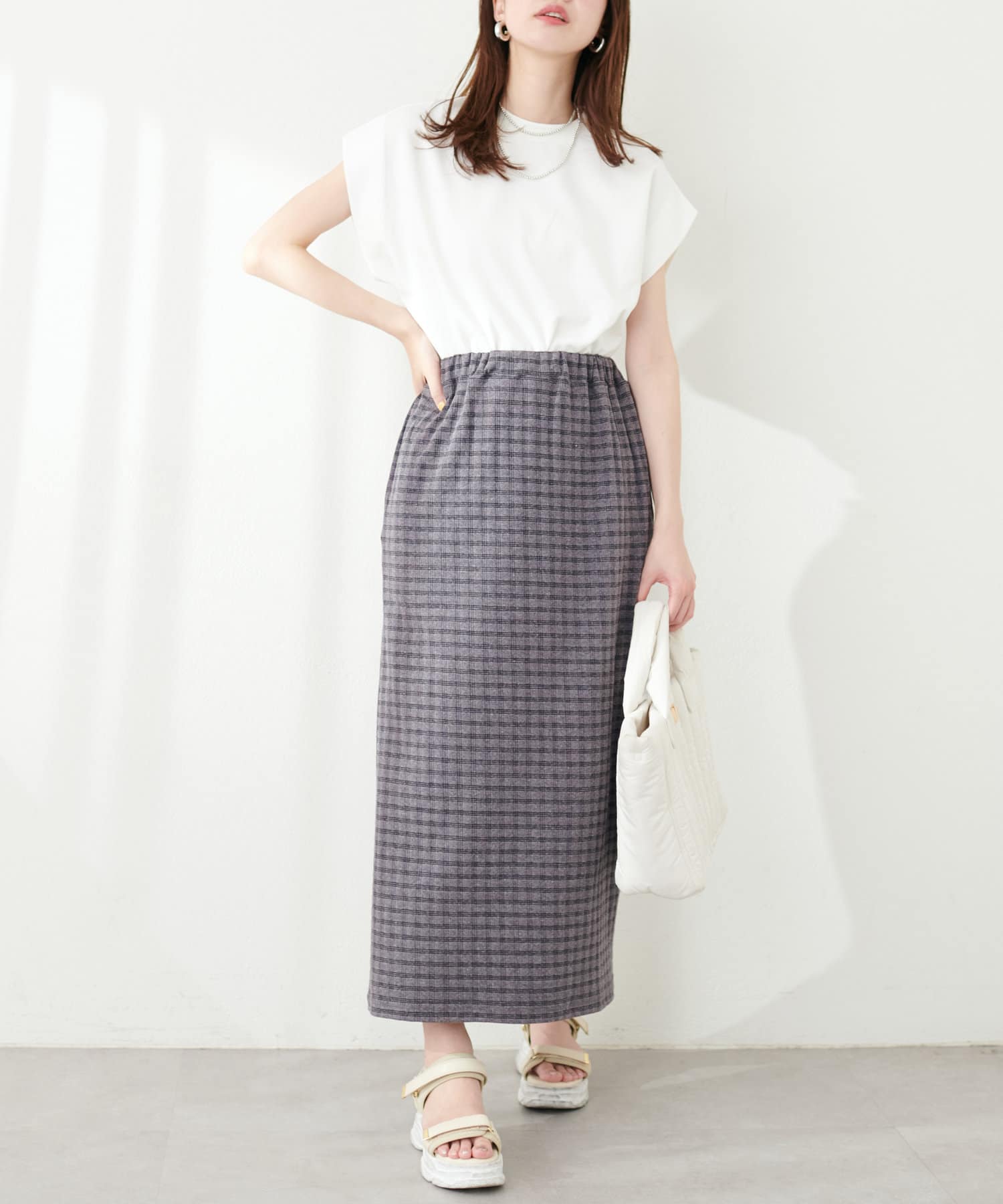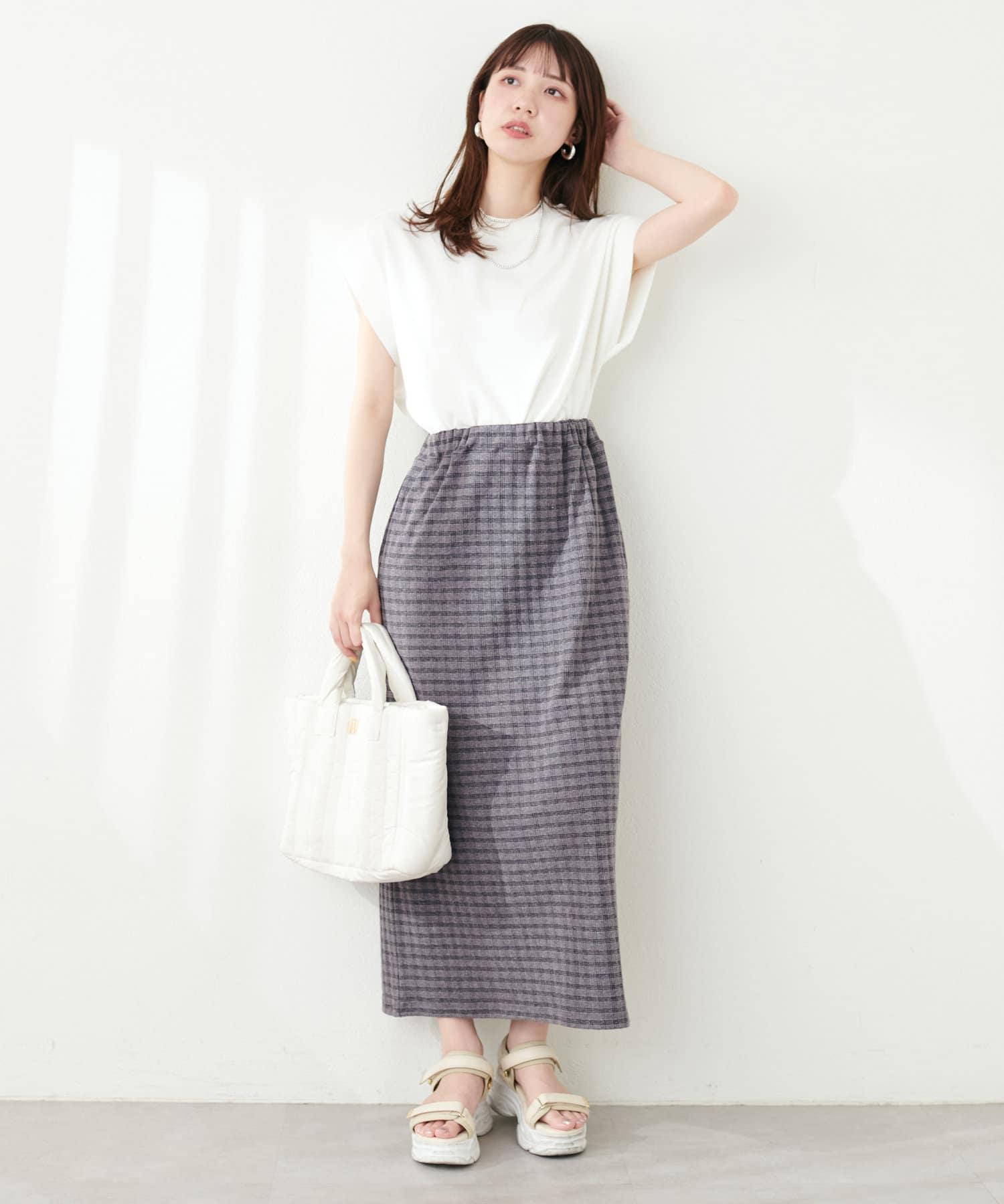 ストンと落ちてすっきりとした印象のIラインシルエットながら、ボディラインを拾いにくくスタイルアップが叶うのが魅力。