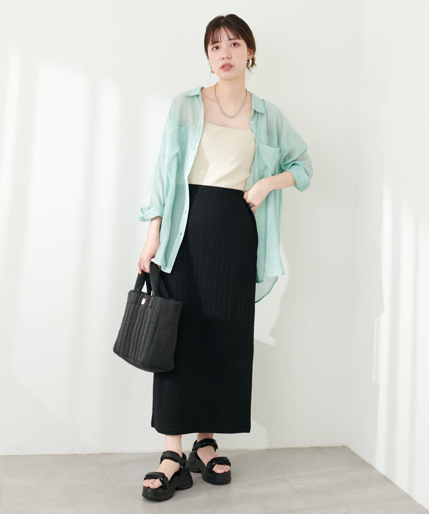 主役級で存在感あるアイテムなので、シンプルなブラウスやシャツ、カジュアルにカットソーを合わせてスカートを主役にしたコーディネートがおすすめ。