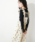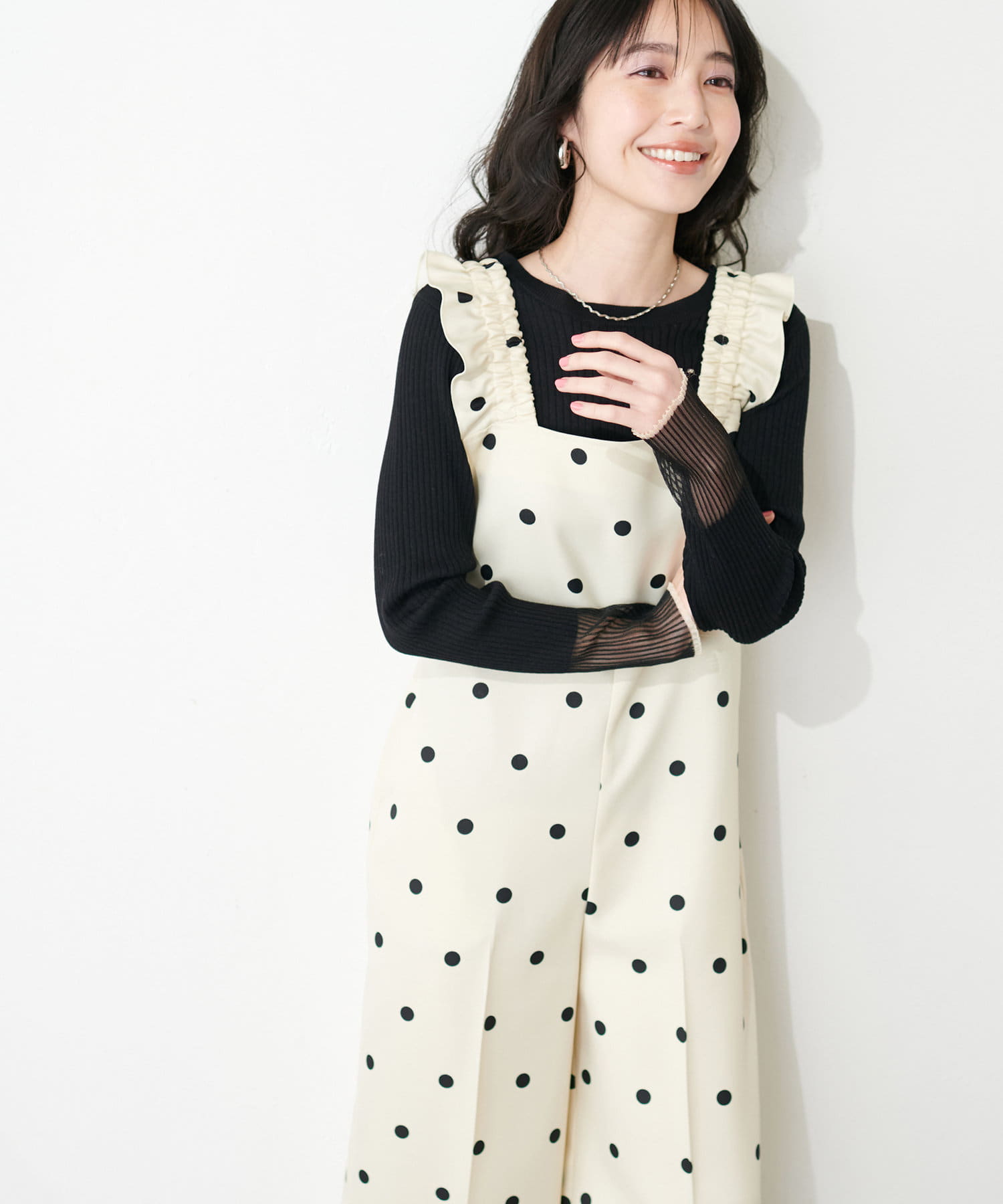 肩ヒモのフリルが印象的なので、インナーはシンプルなアイテムを選ぶだけできまります。