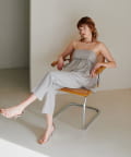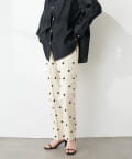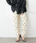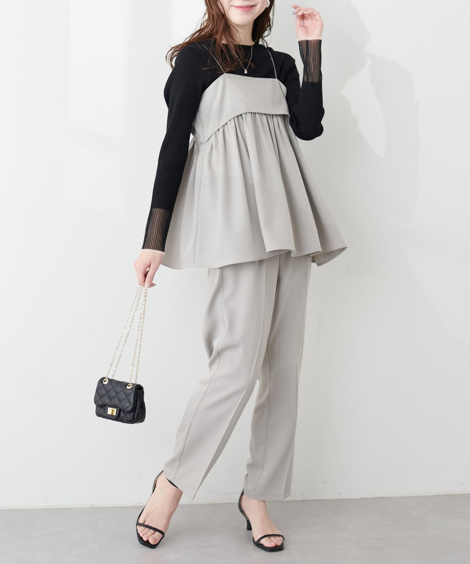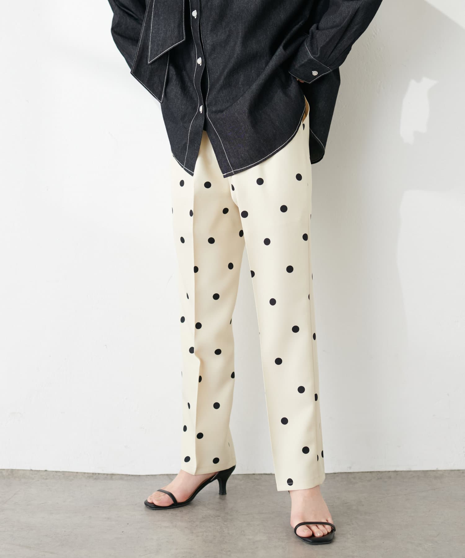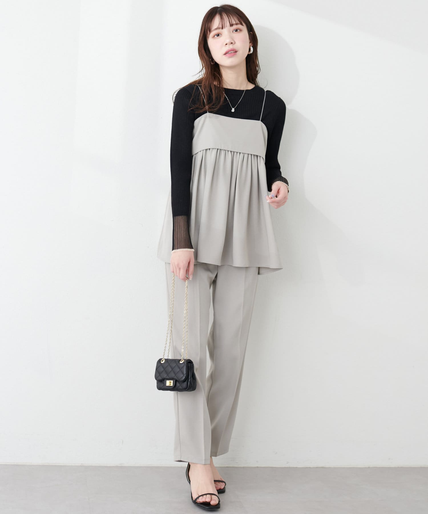 ボディラインを拾いにくくストンと落ちるシルエットが特徴のきれいめパンツ。