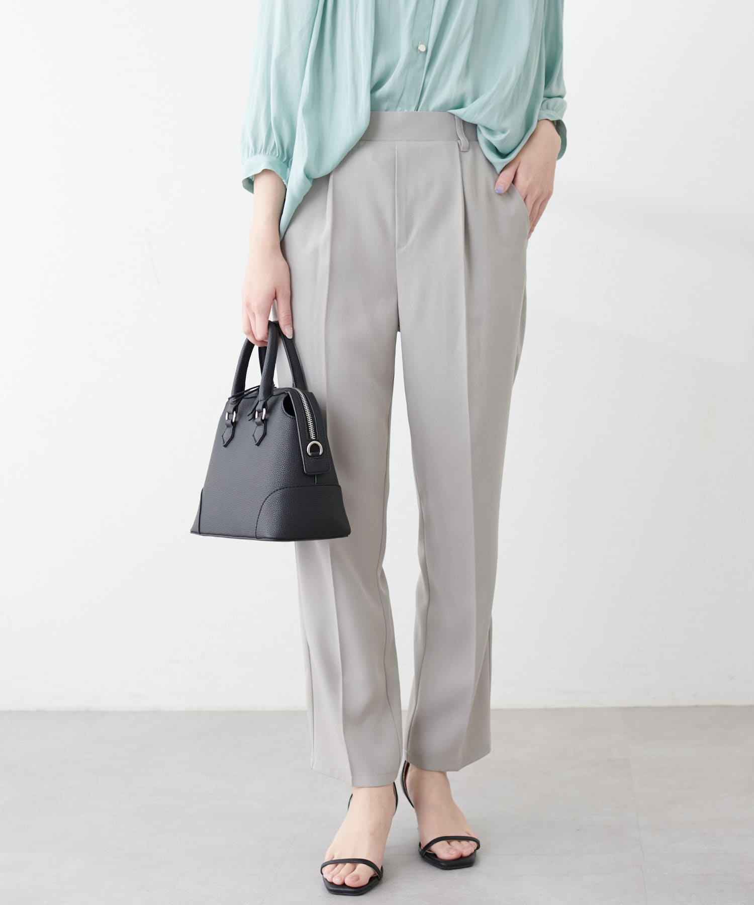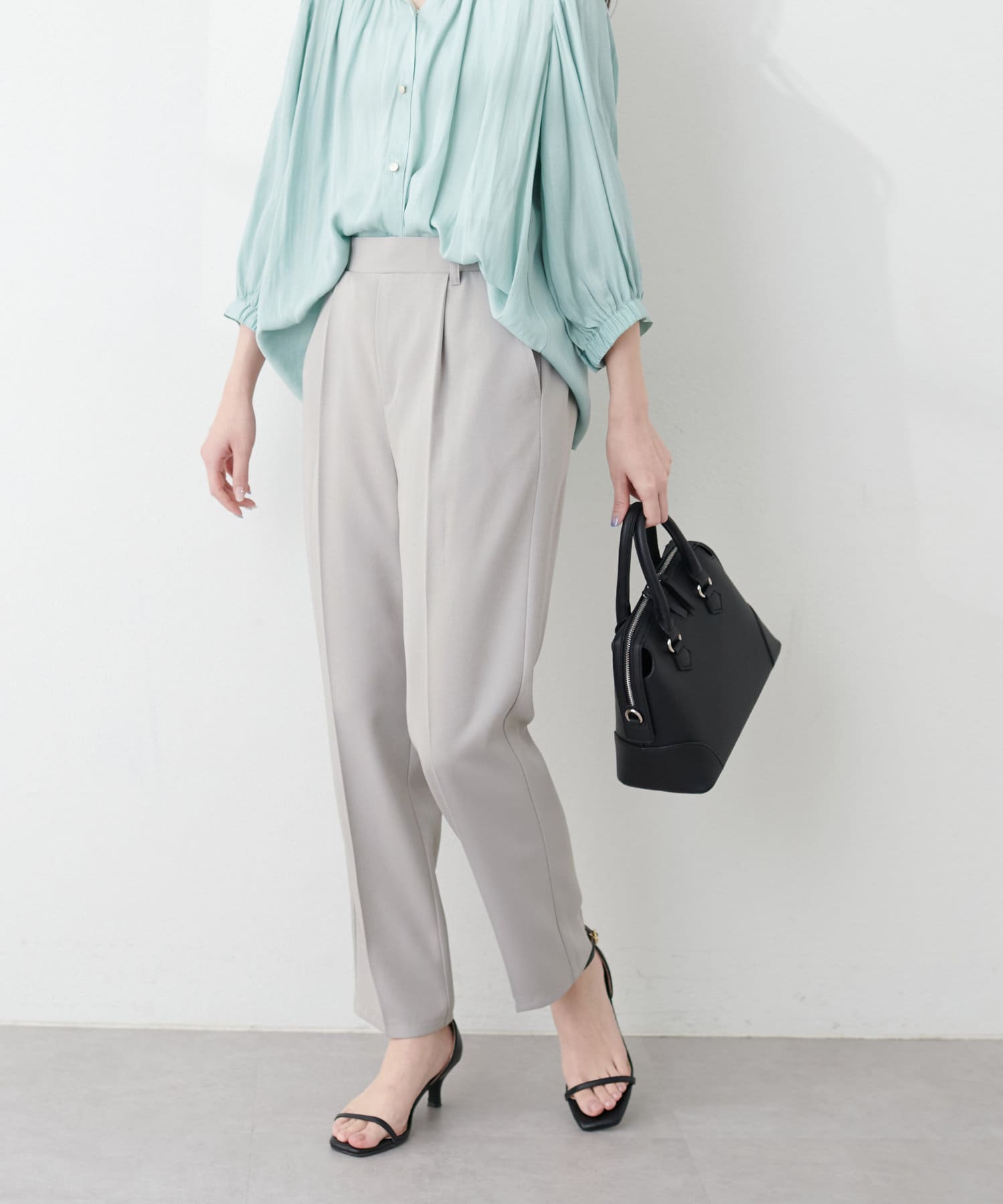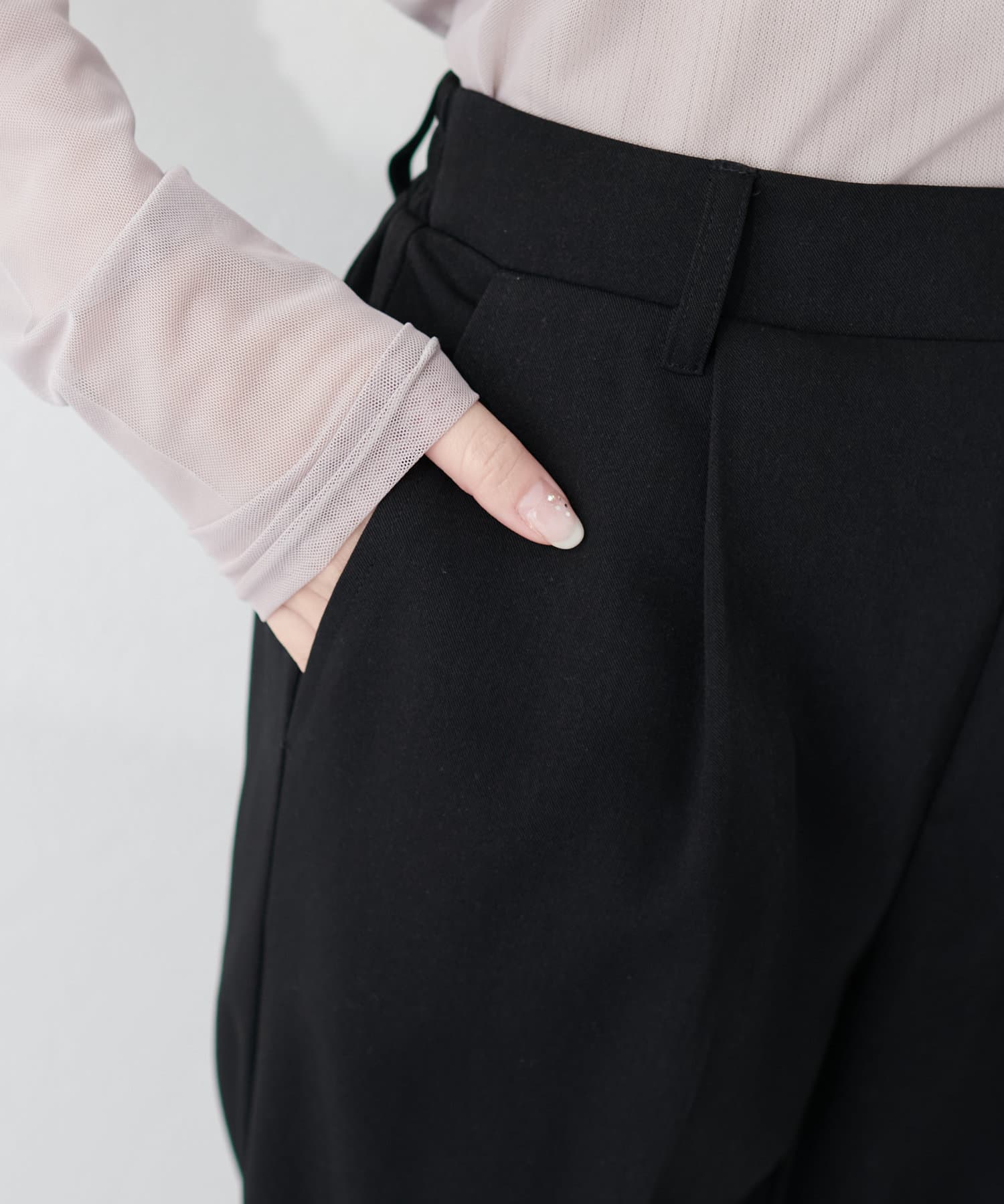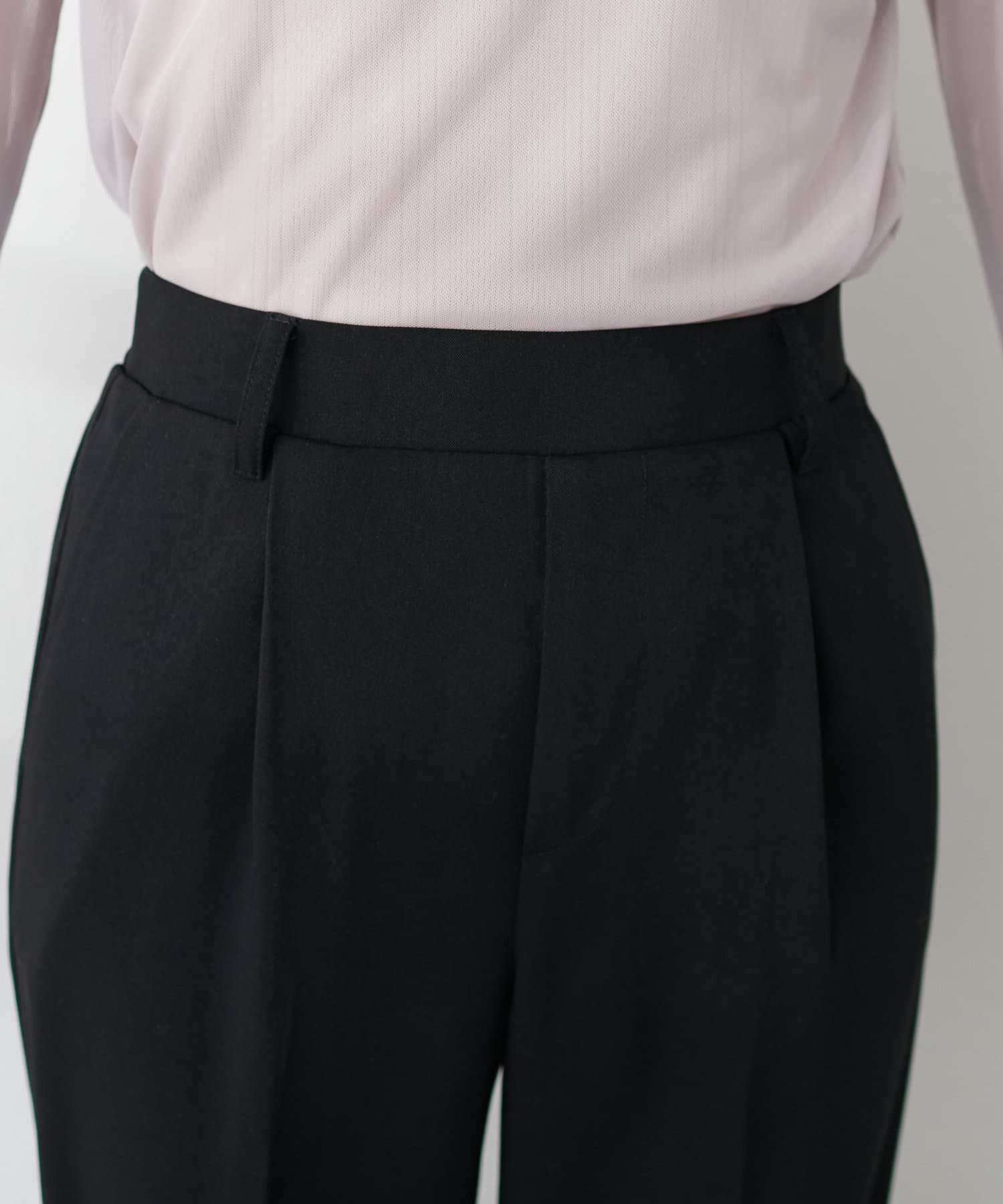 存在感のあるタックとセンタープレスが縦ラインを強調し、スタイルアップ効果が期待できます。
