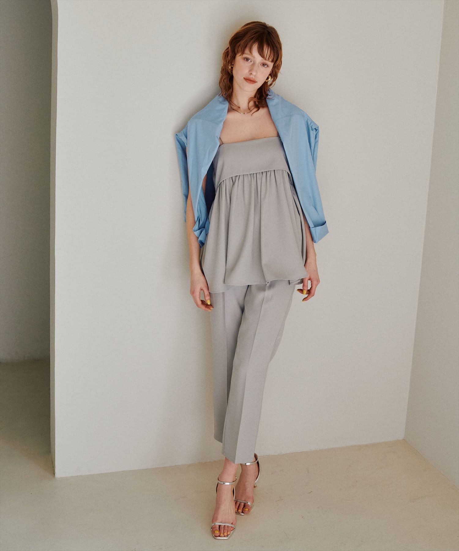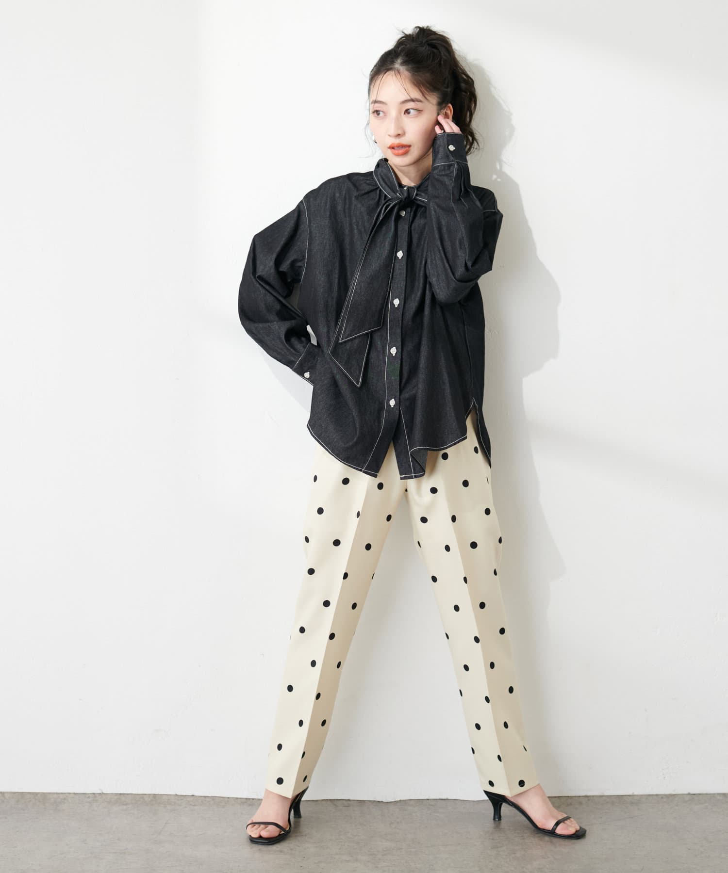 シャツやブラウス、ハイゲージのニットと合わせればオフィスシーンでも活躍するパンツ。