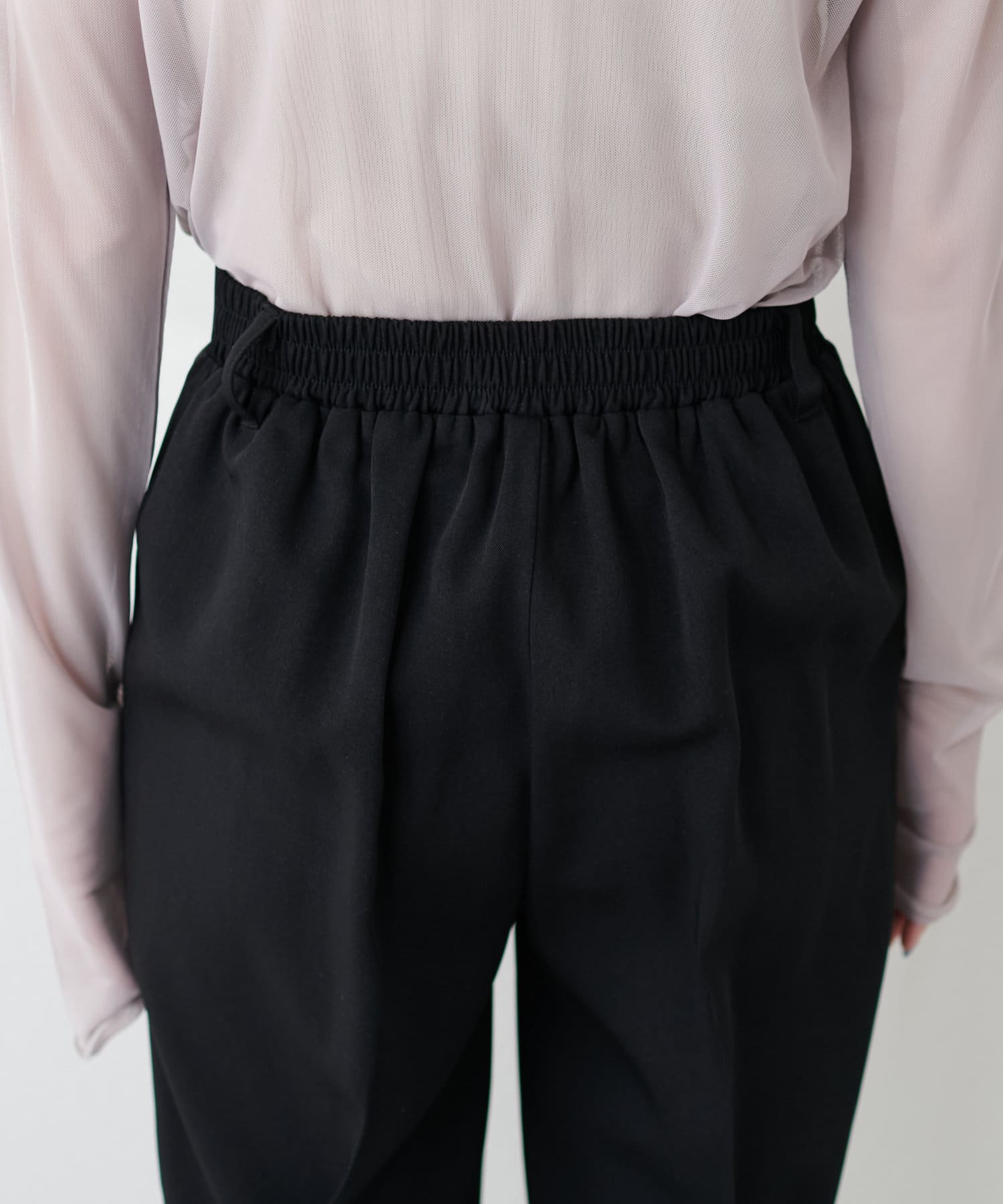 ウエストはすっきりきれい見えしながらも、後ろにゴムを使用しているので伸縮性がありリラックス感のある着心地。
