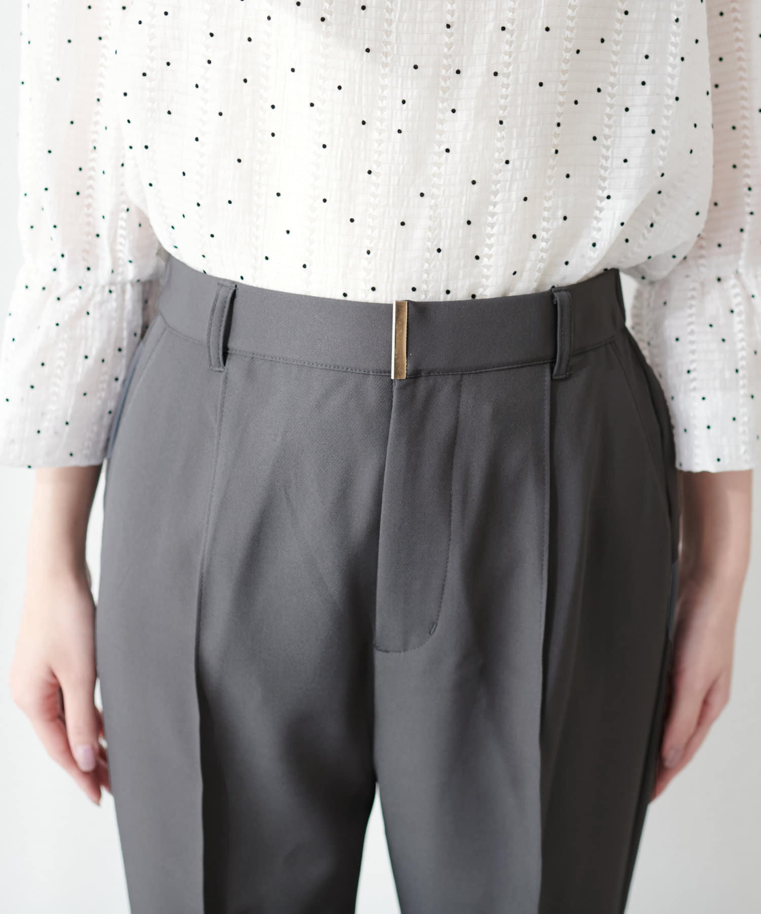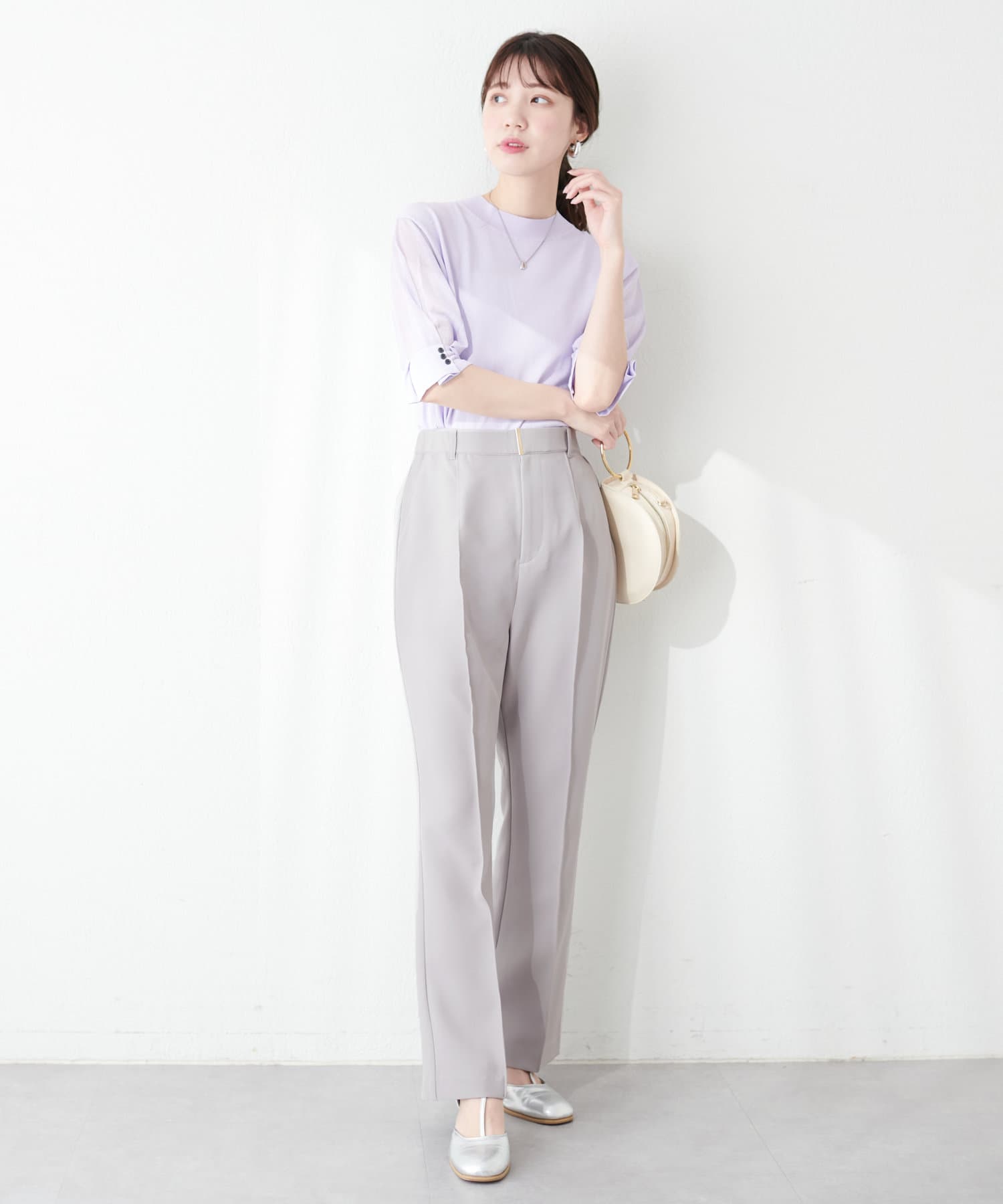 お仕事パンツとしてもオススメですが、Tシャツやカジュアルなアウターで合わせるとカジュアルなテイストが得意な方も着こなしがしやすいです。