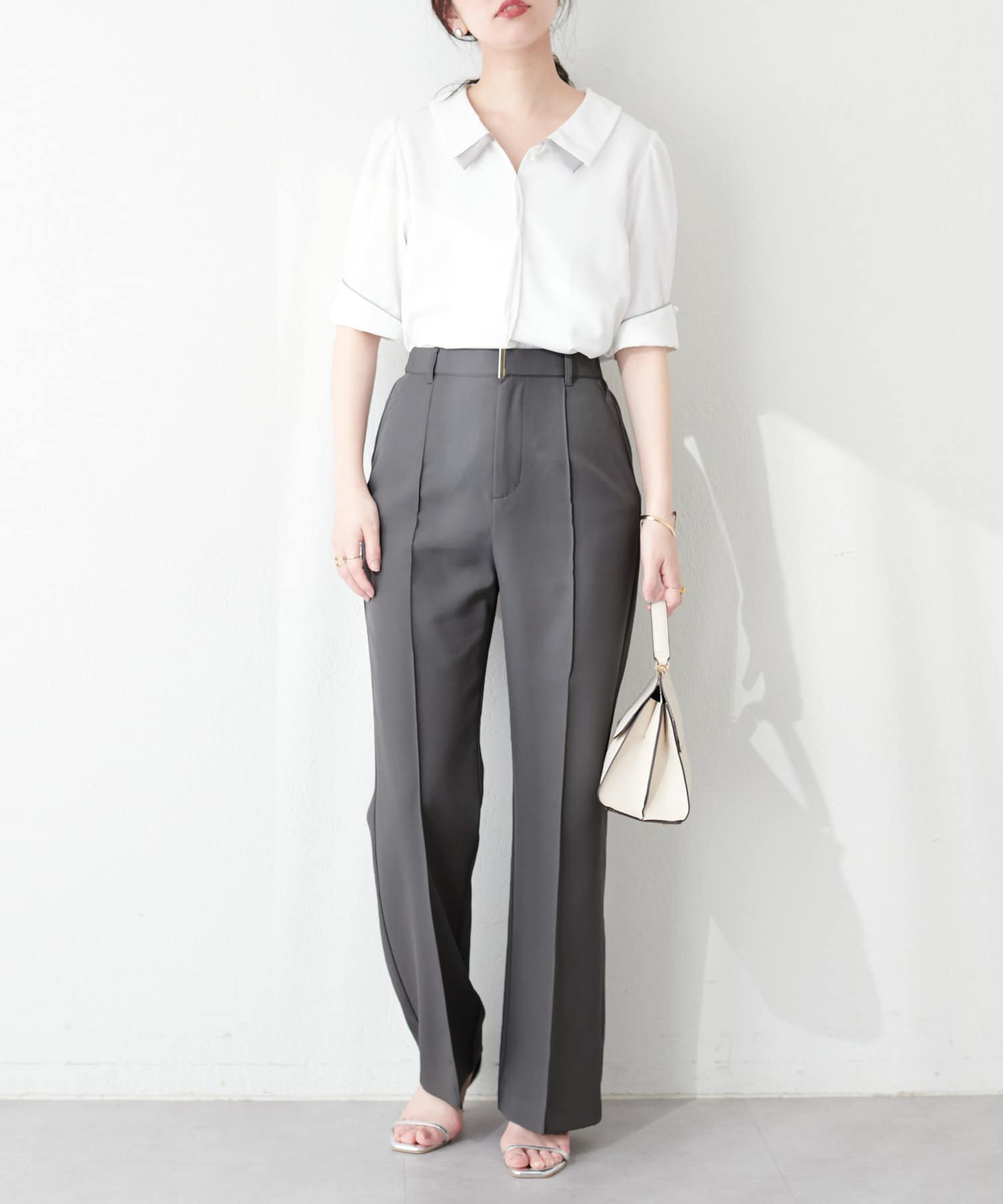 オフィスで活躍する、ハイウエストキレイめパンツ