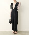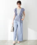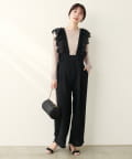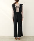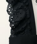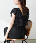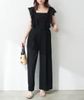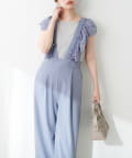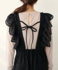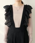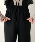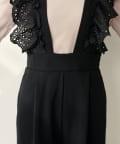 大胆にあしらわれたコットンレースのフリルが目を引くサロペット。