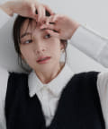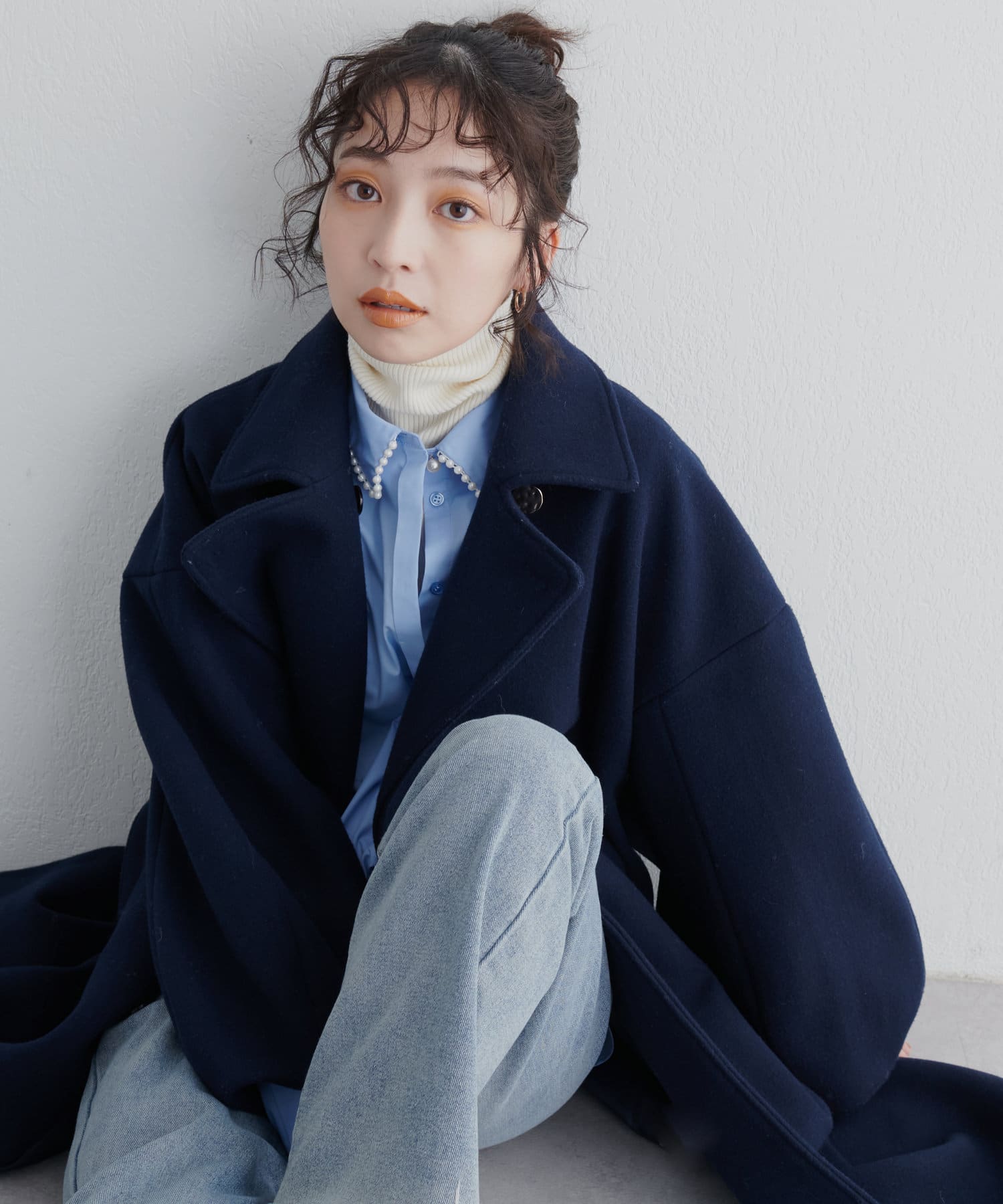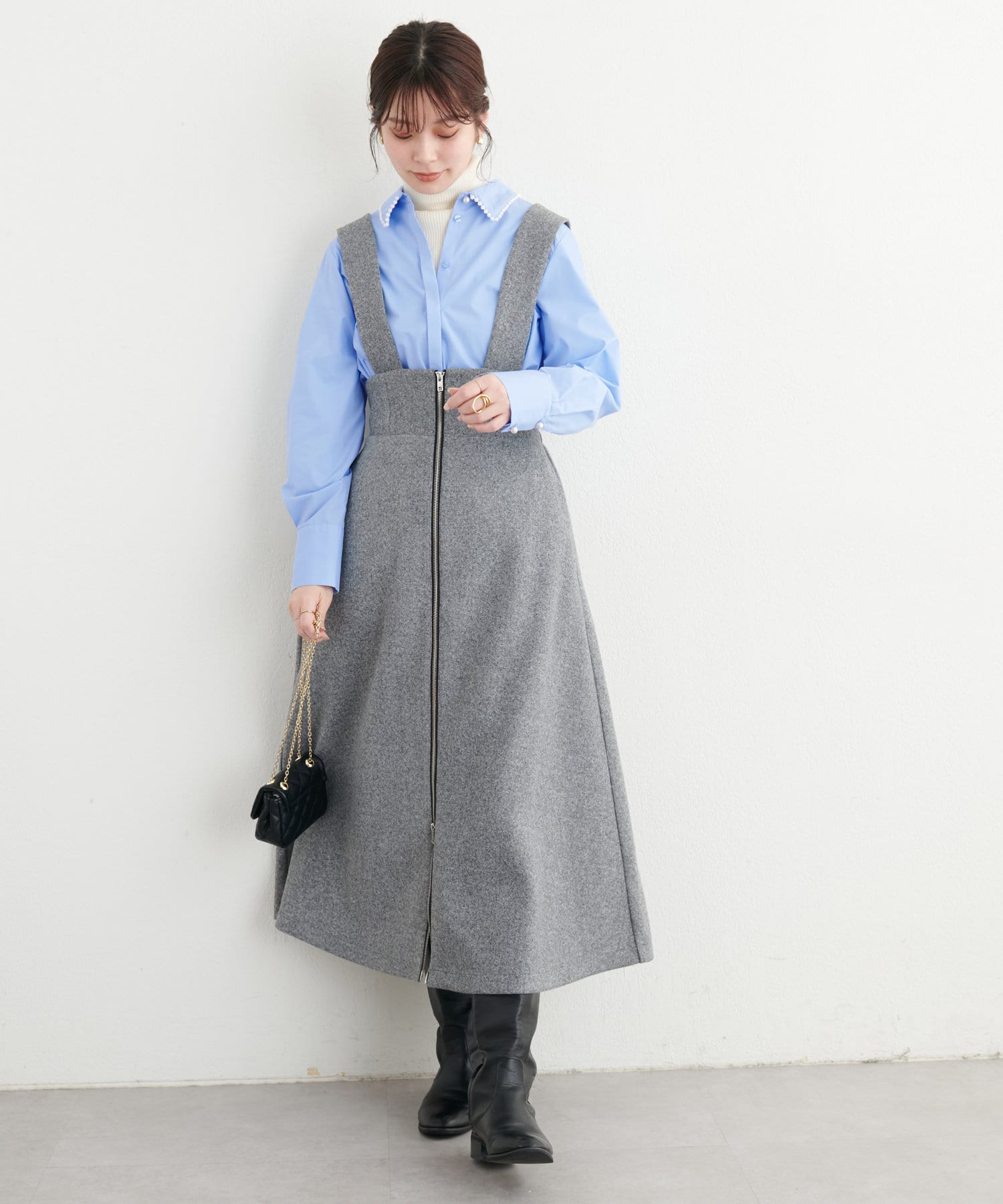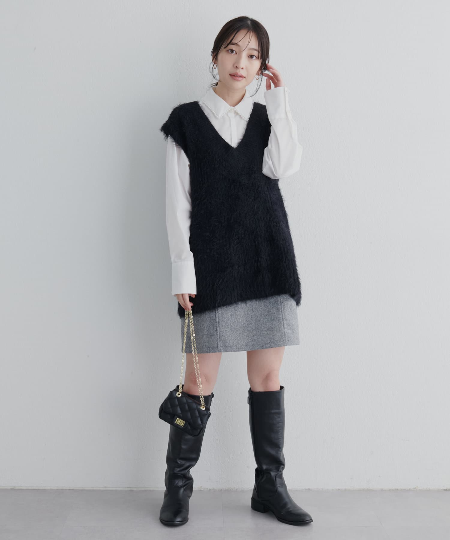 1枚ではもちろん、レイヤードで衿ぐりのパールを覗かせるスタイルもおすすめ。