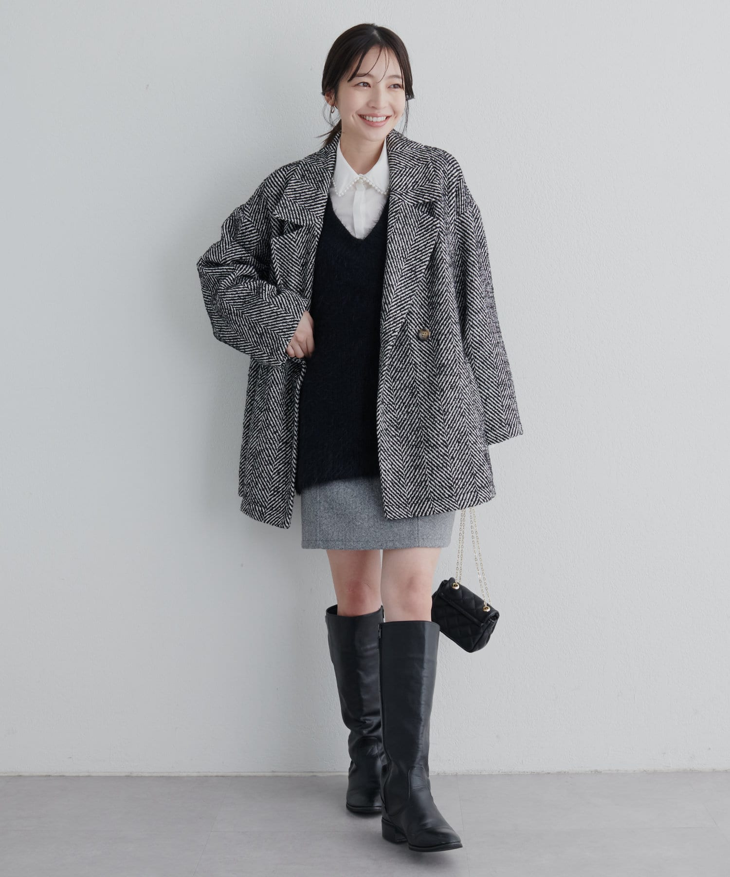 お出かけ、お仕事、セミフォーマル等、幅広いシーンで着回せる万能アイテムです。