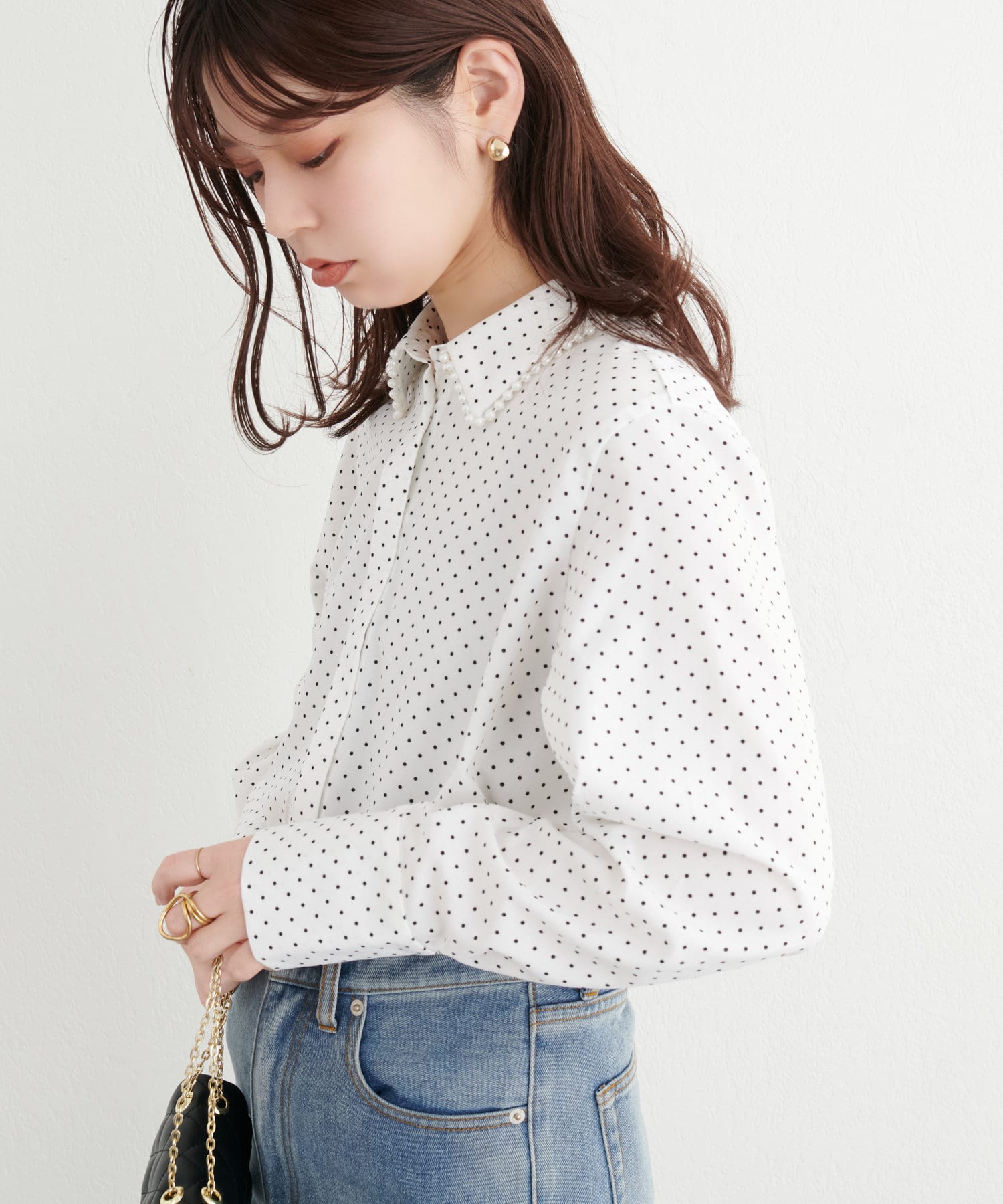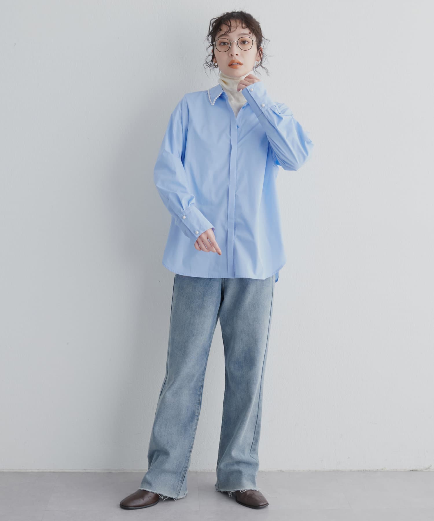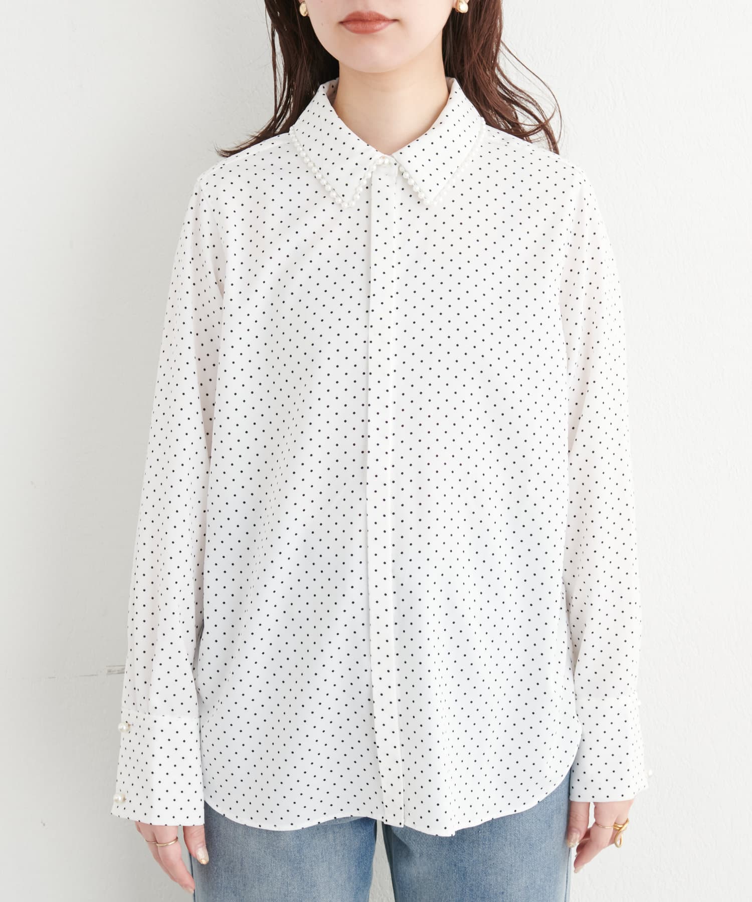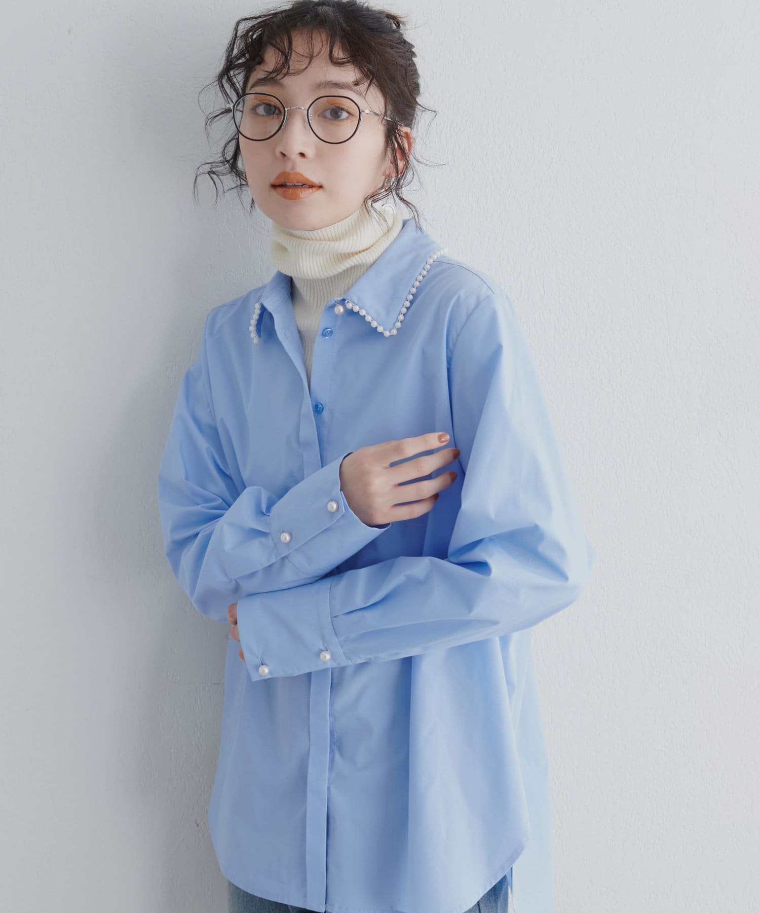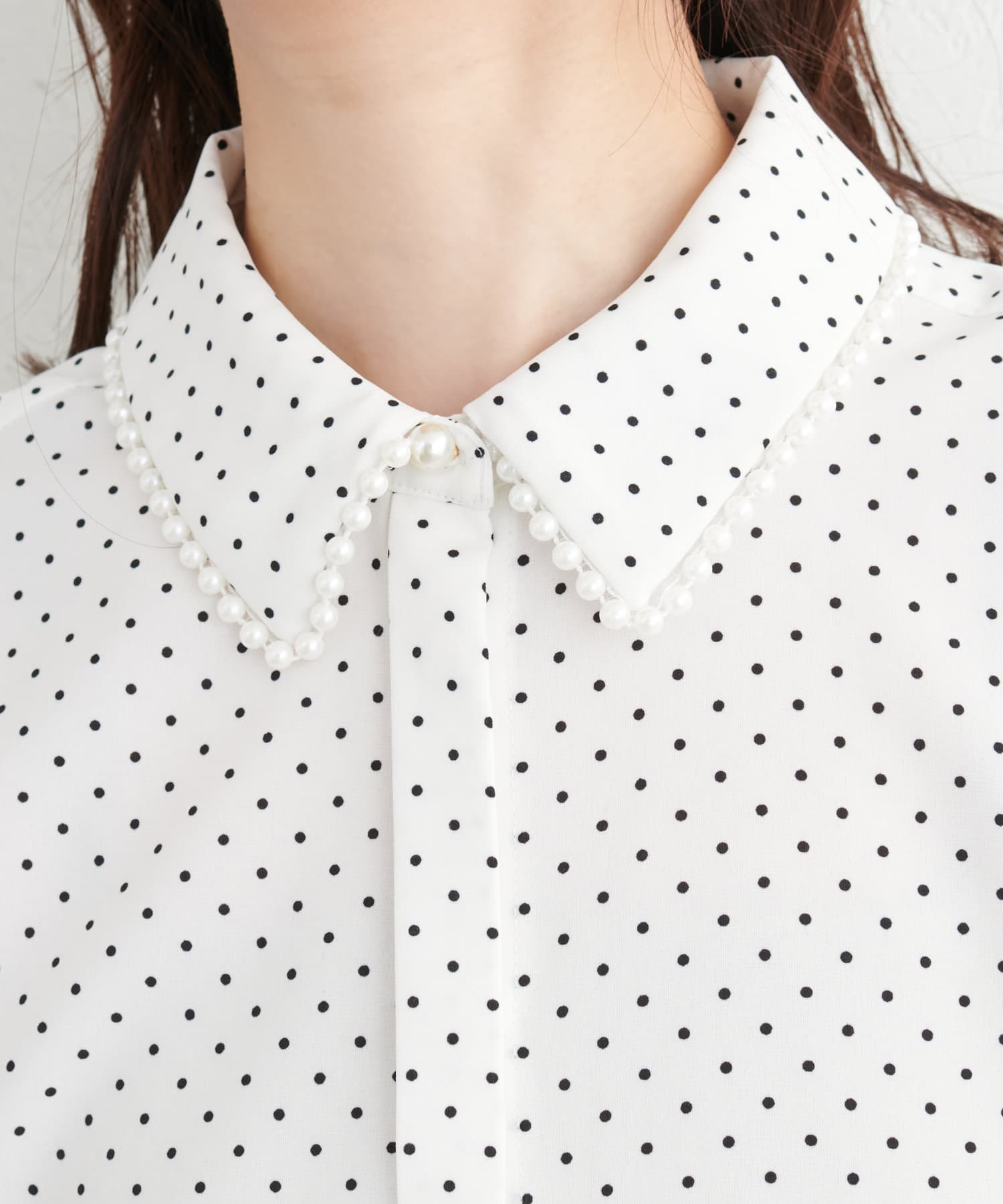 衿ぐりパールシャツ