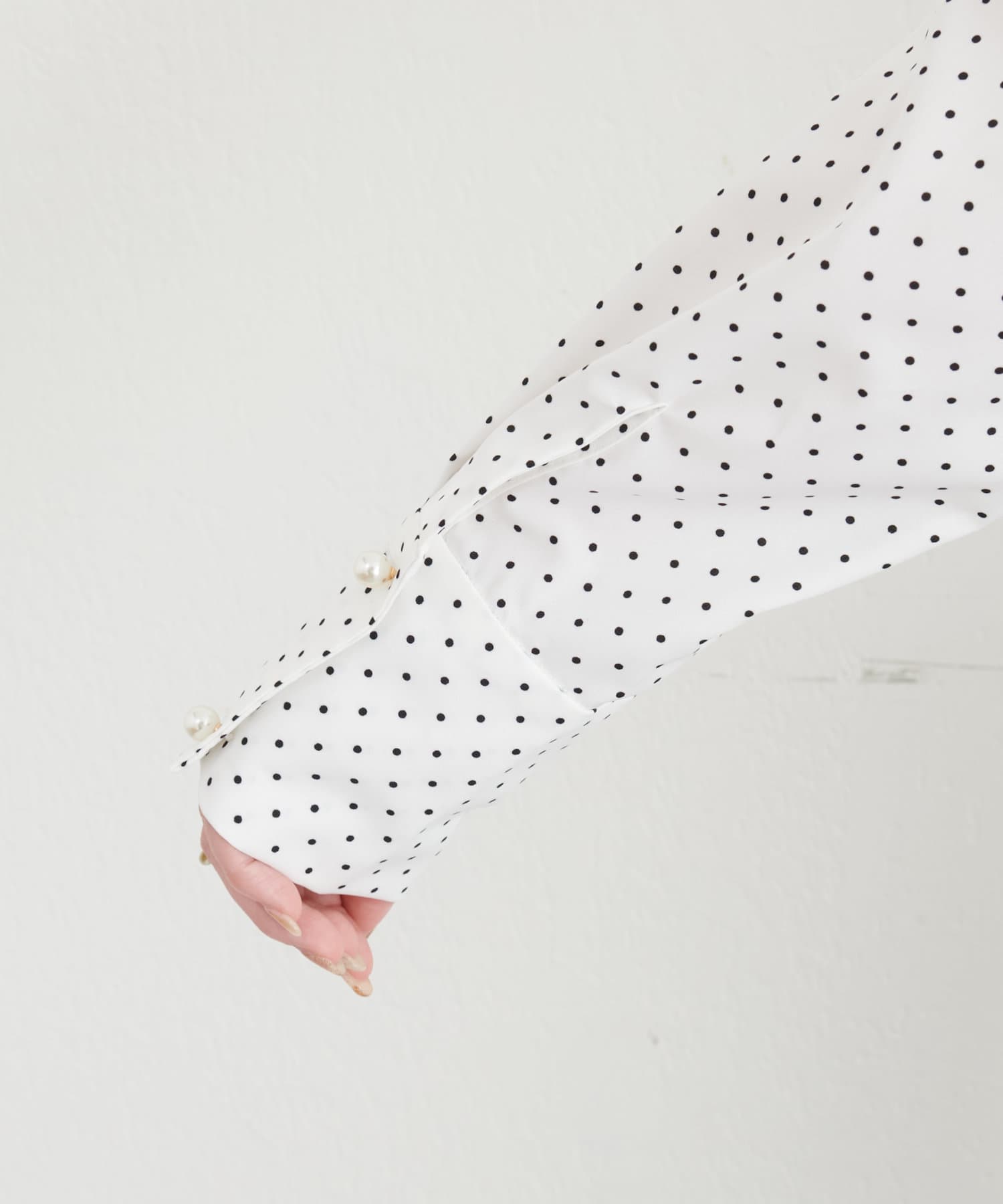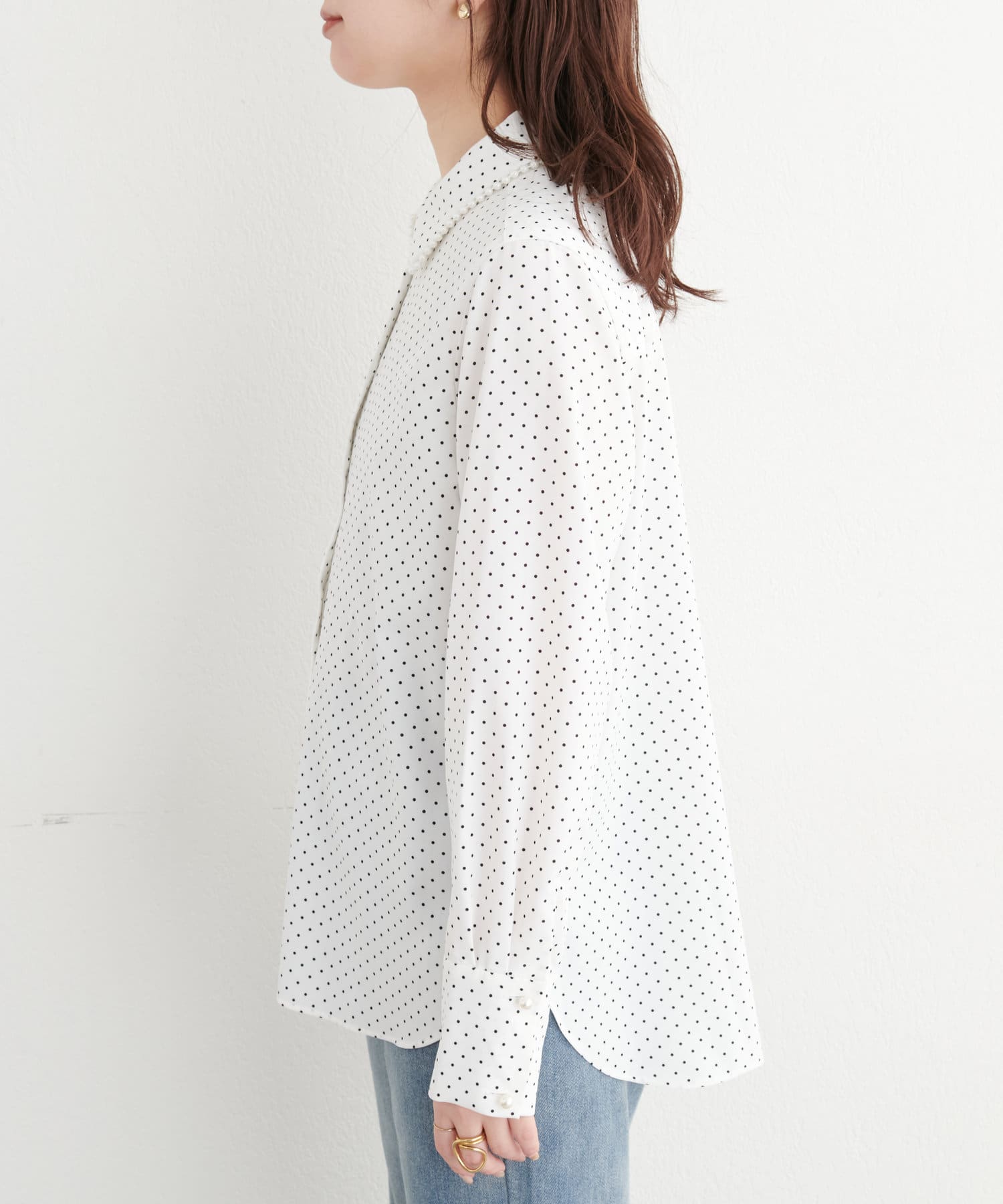 さり気ないパールがアクセントの上品シャツ