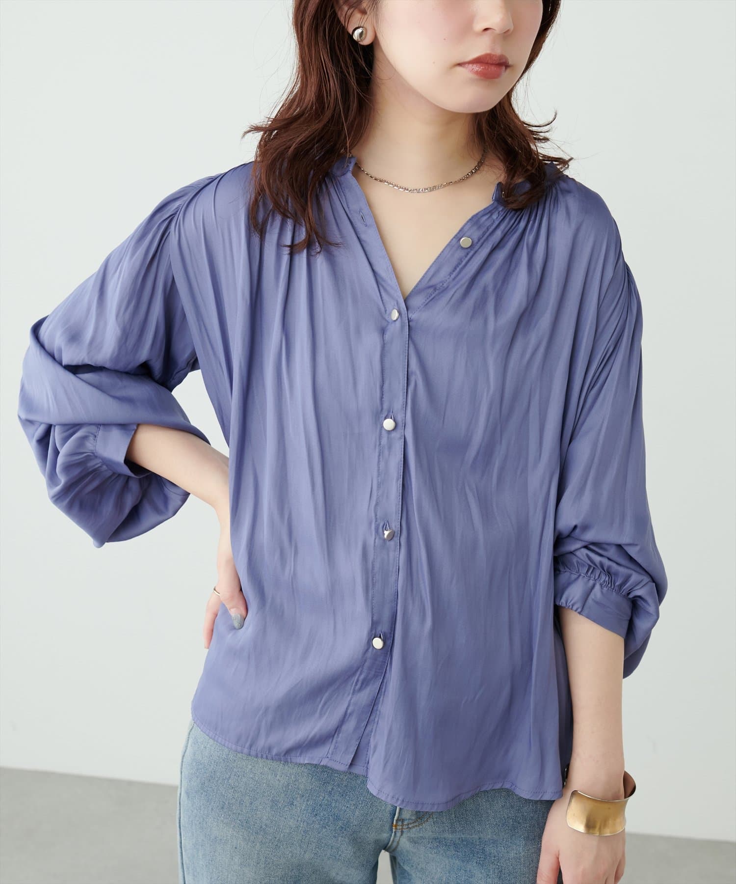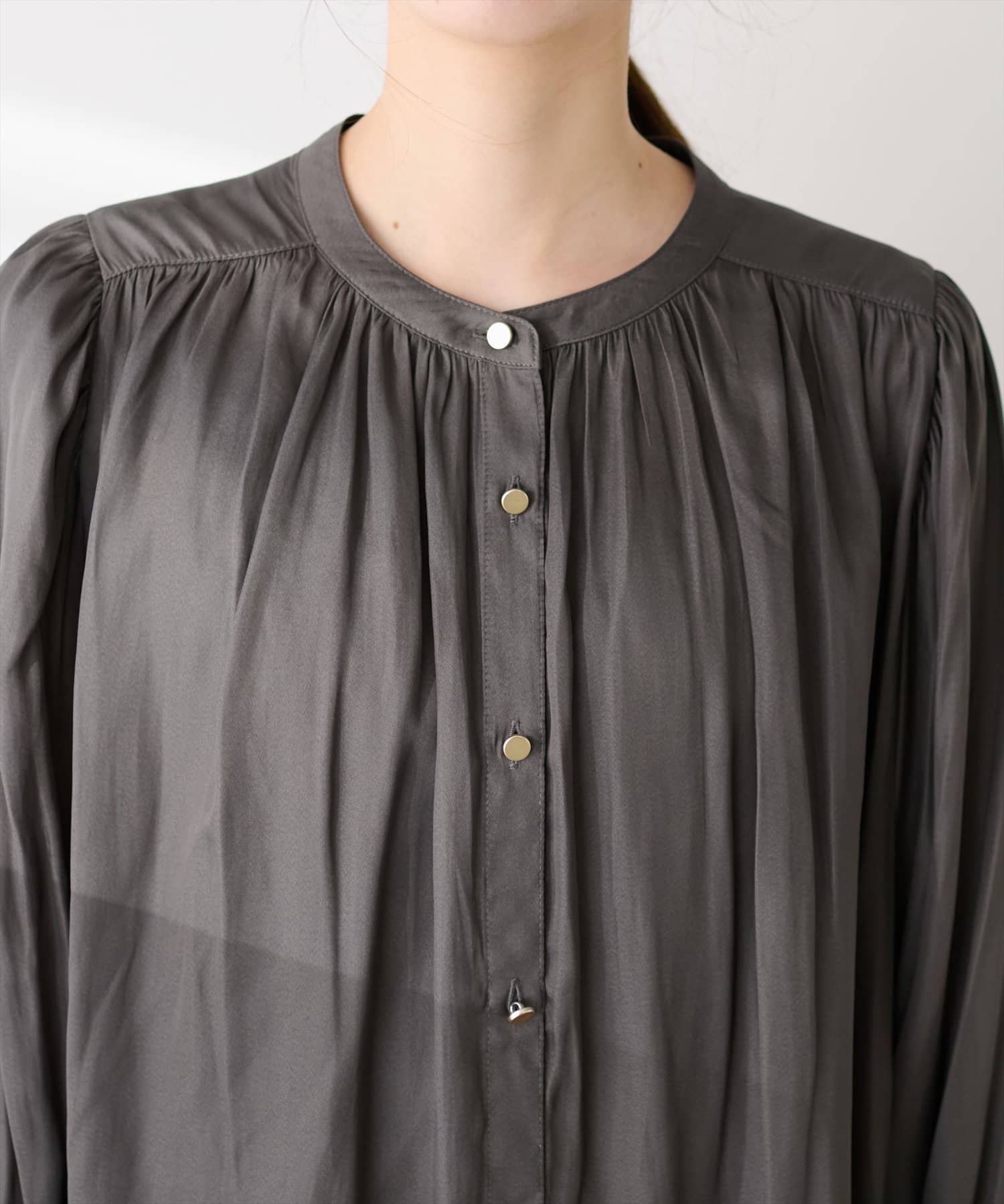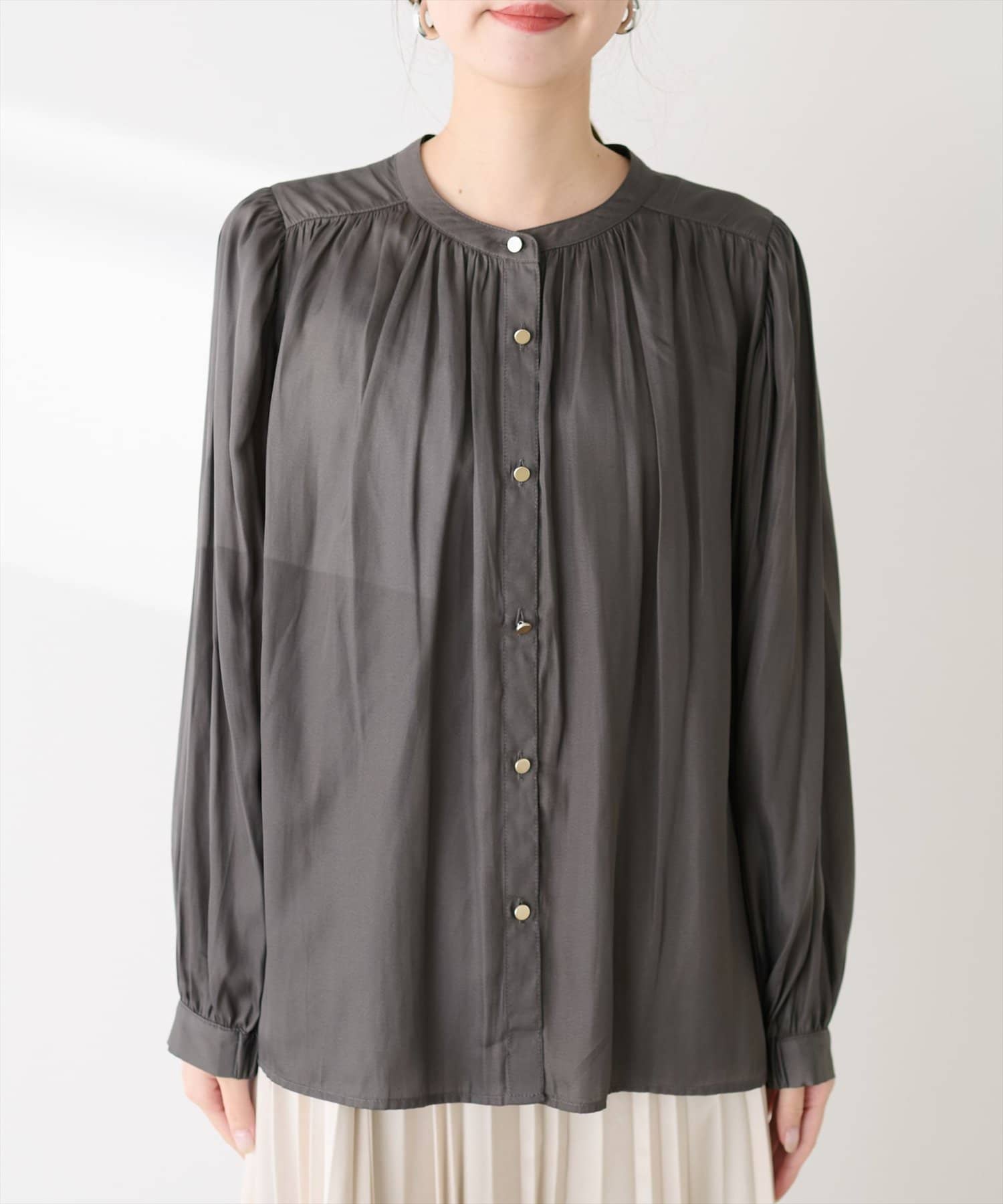 マット釦とろみサテンブラウス